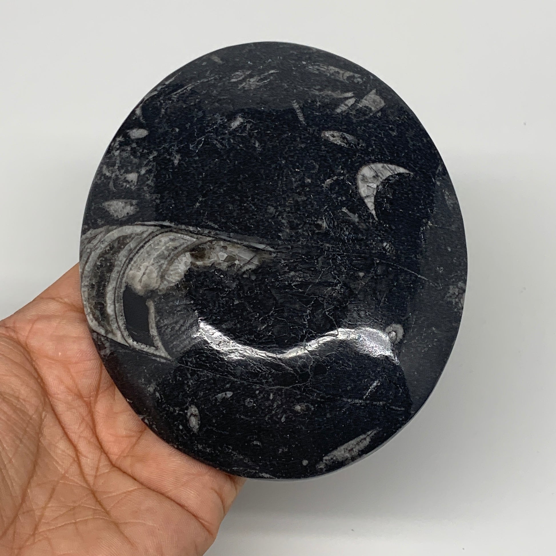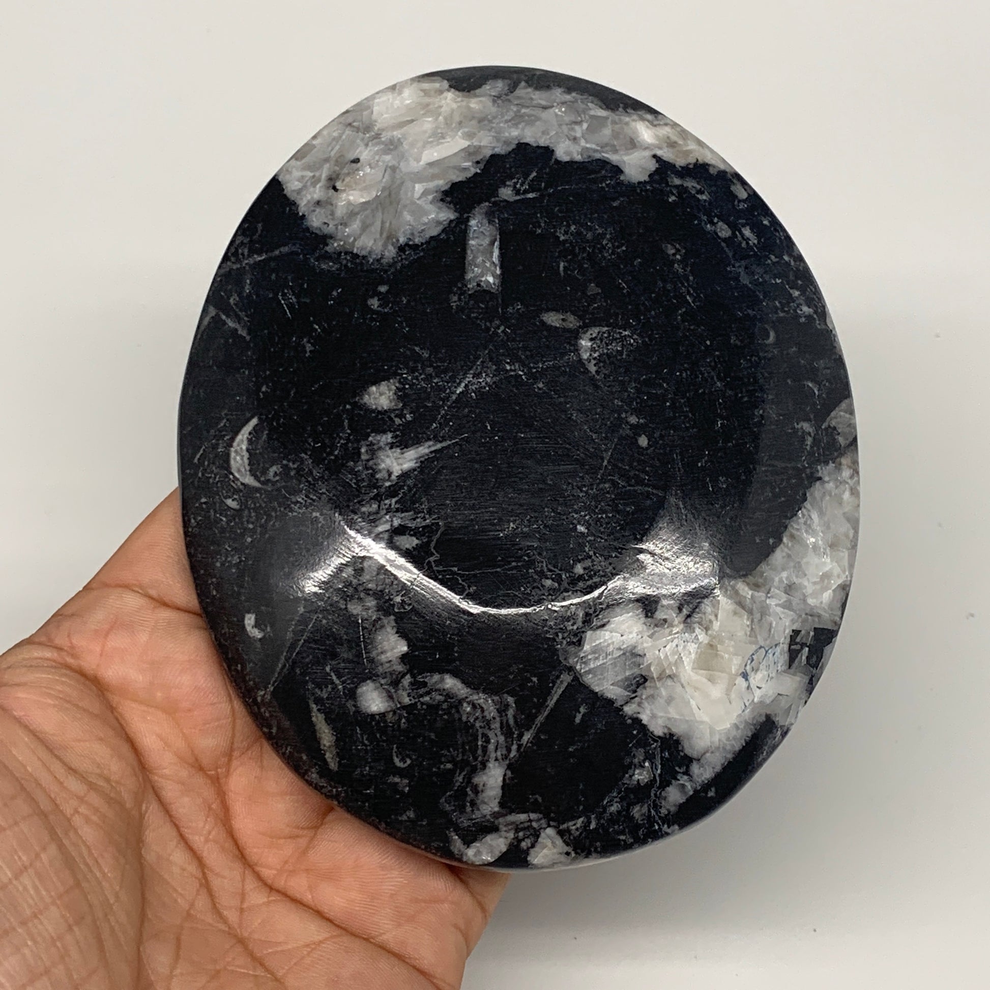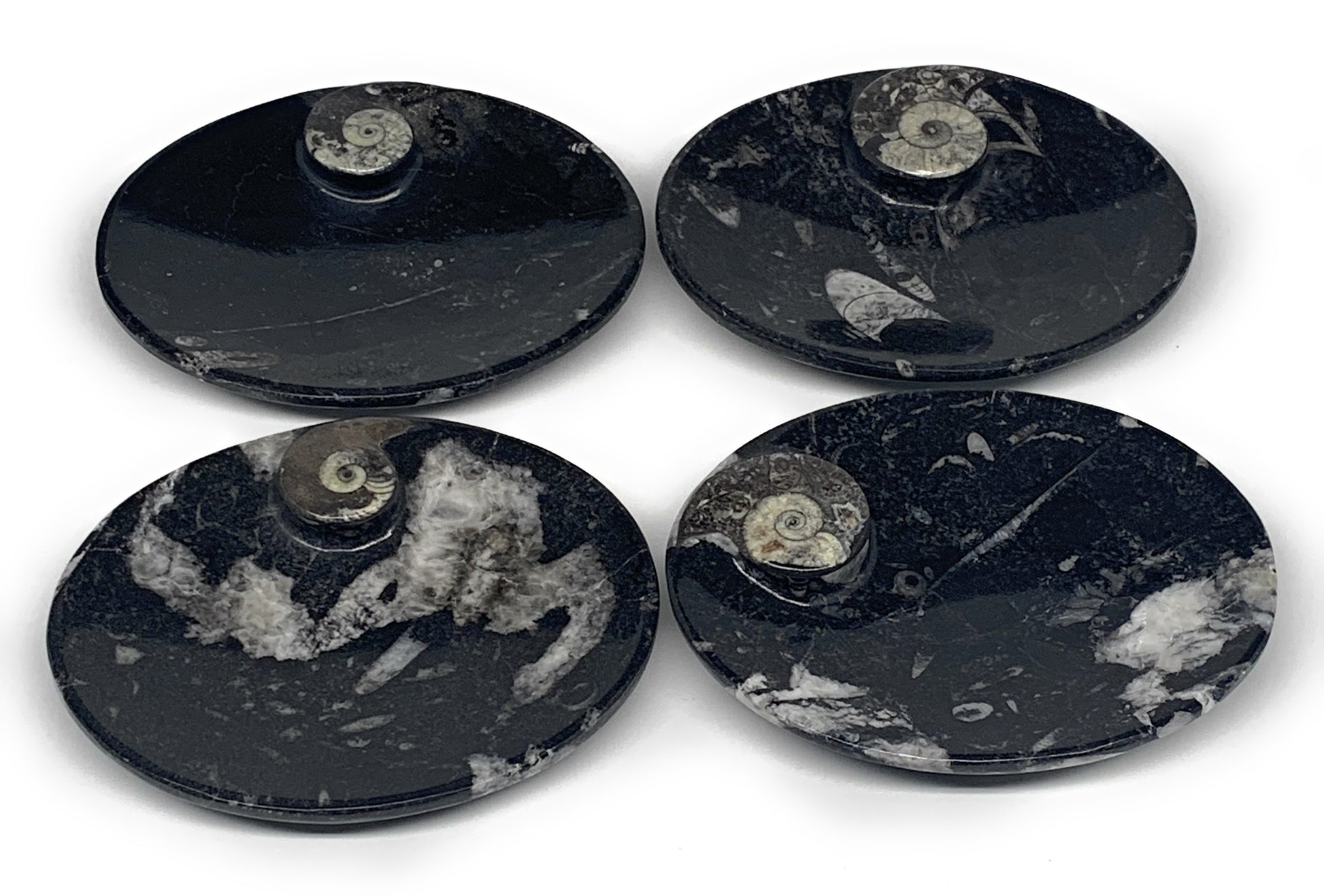 734g, 4pcs, 4.7"x3.8" Small Fossils Ammonite Orthoceras Bowl Oval Ring,B8862