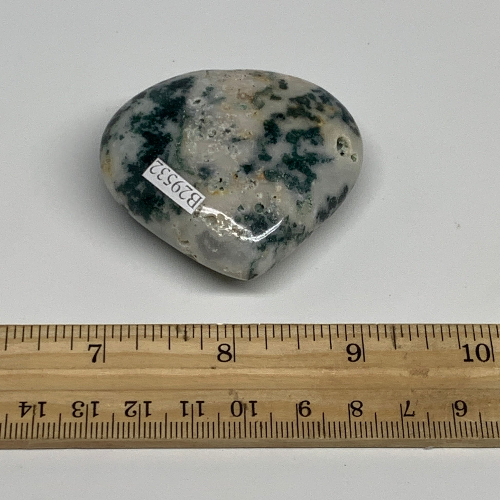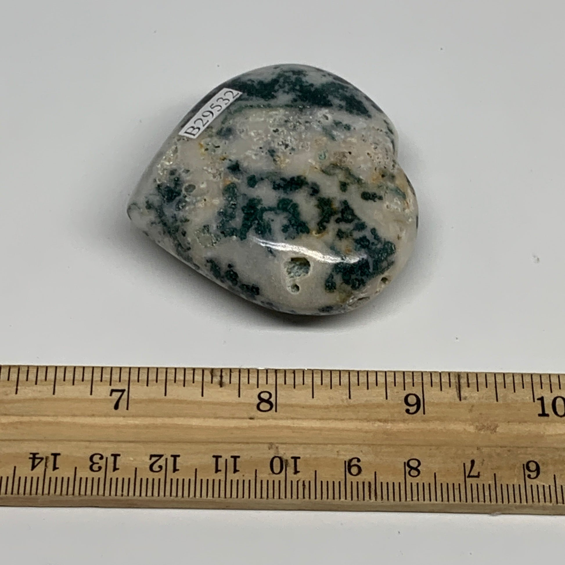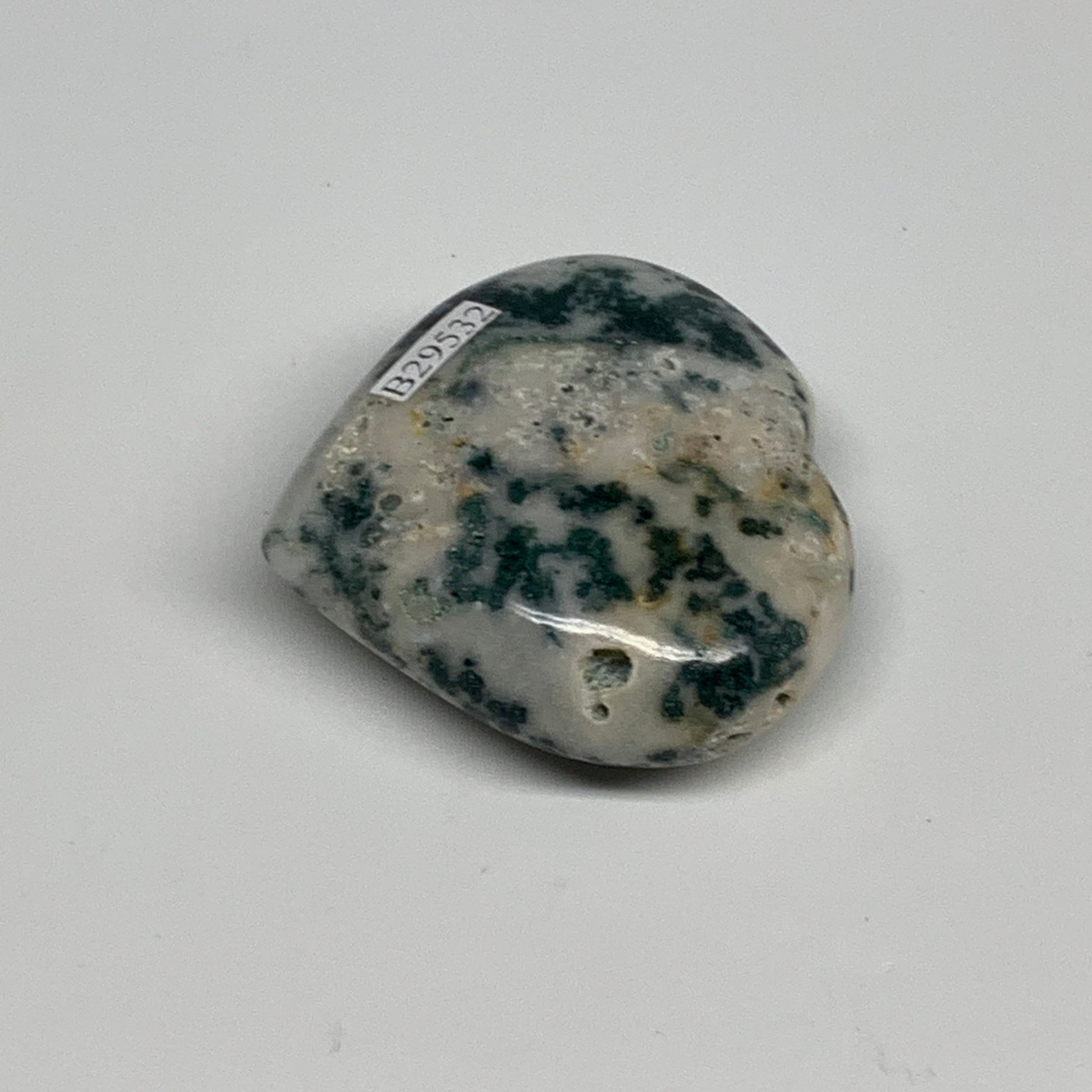 73g, 2"x2.2"x0.9", Natural Moss Agate Heart Crystal Gemstone @India, B29532