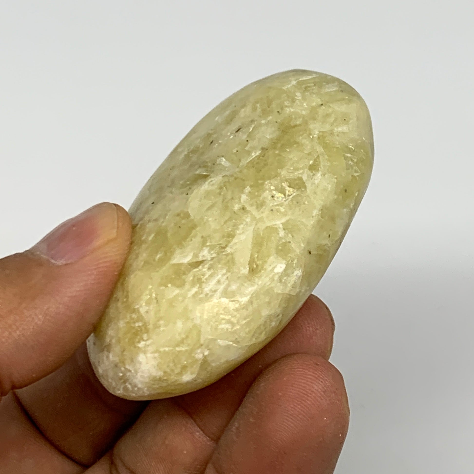 74.1g, 2.2"x1.6"x0.9", Natural Yellow Calcite Palm-Stone Crystal Polished Reiki, B16766