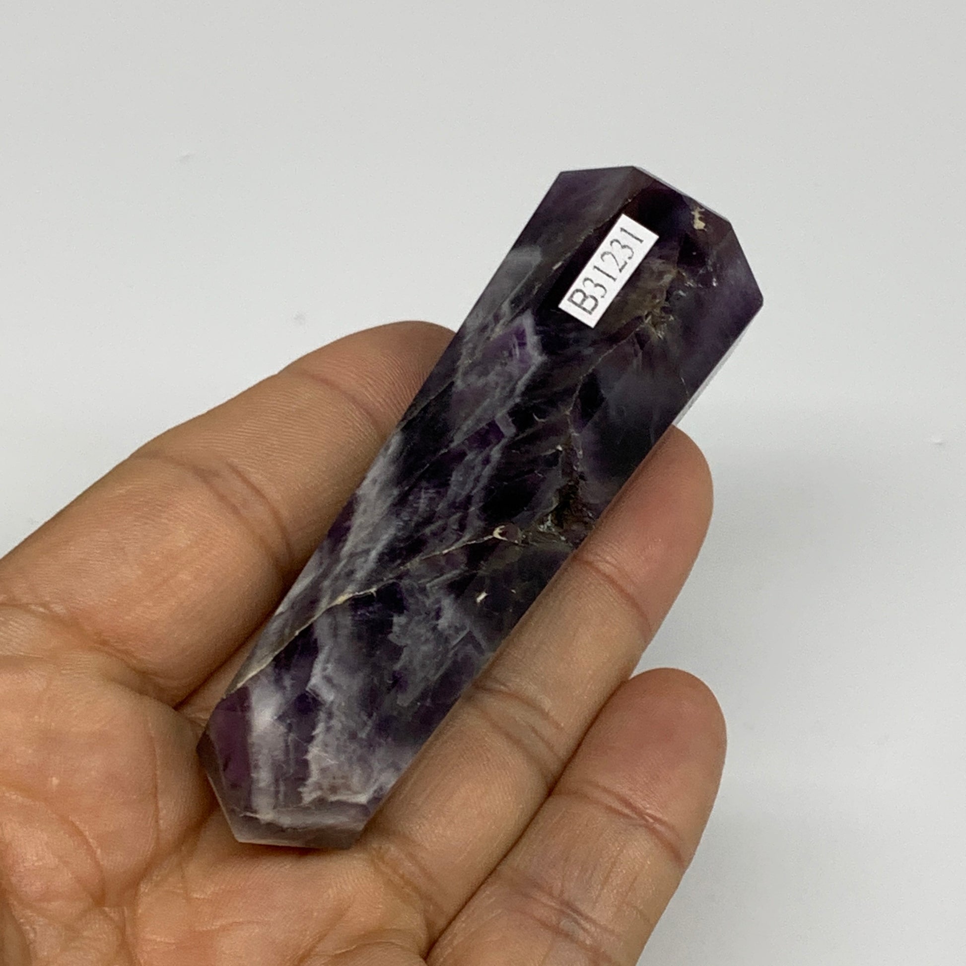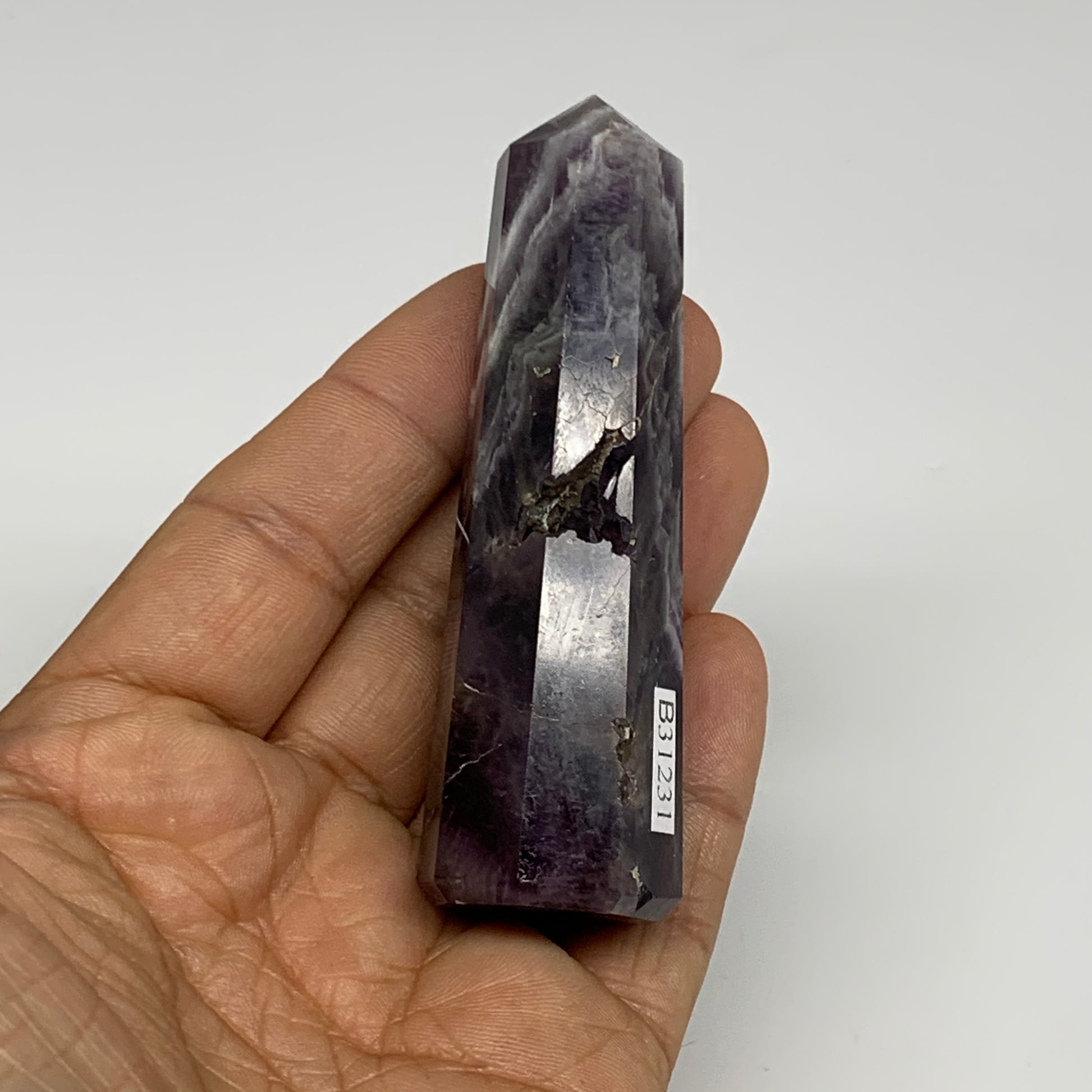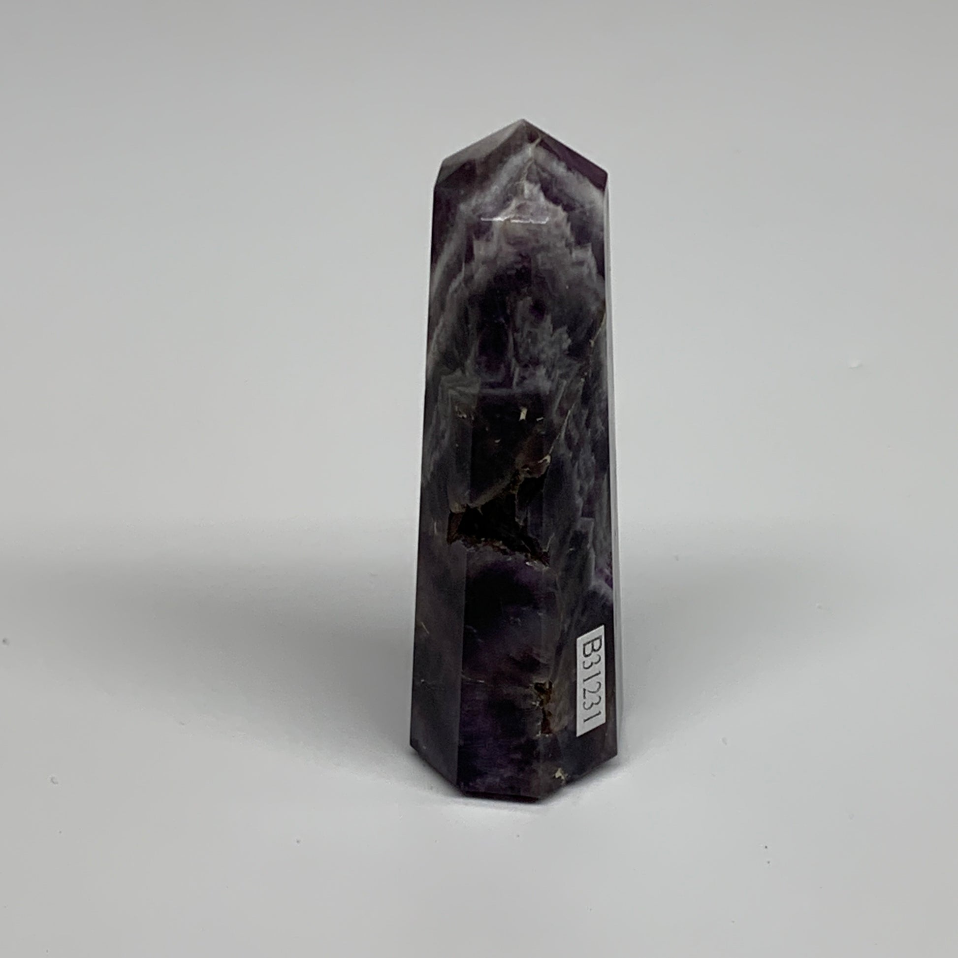 74.7g, 3.2"x0.9"x1", Natural Amethyst Tower Point Obelisk @Brazil, B31231