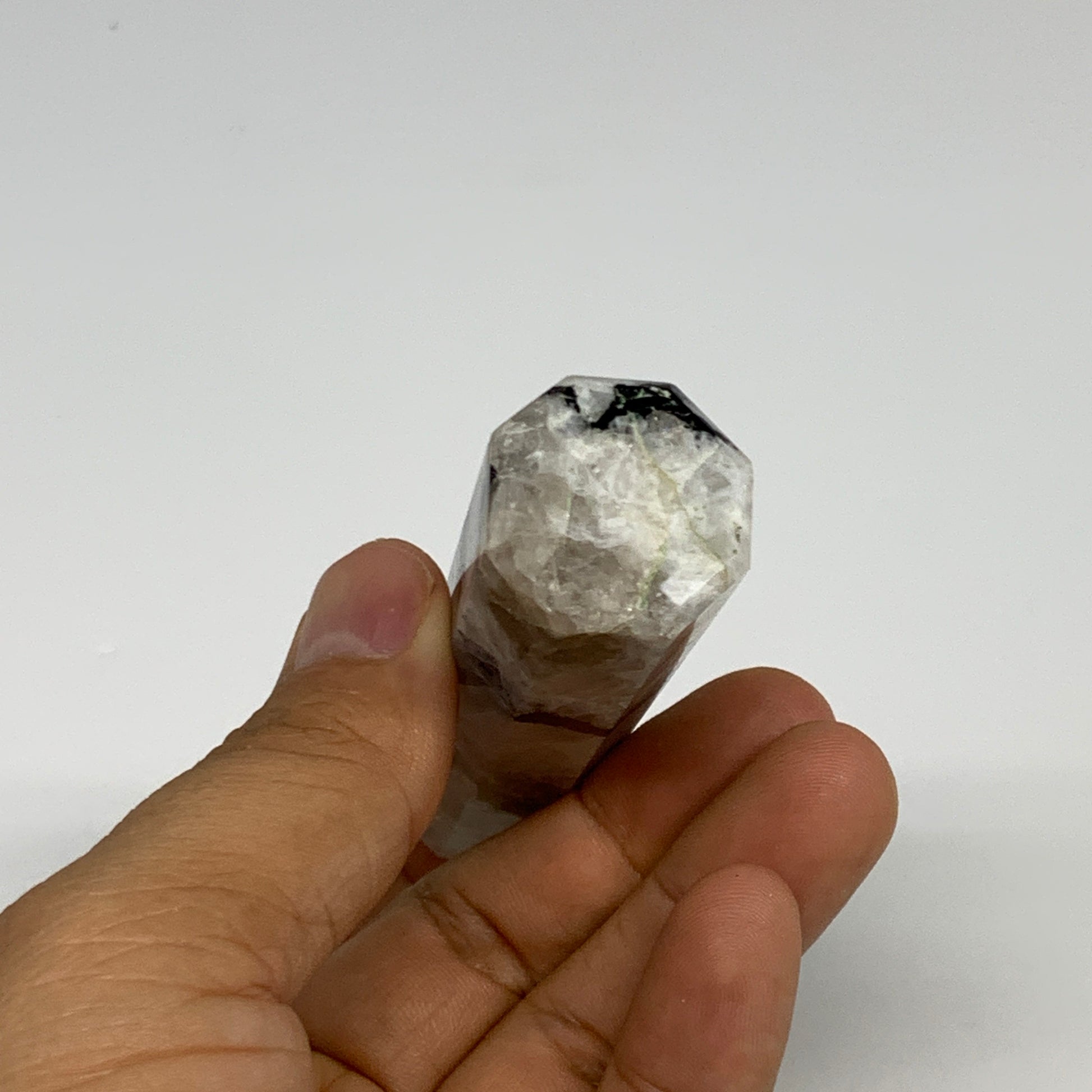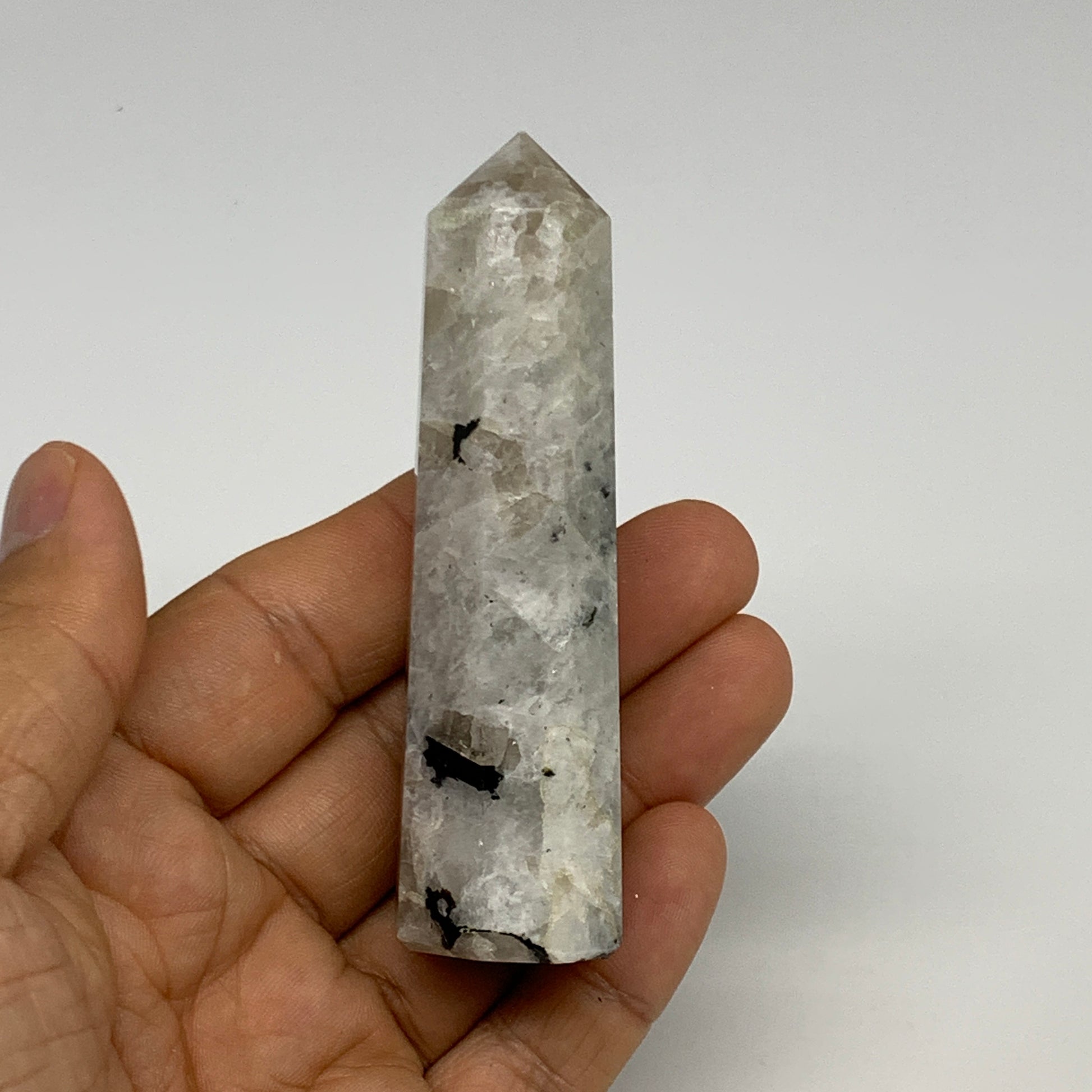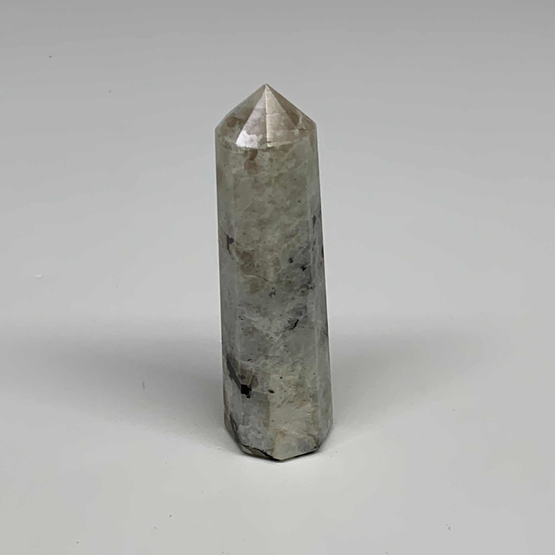 74.8g, 3.4"x0.9", Rainbow Moonstone Tower Obelisk Point Crystal @India, B29224
