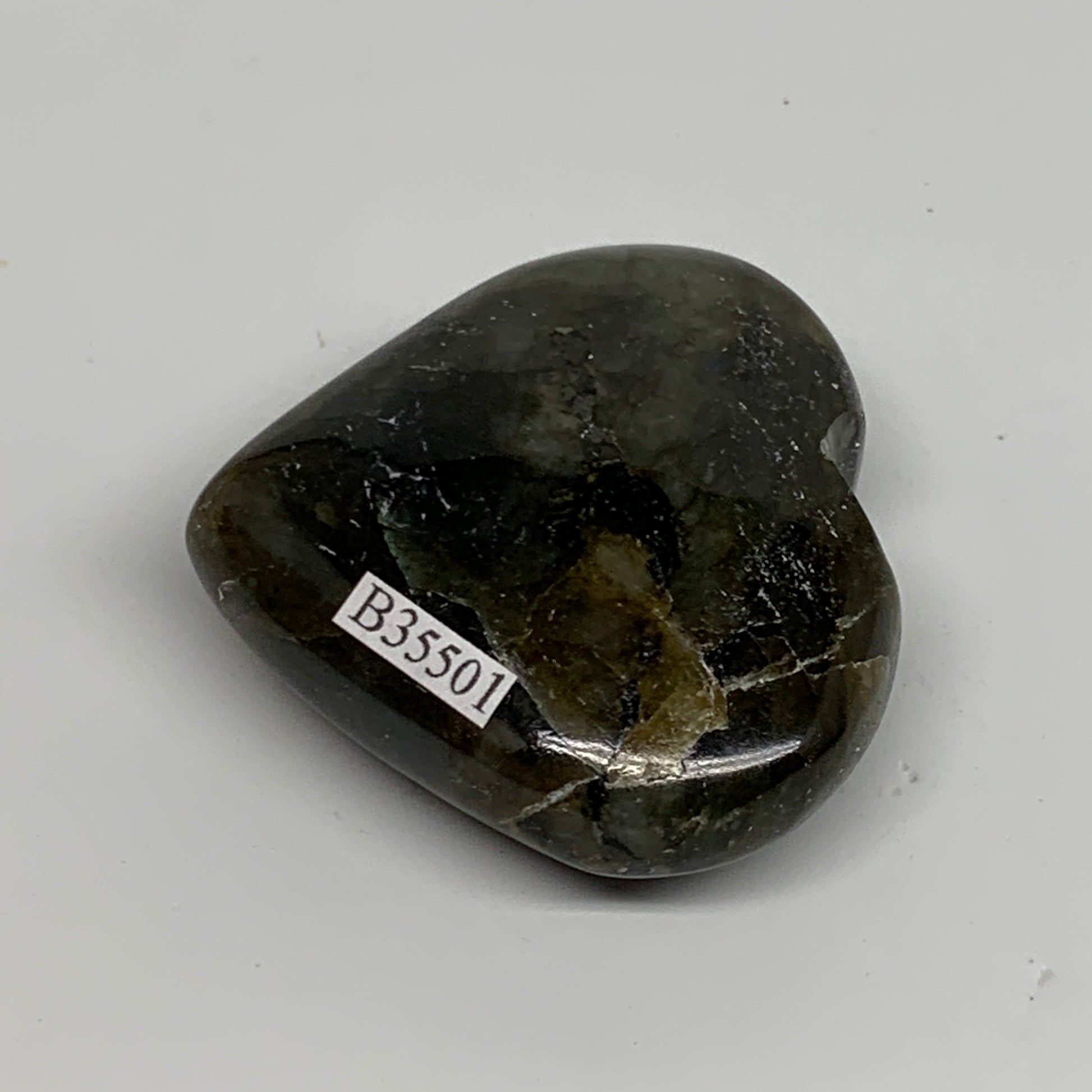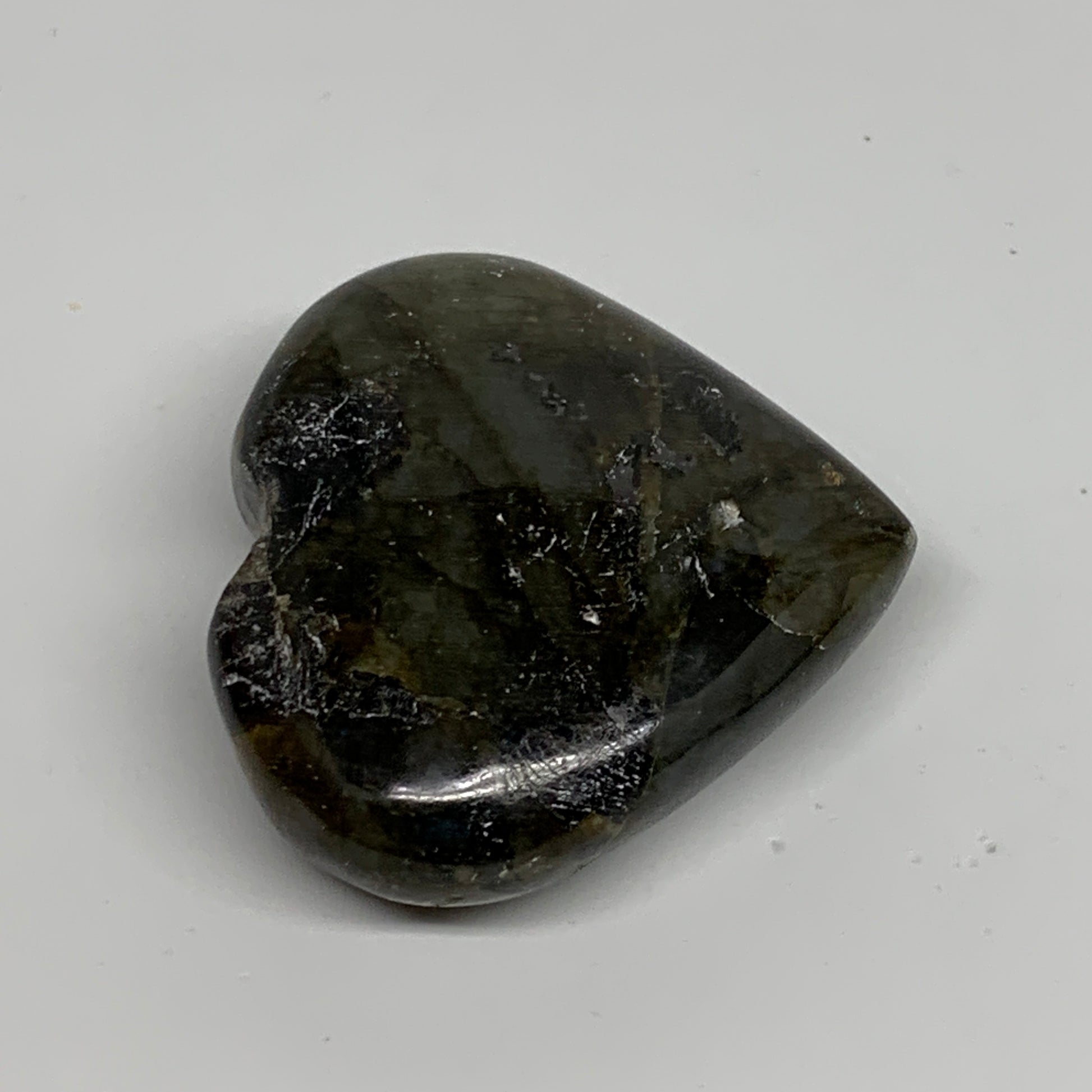 75.1g, 2"x2.2"x0.8", Natural Labradorite Heart Polished Crystal, B35501