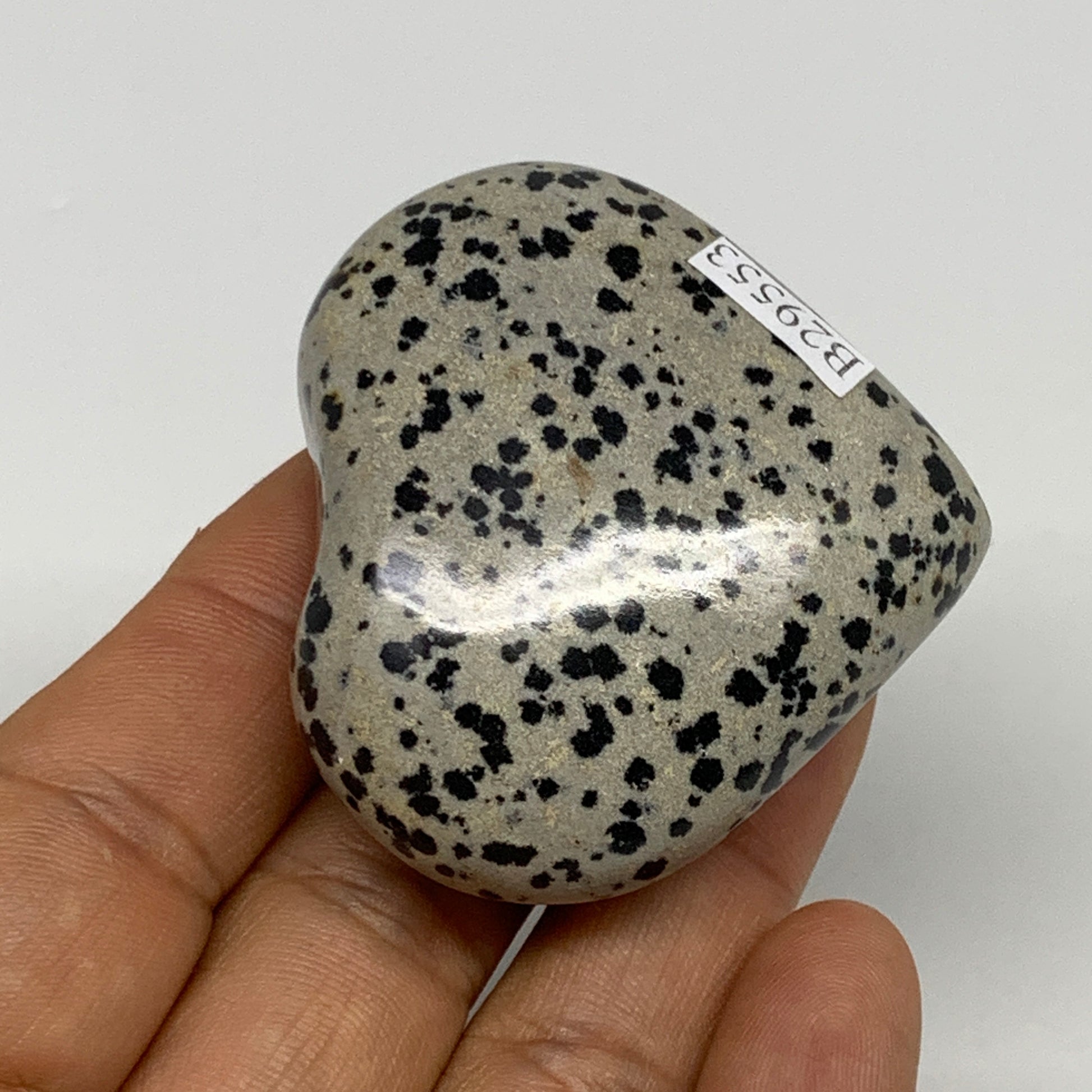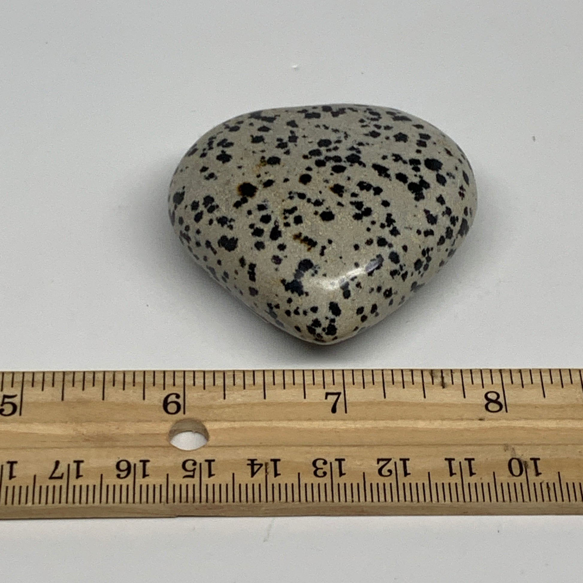 75.5g, 1.9"x2"x0.9" Dalmatian Jasper Heart Polished Healing Home Decor, B29553