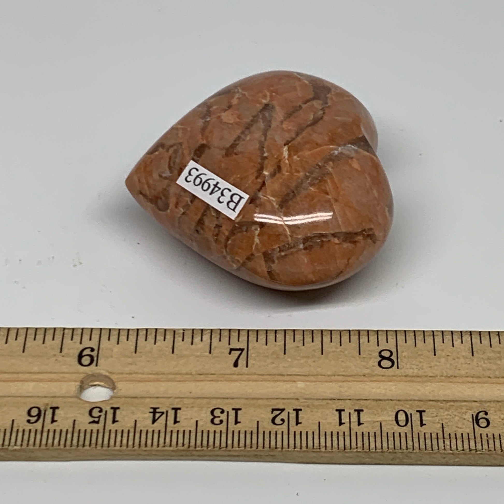 75.9g, 1.9"x2"x1", Peach Moonstone Heart Crystal Polished, B34993