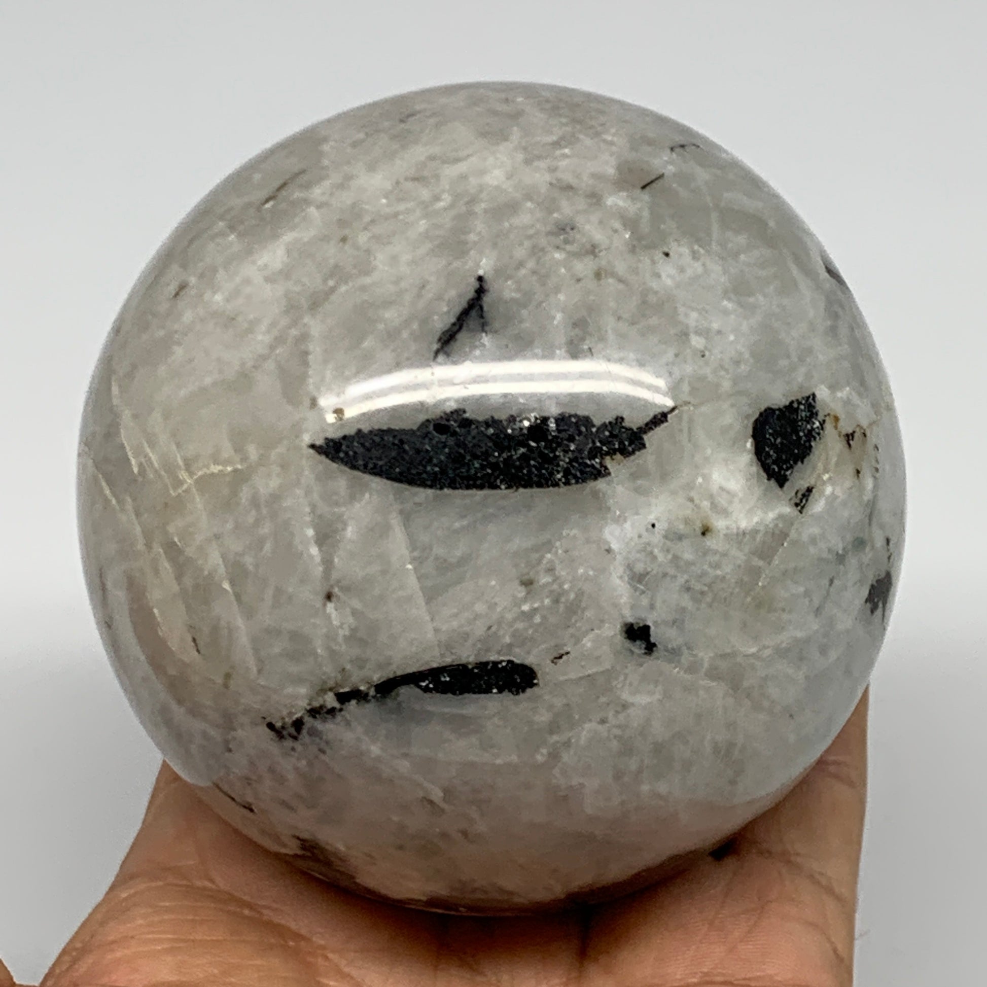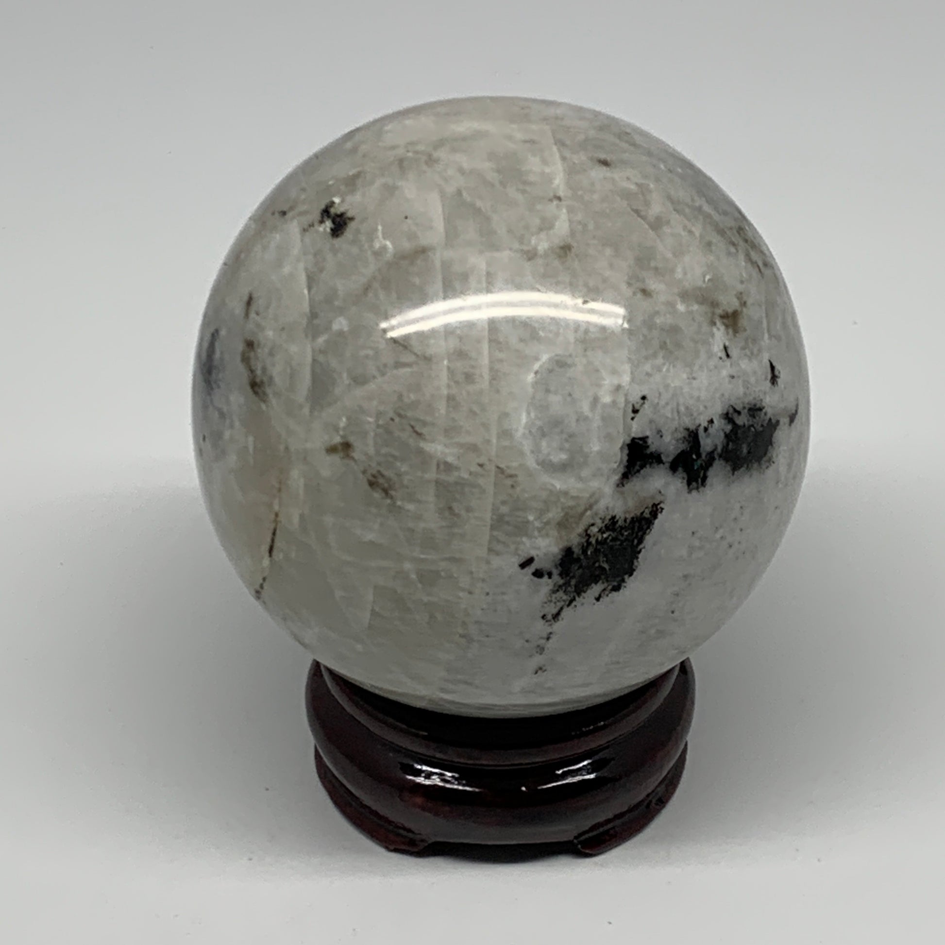 750g,3.2"(82mm), Natural Rainbow Moonstone Sphere Ball Gemstone @India,B22286