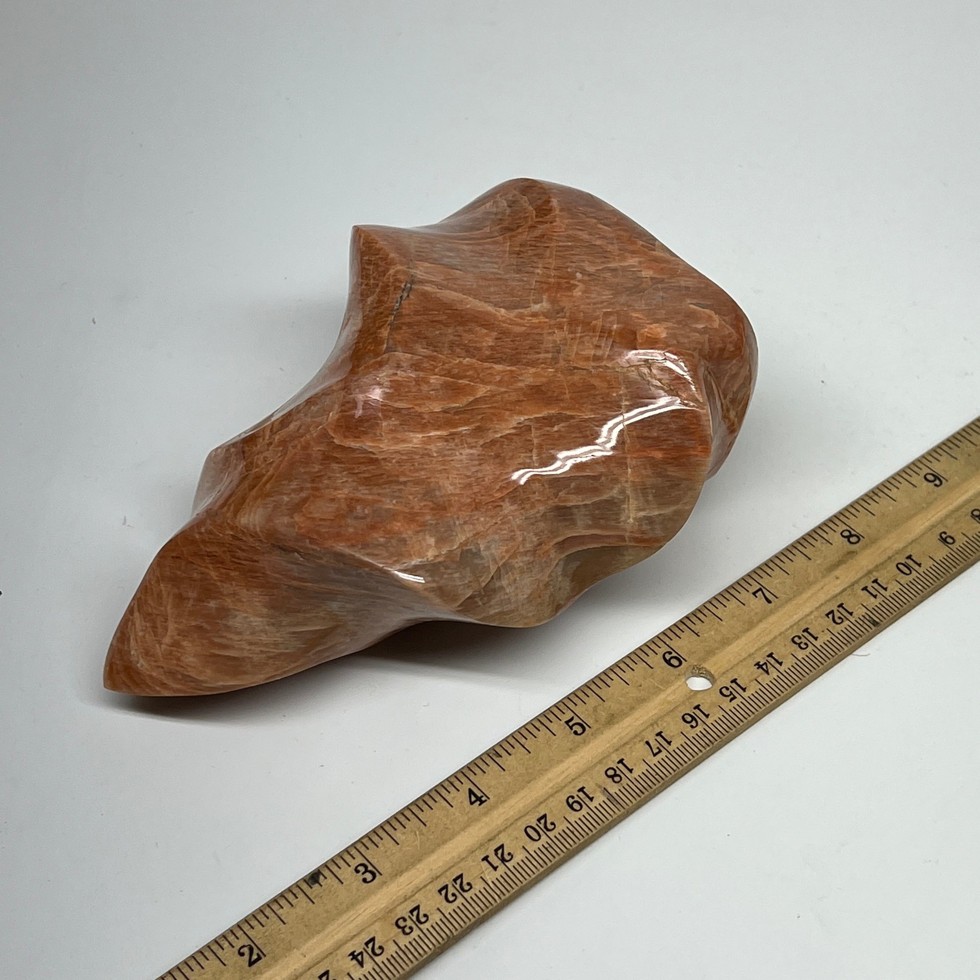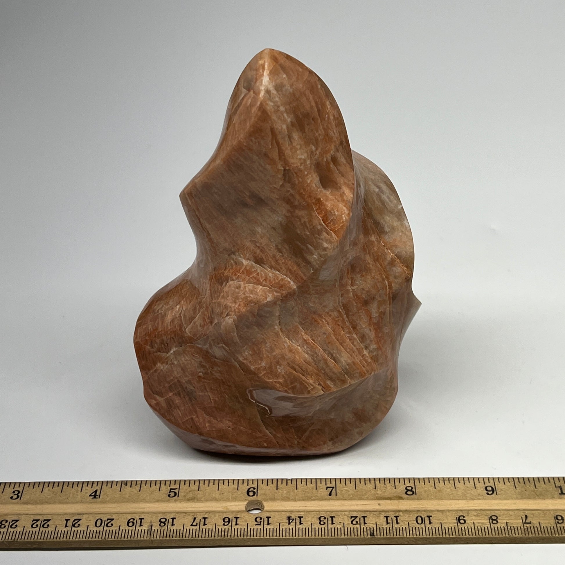 750g, 5.6"x3.9"x2.1", Natural Peach Moonstone Flame Gemstones Reiki Tool, B19578
