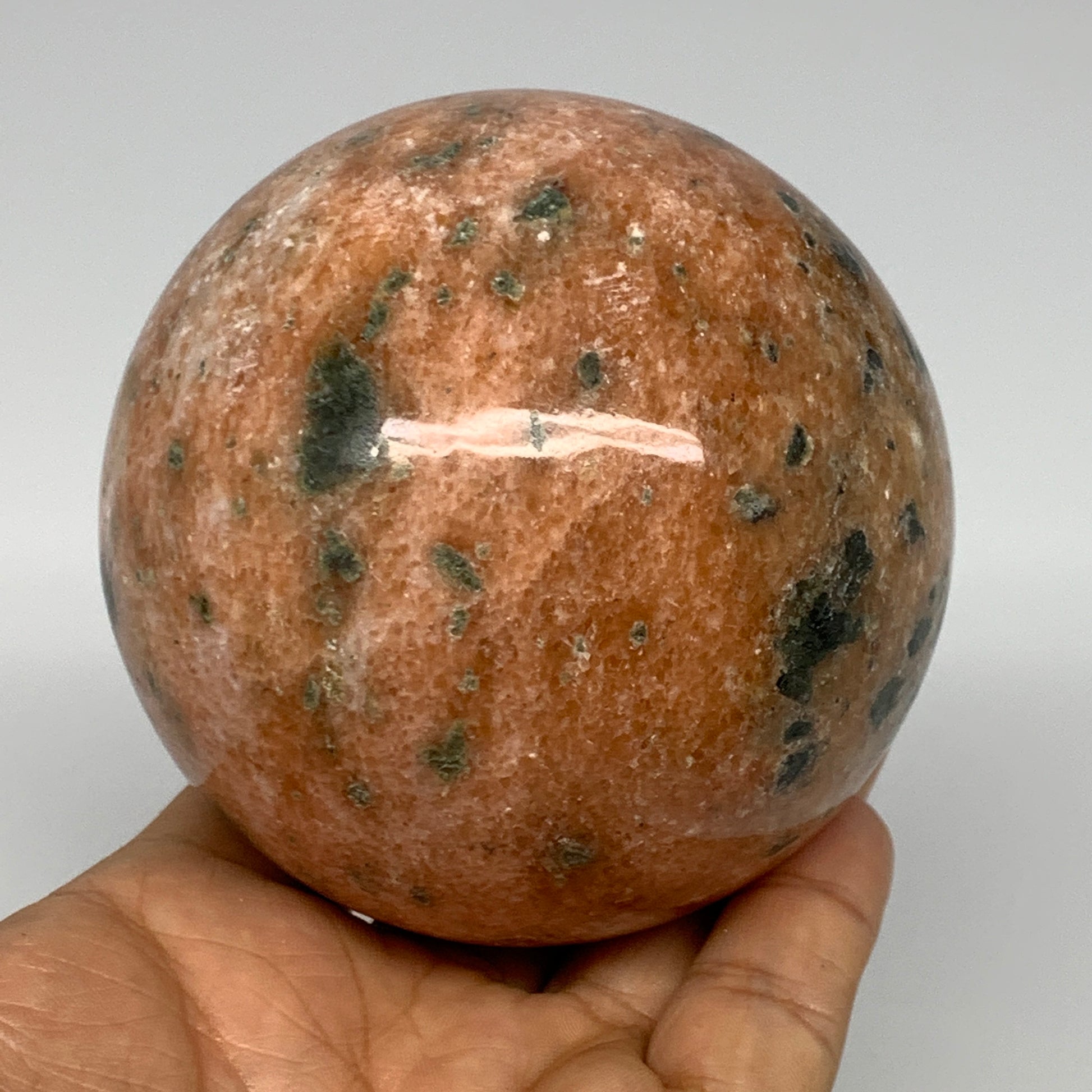 755g, 3.2"(80mm) Orange Calcite Sphere Ball Gemstone from Madagascar, B17182