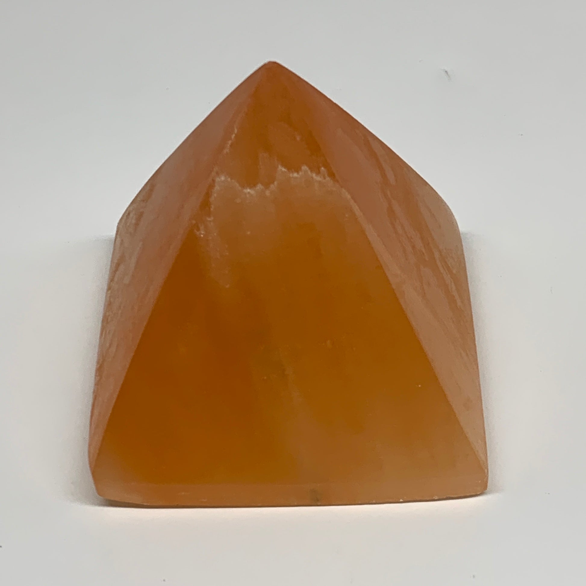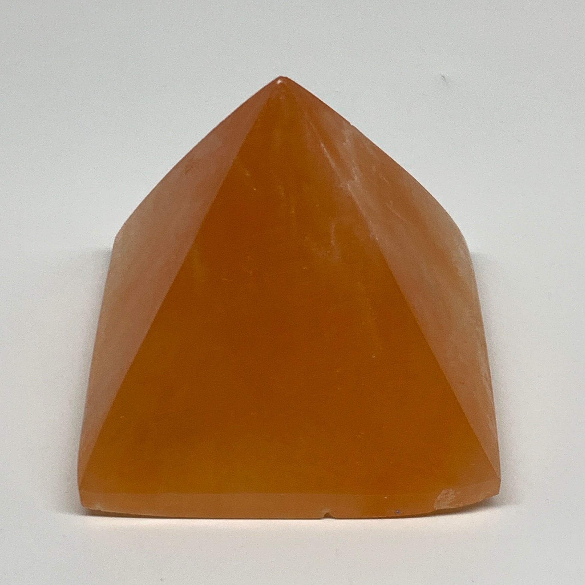 758g, 3.5"x3.8" Orange Selenite/Satin Spar Pyramid Crystal @Morocco, B24195