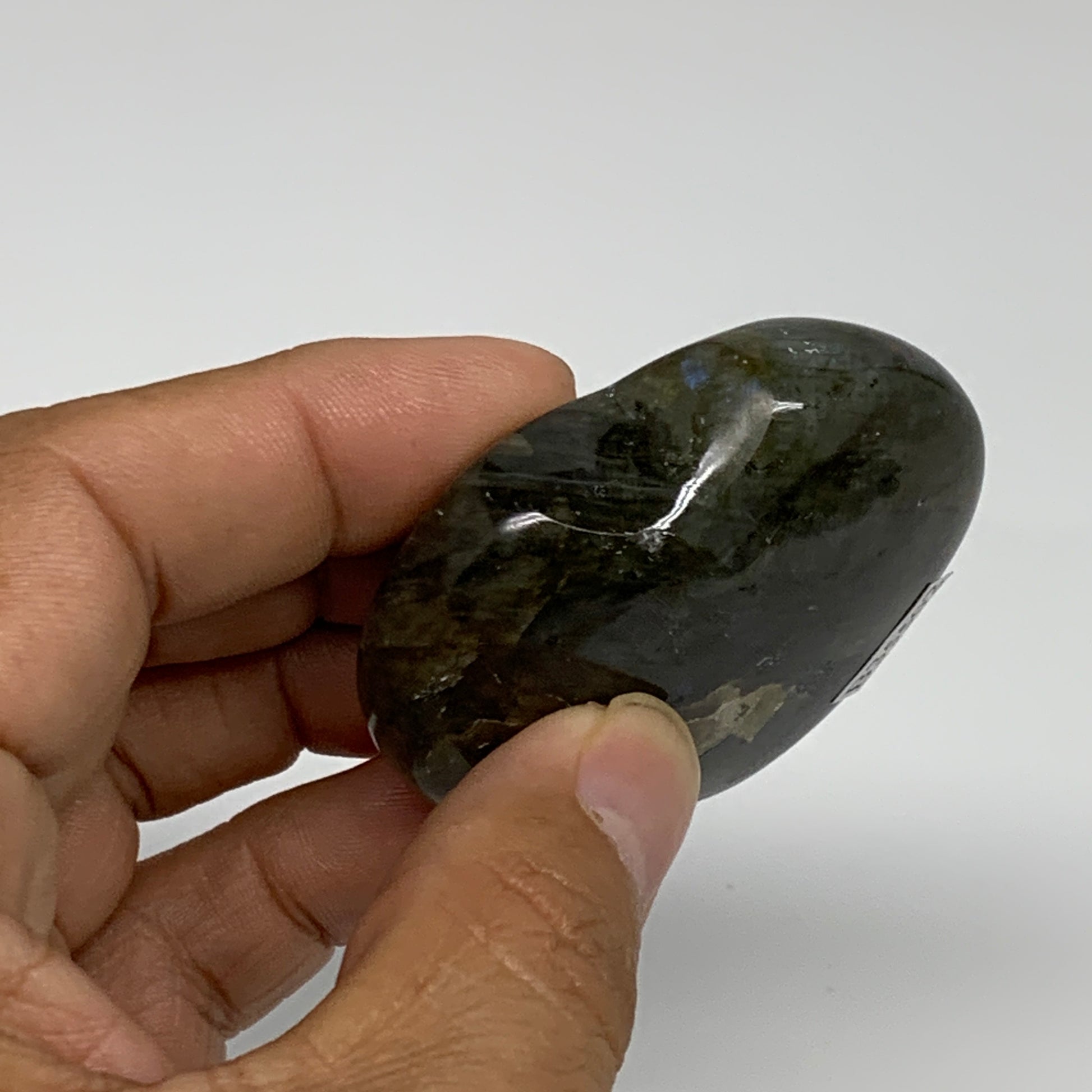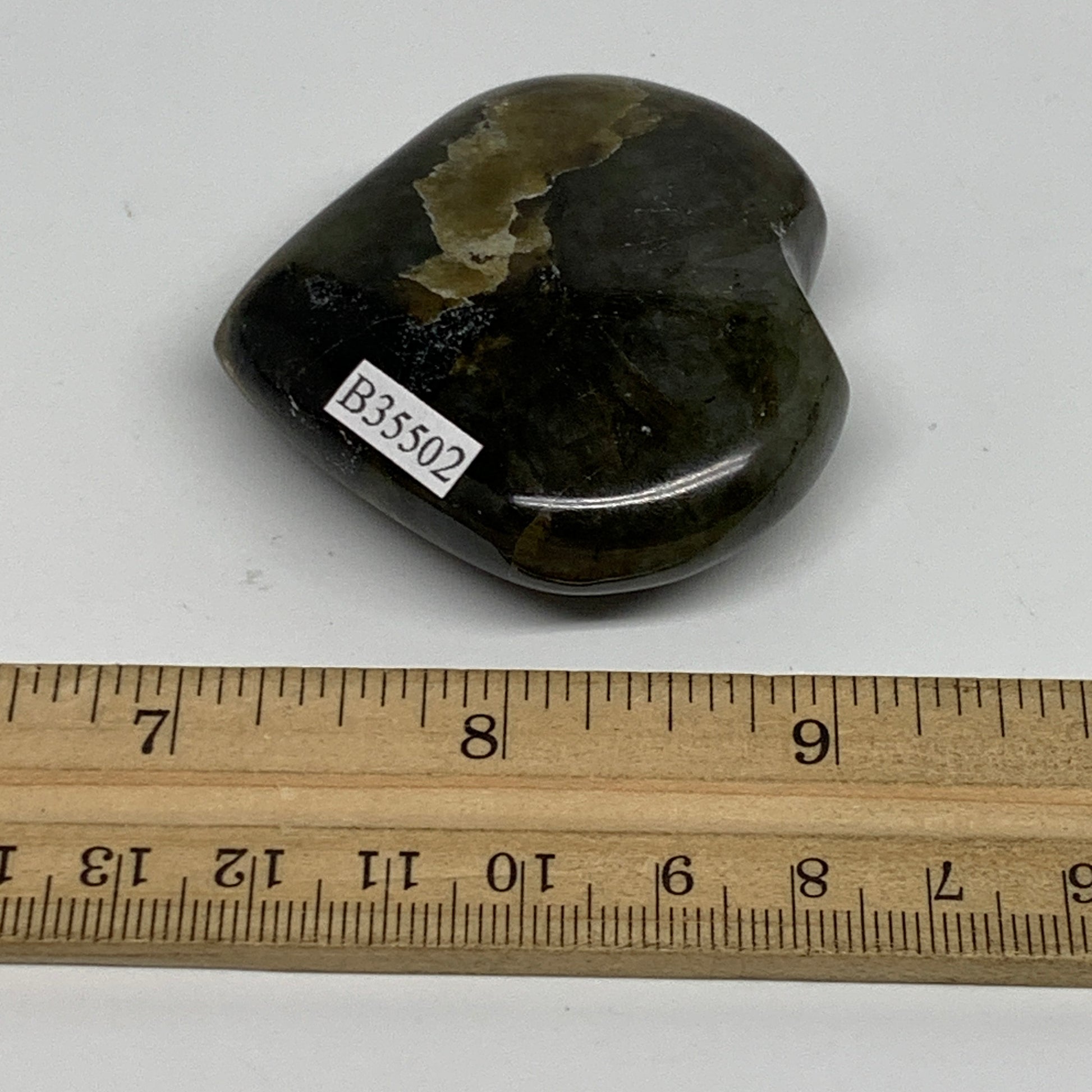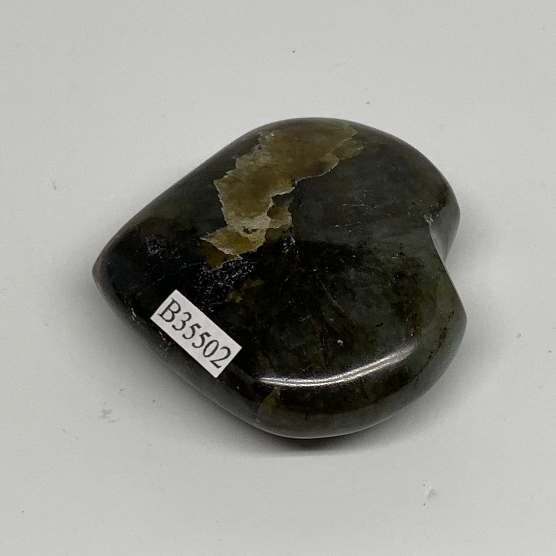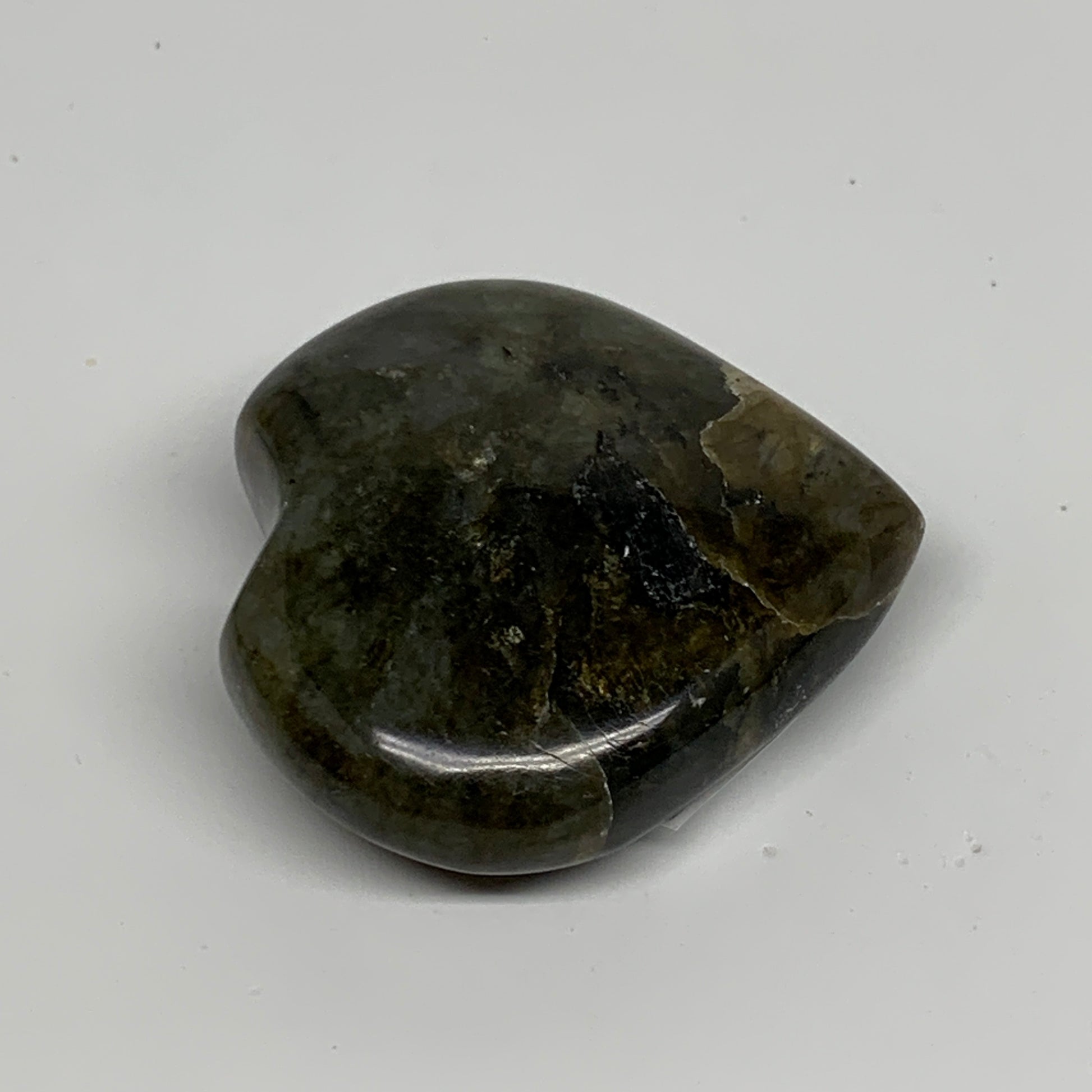 76.1g, 2"x2.1"x0.8", Natural Labradorite Heart Polished Crystal, B35502