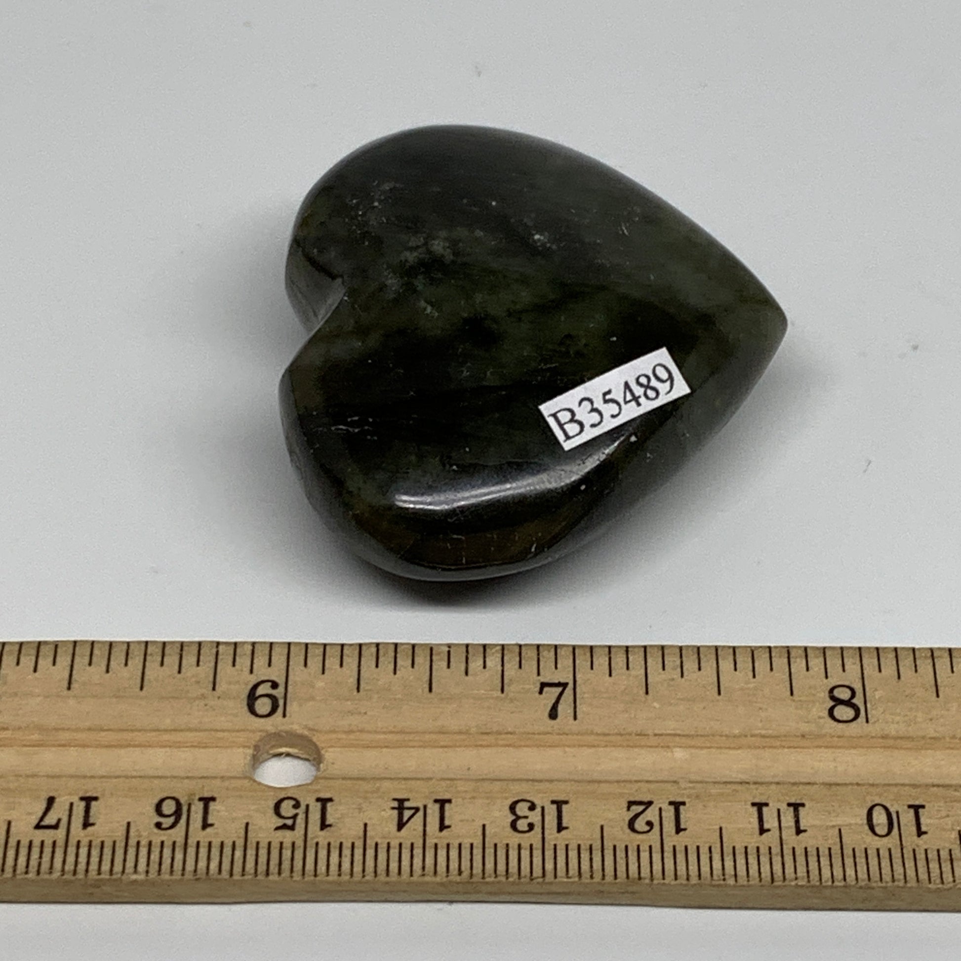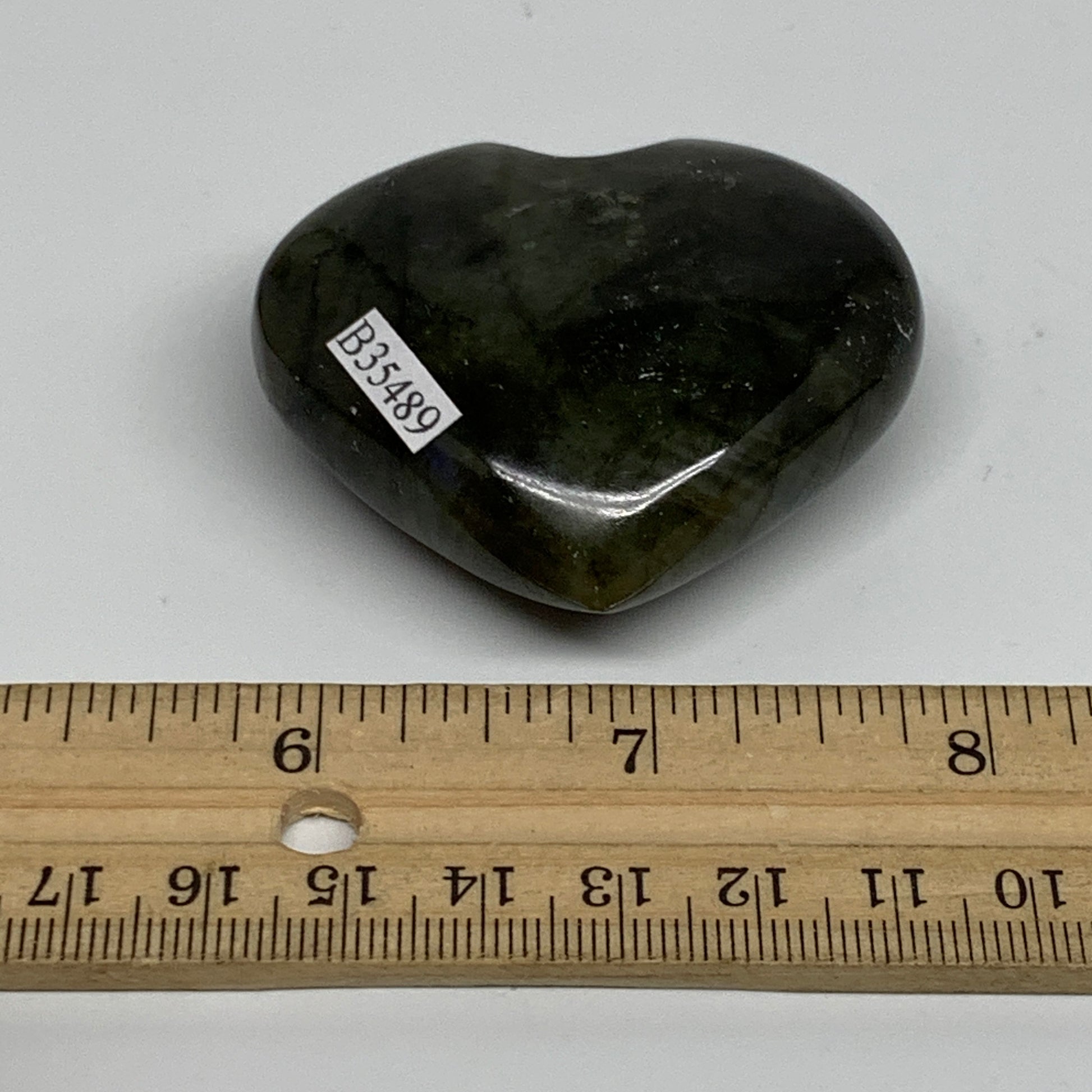 76.3g, 1.9"x2.2"x0.8", Natural Labradorite Heart Polished Crystal, B35489