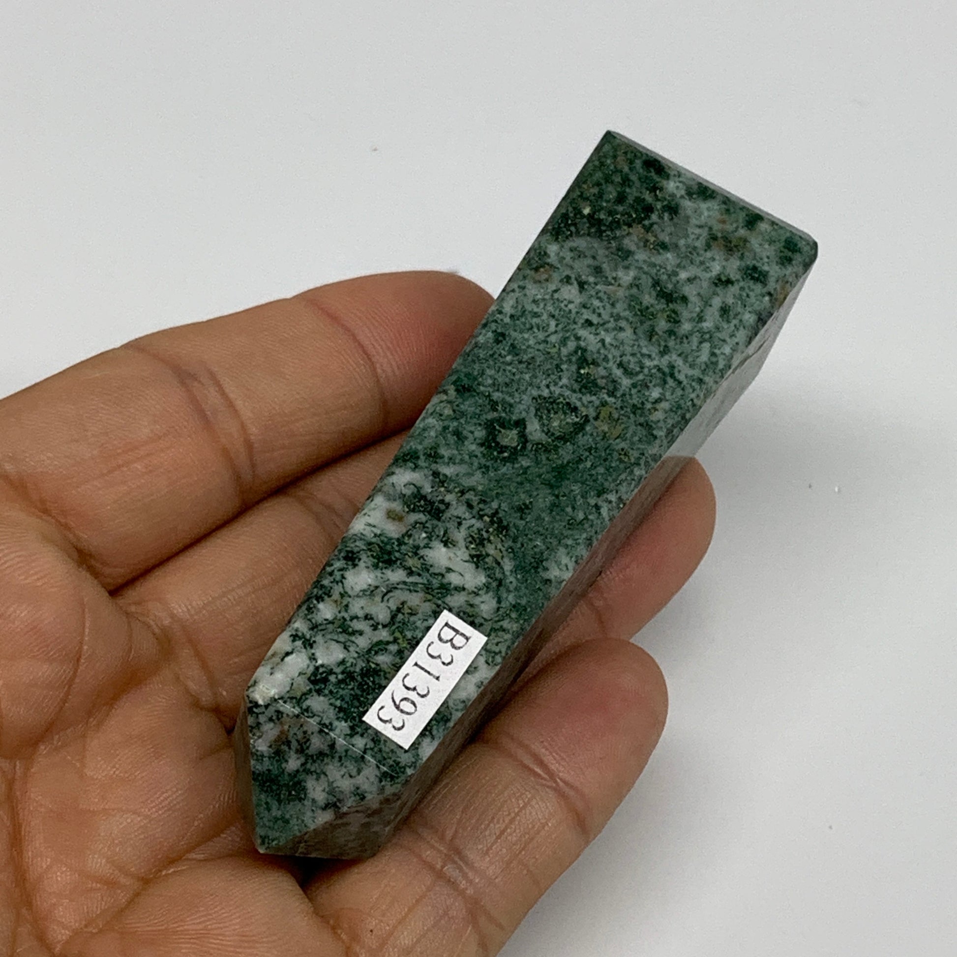 76.4g, 3.2"x0.9", Tree Agate Tower Obelisk Point Crystal @Brazil, B31393