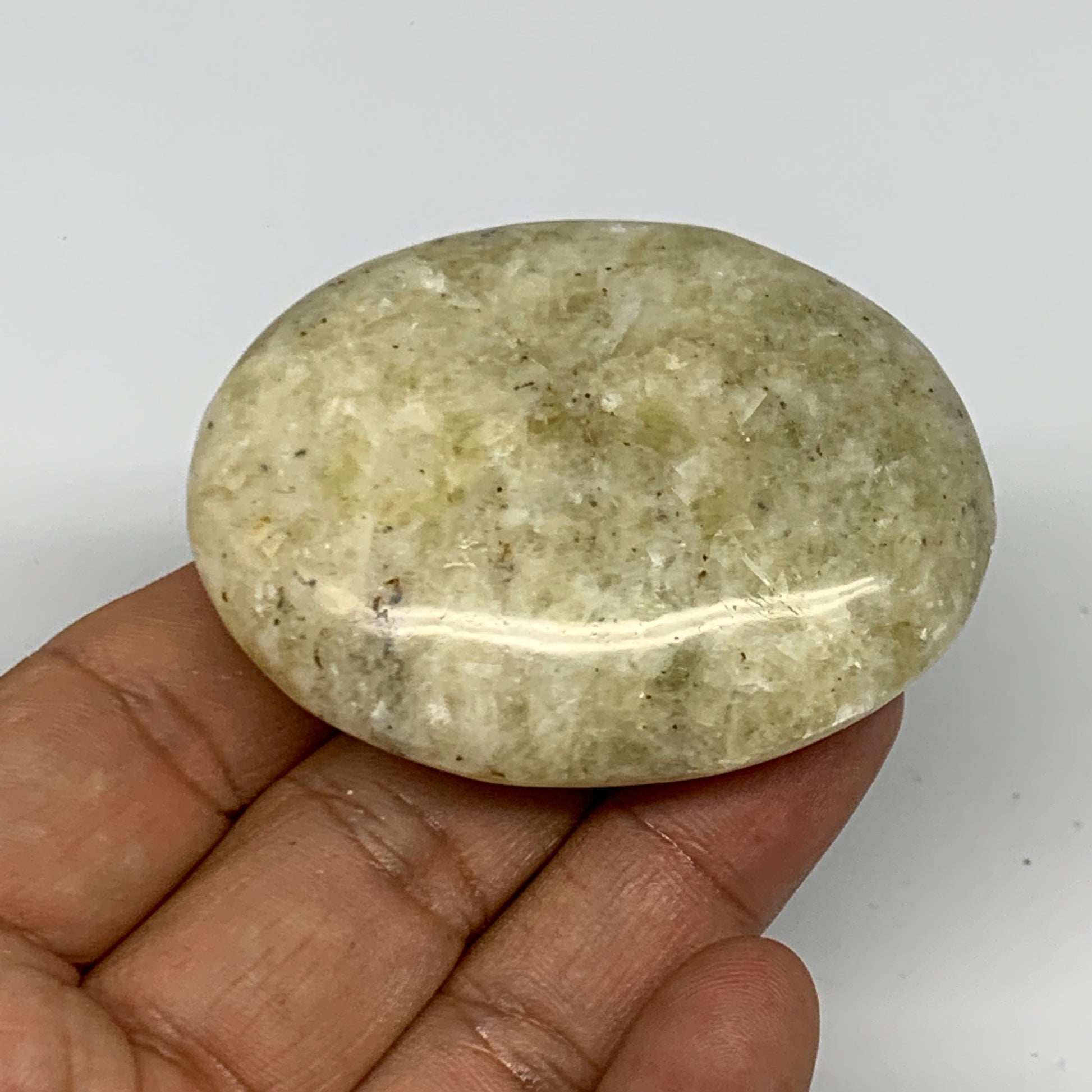 76g, 2.4"x1.8"x0.7", Natural Yellow Calcite Palm-Stone Crystal Polished Reiki, B16798