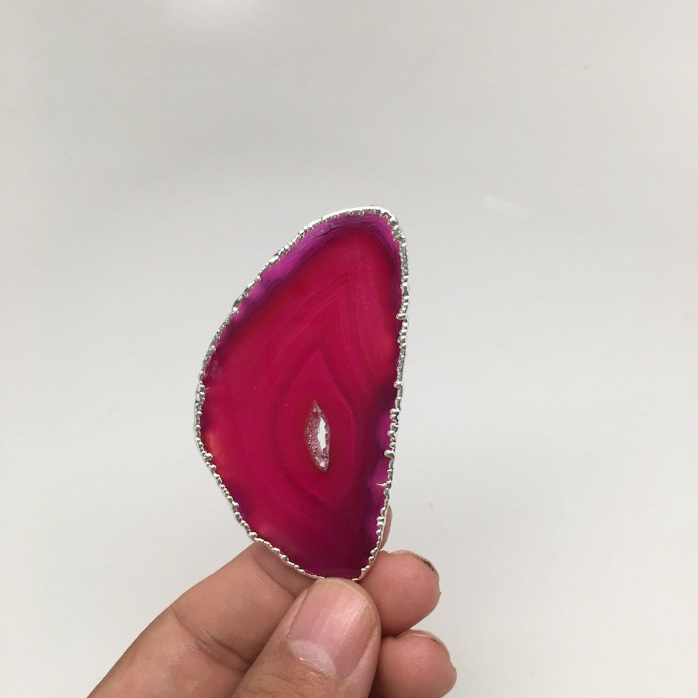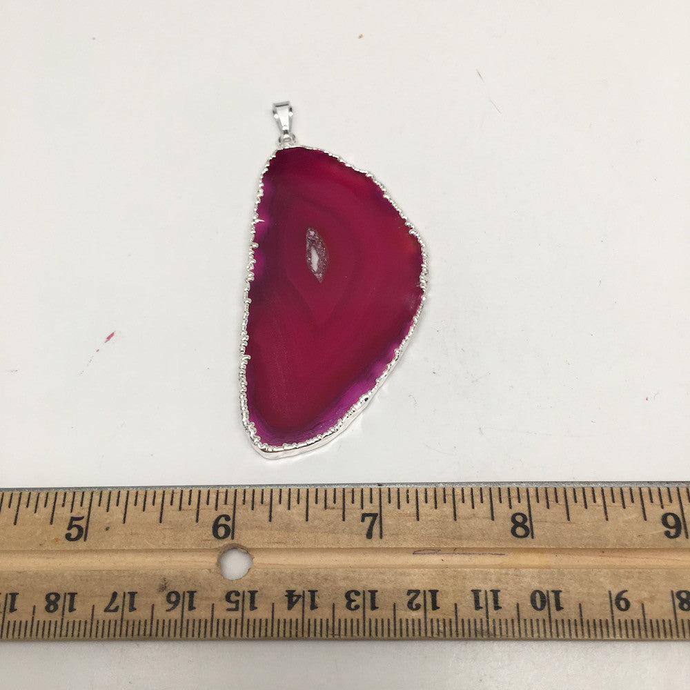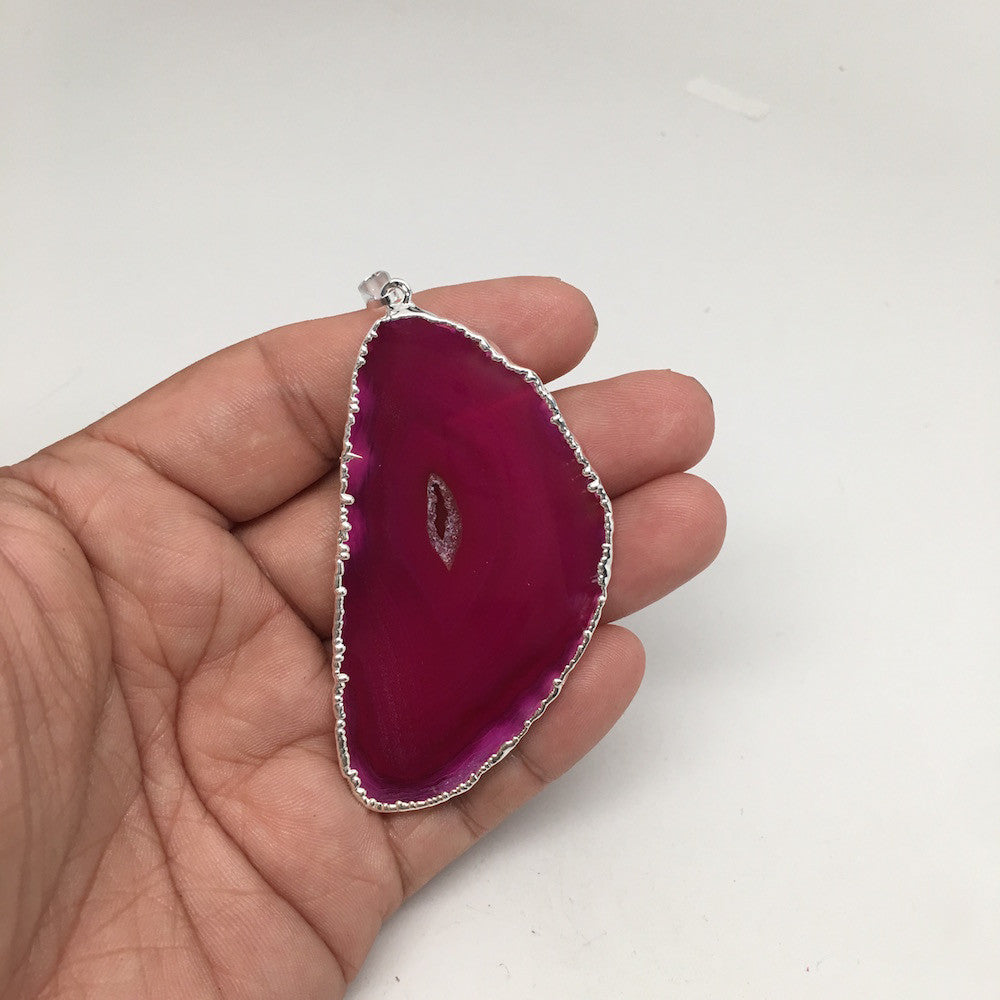 78.5 cts Purple Agate Slice Electroplated Silver Plated Pendant from Brazil, D55