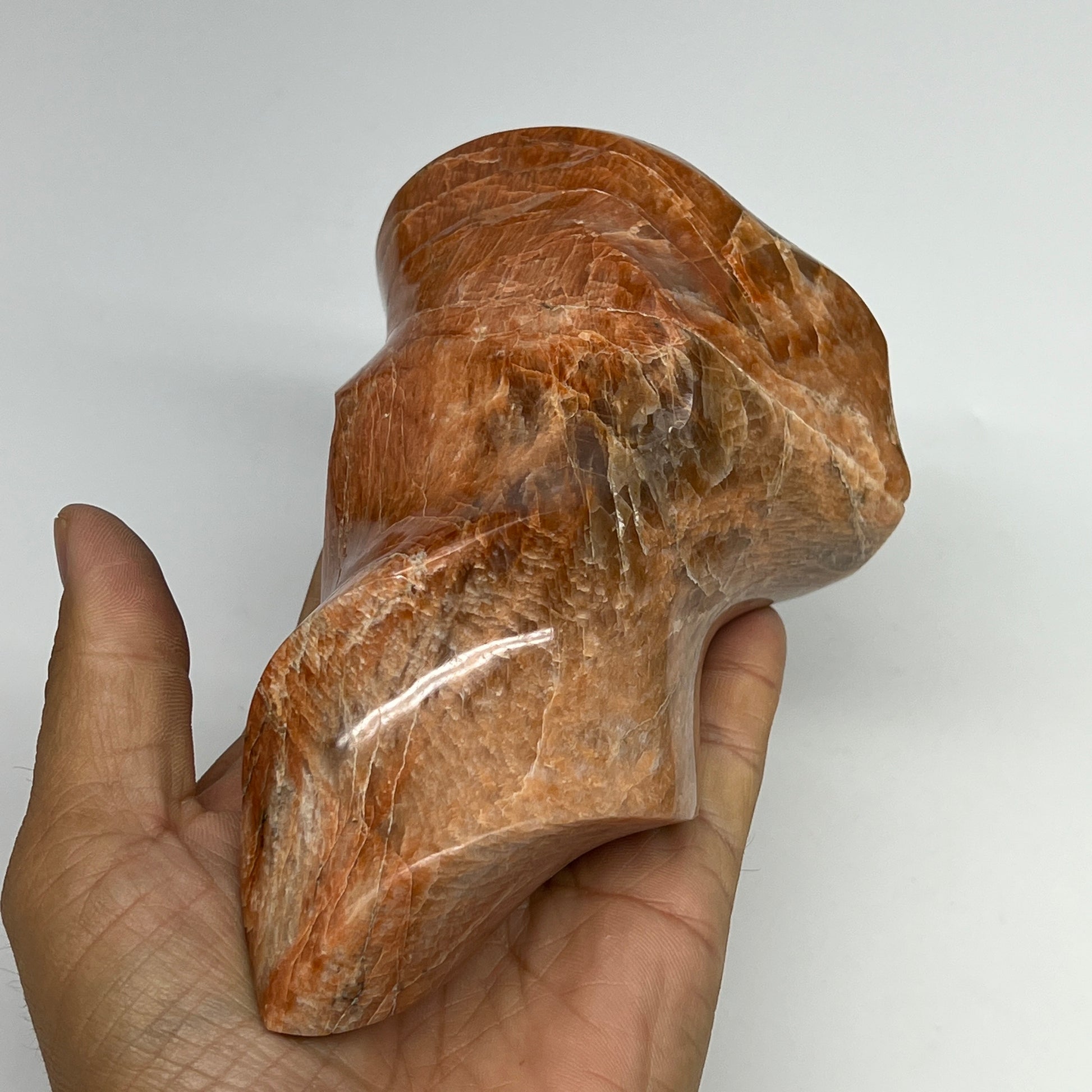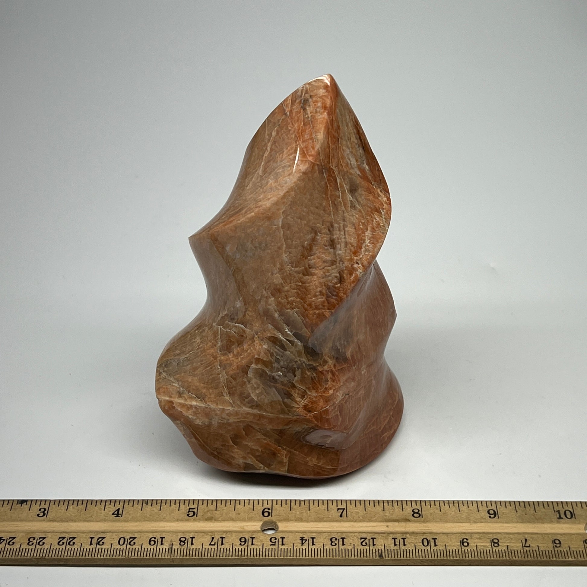 785g, 5.8"x3.5"x2.3", Natural Peach Moonstone Flame Gemstones Reiki Tool, B19574
