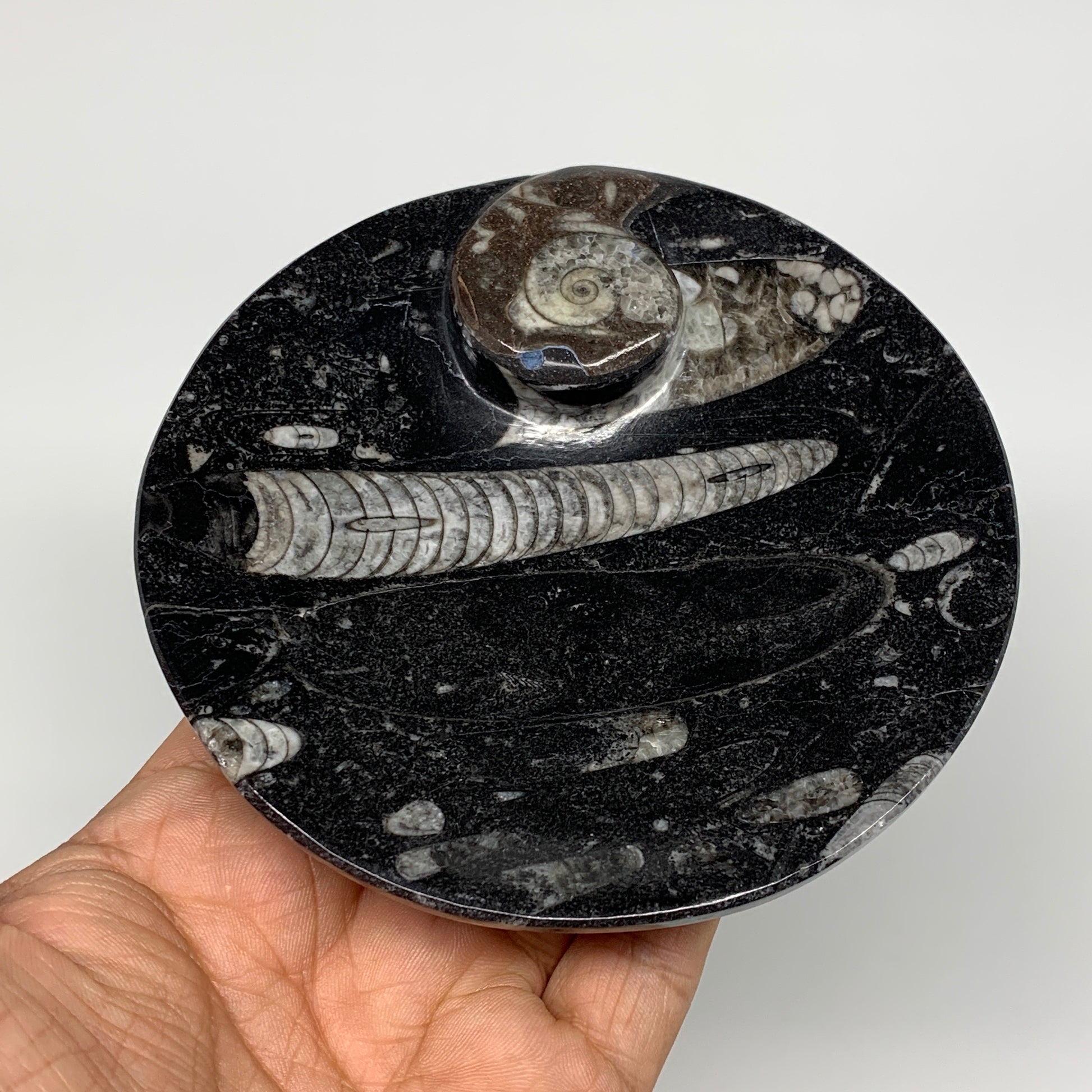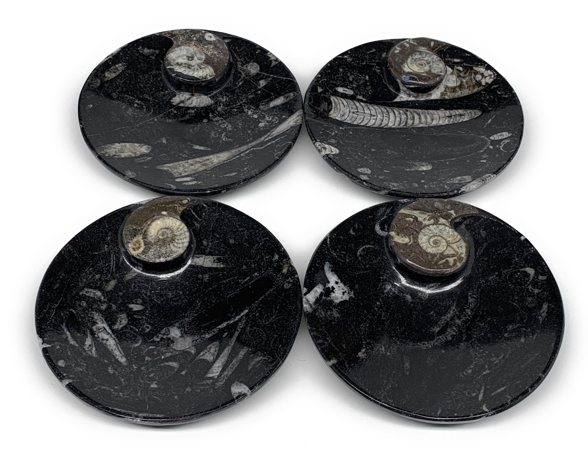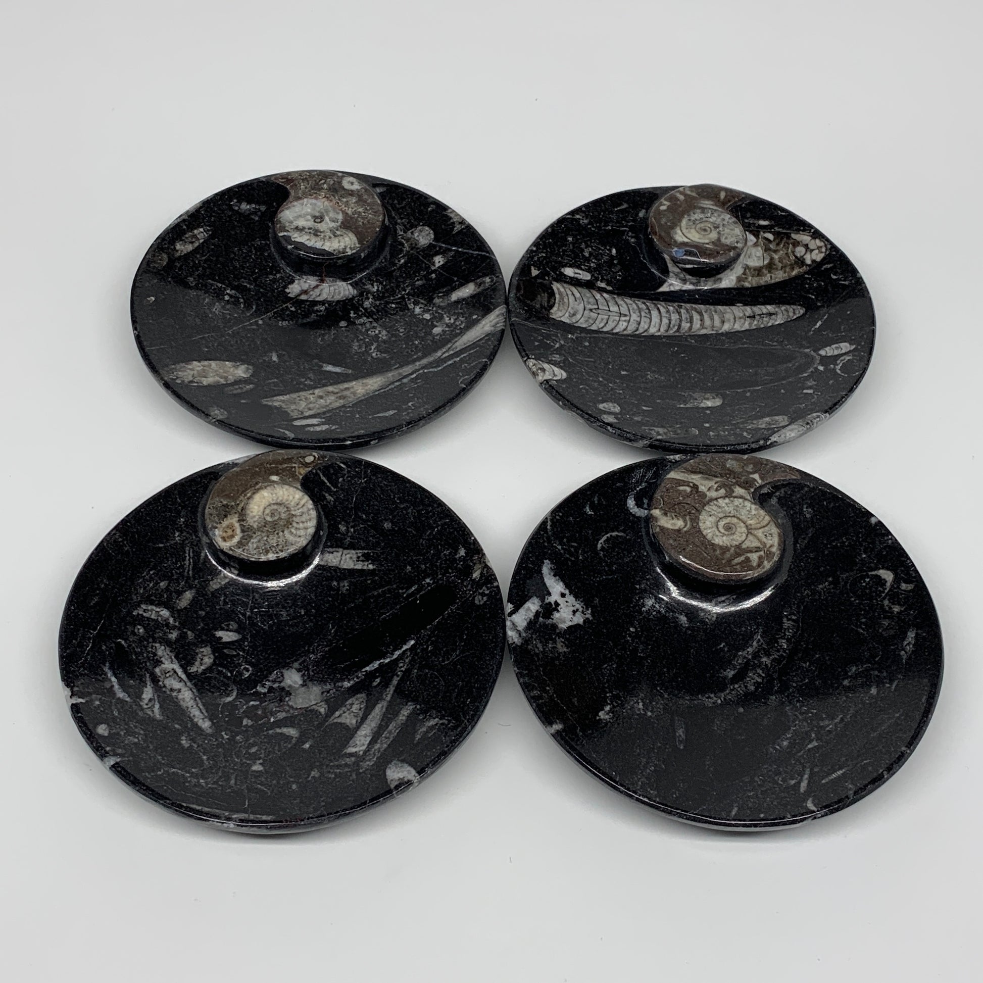 798g, 4pcs, 4.4" Small Black Fossils Ammonite Orthoceras Bowl Round Ring,B8835