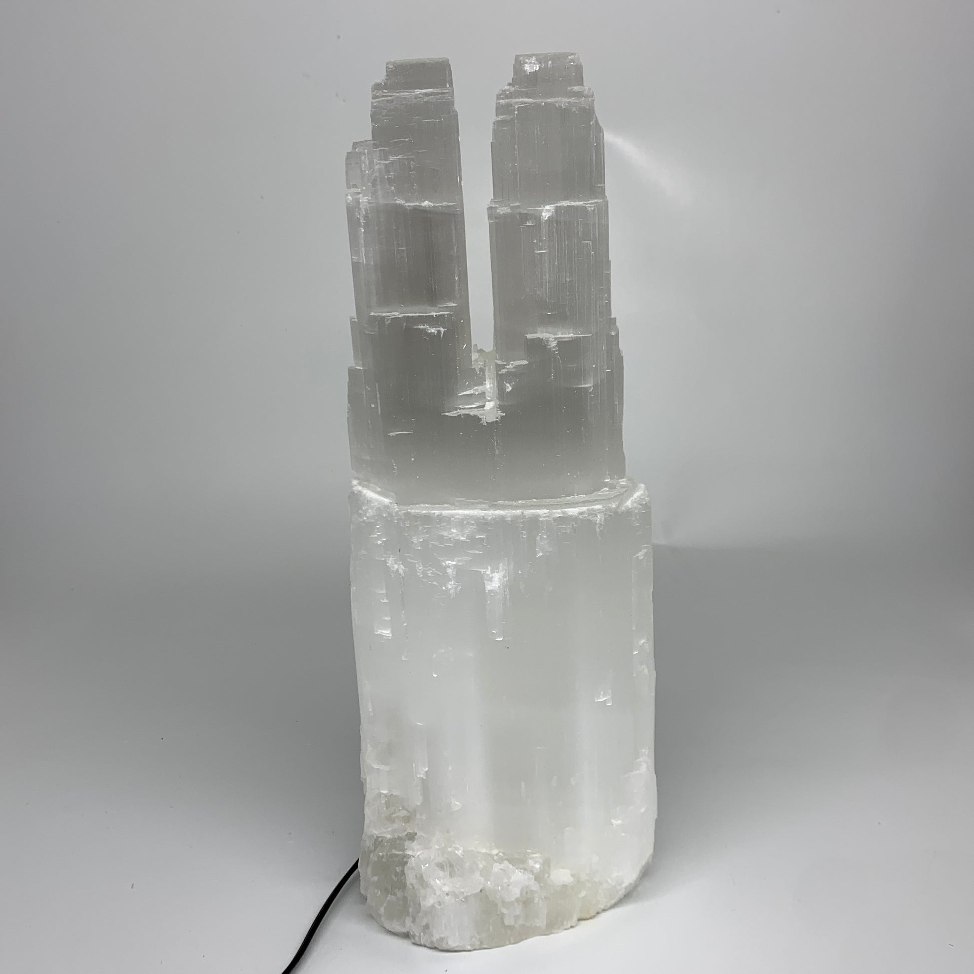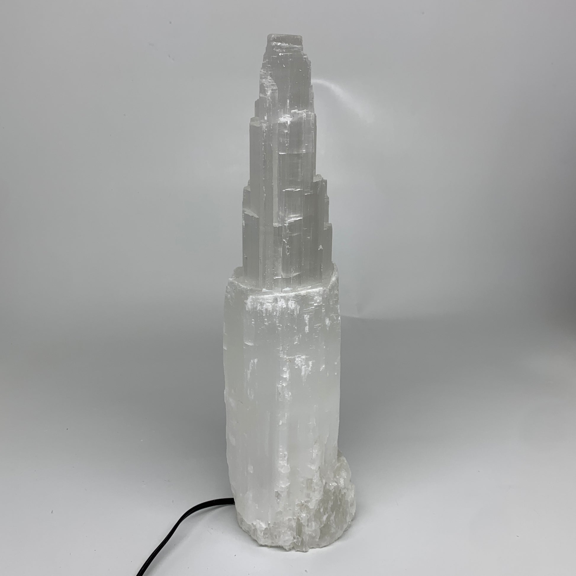 8.8 lbs, 13.4"x4.9"x3.5" Rough Selenite (Satin Spar) Lamp Tower W/Chord, B35775