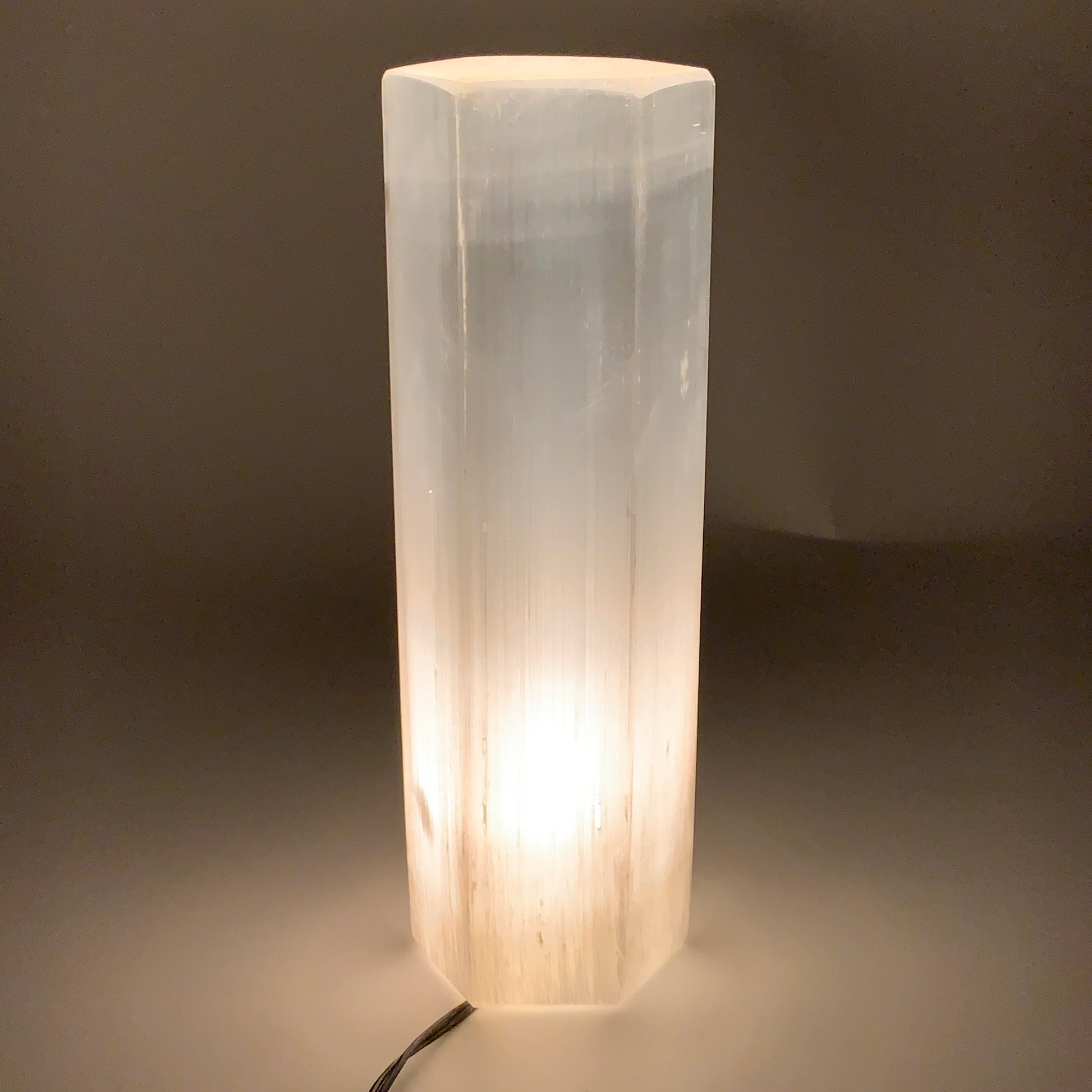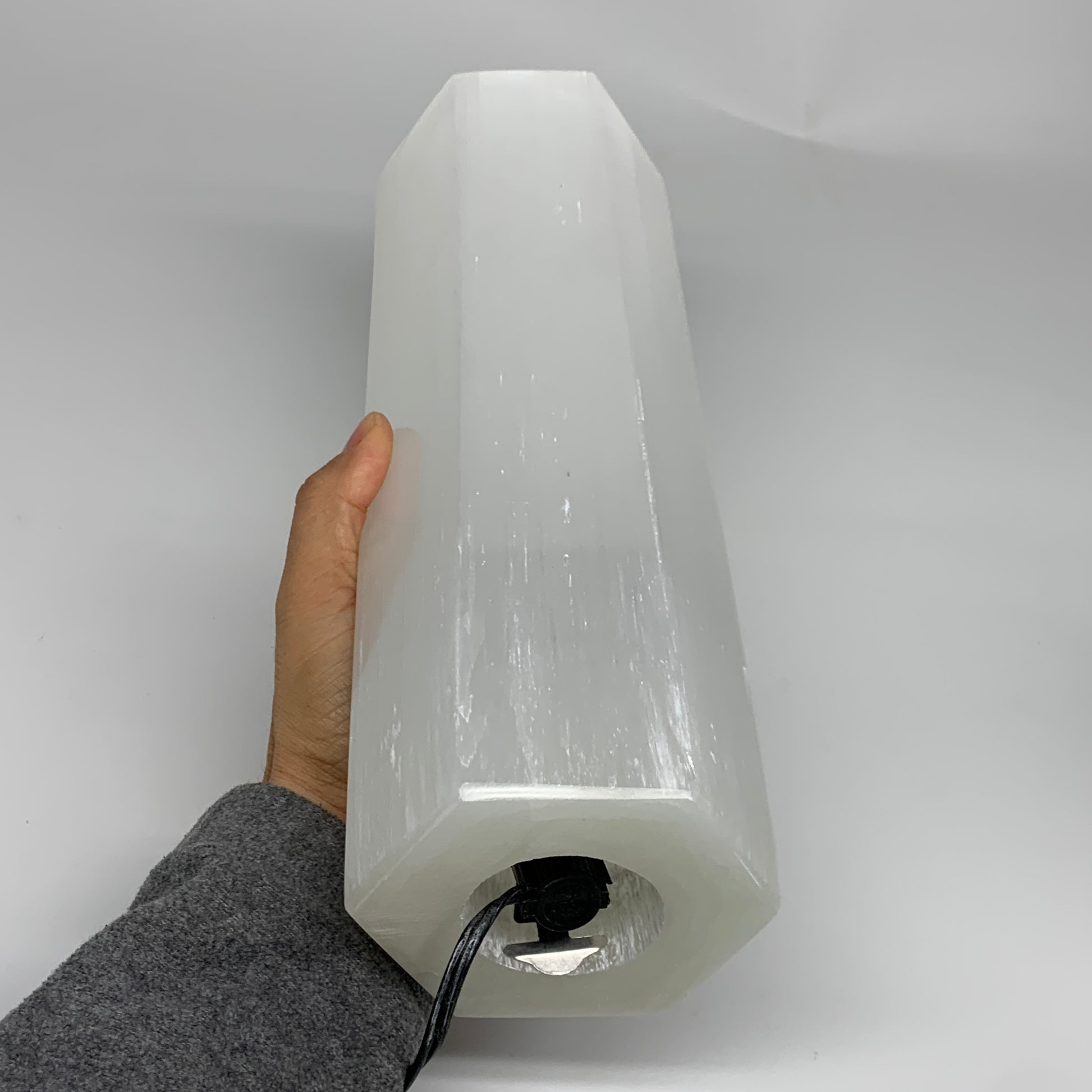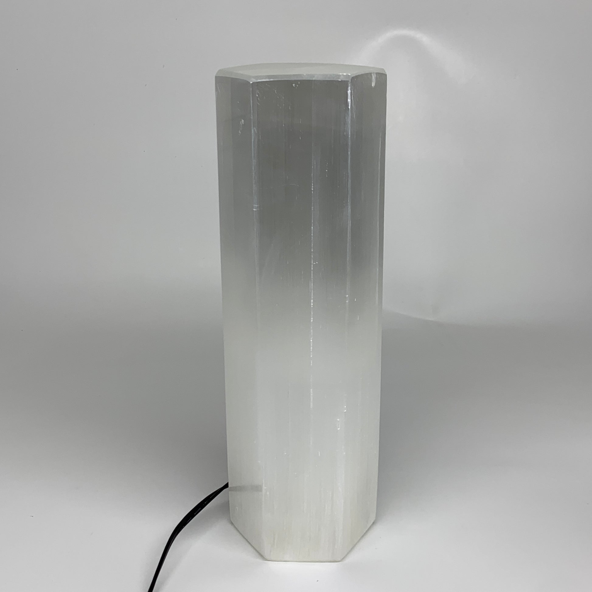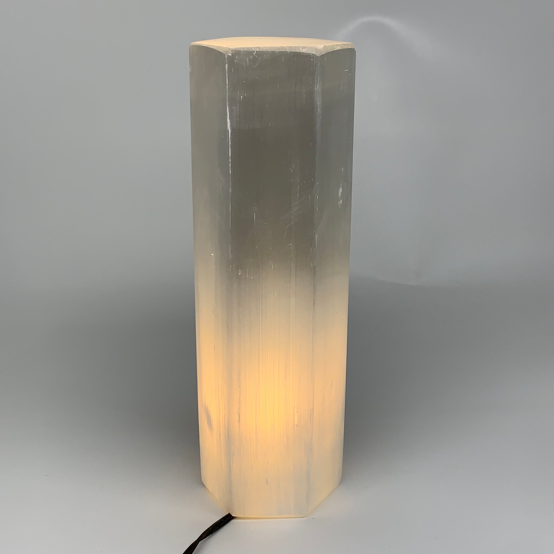 8.9 lbs. 11.75"x3.5", Hexagon Selenite (Satin Spar) Lamp, w/6ft Chord, B35825