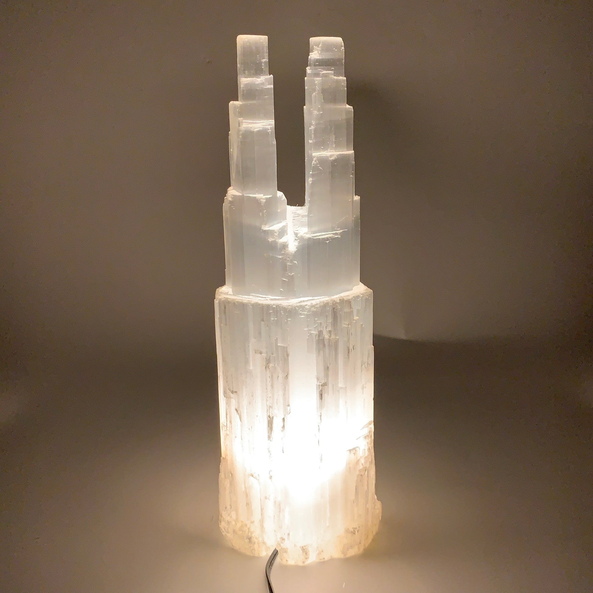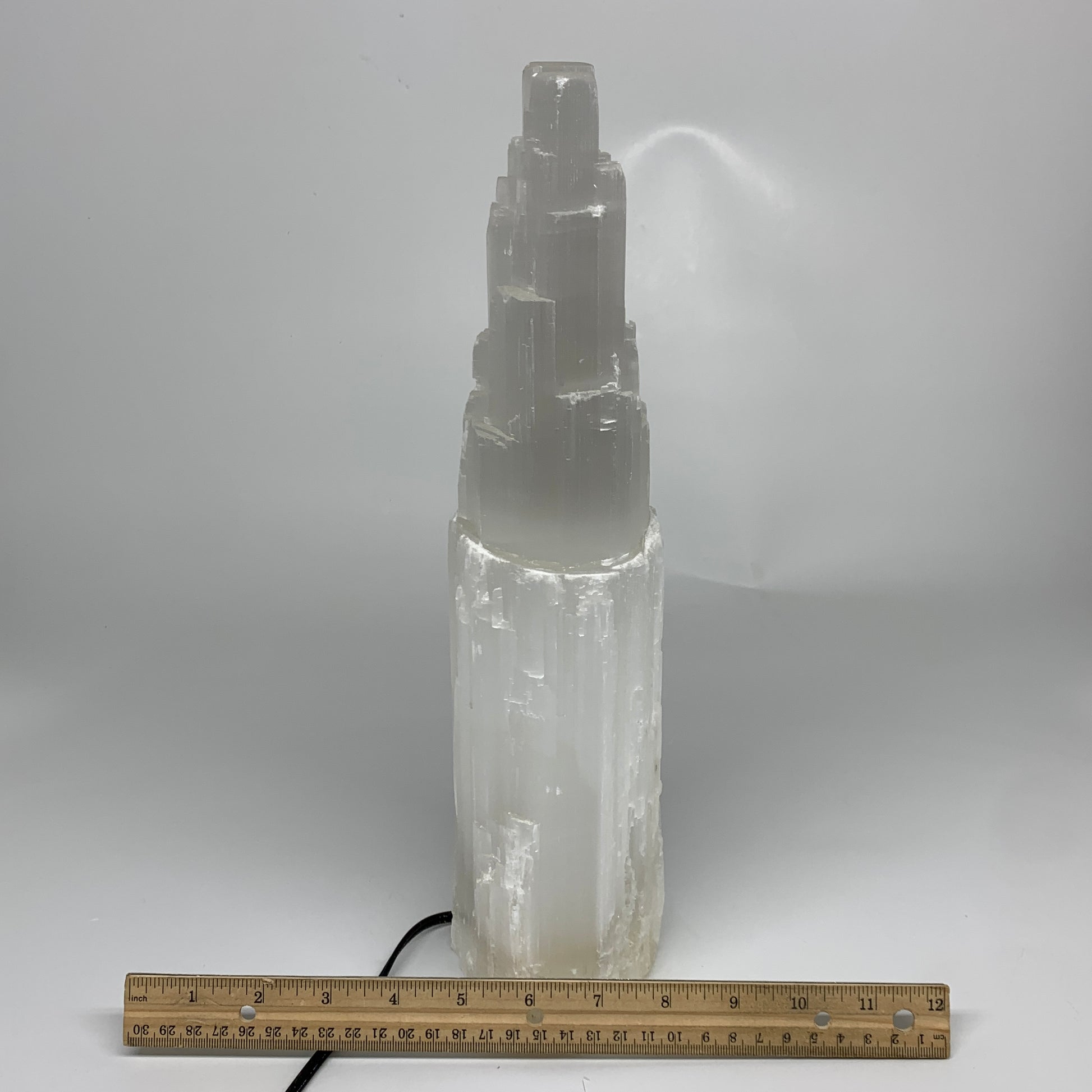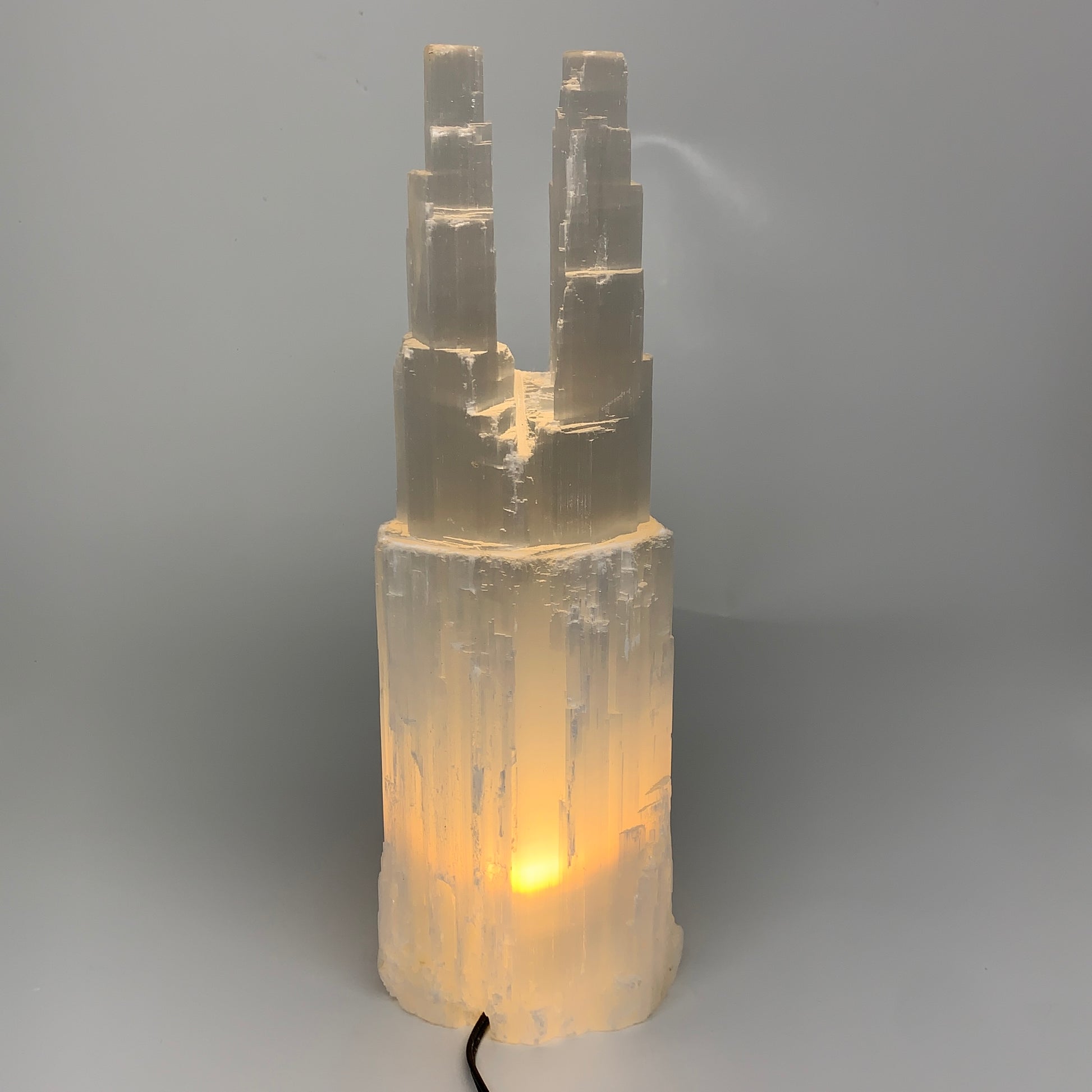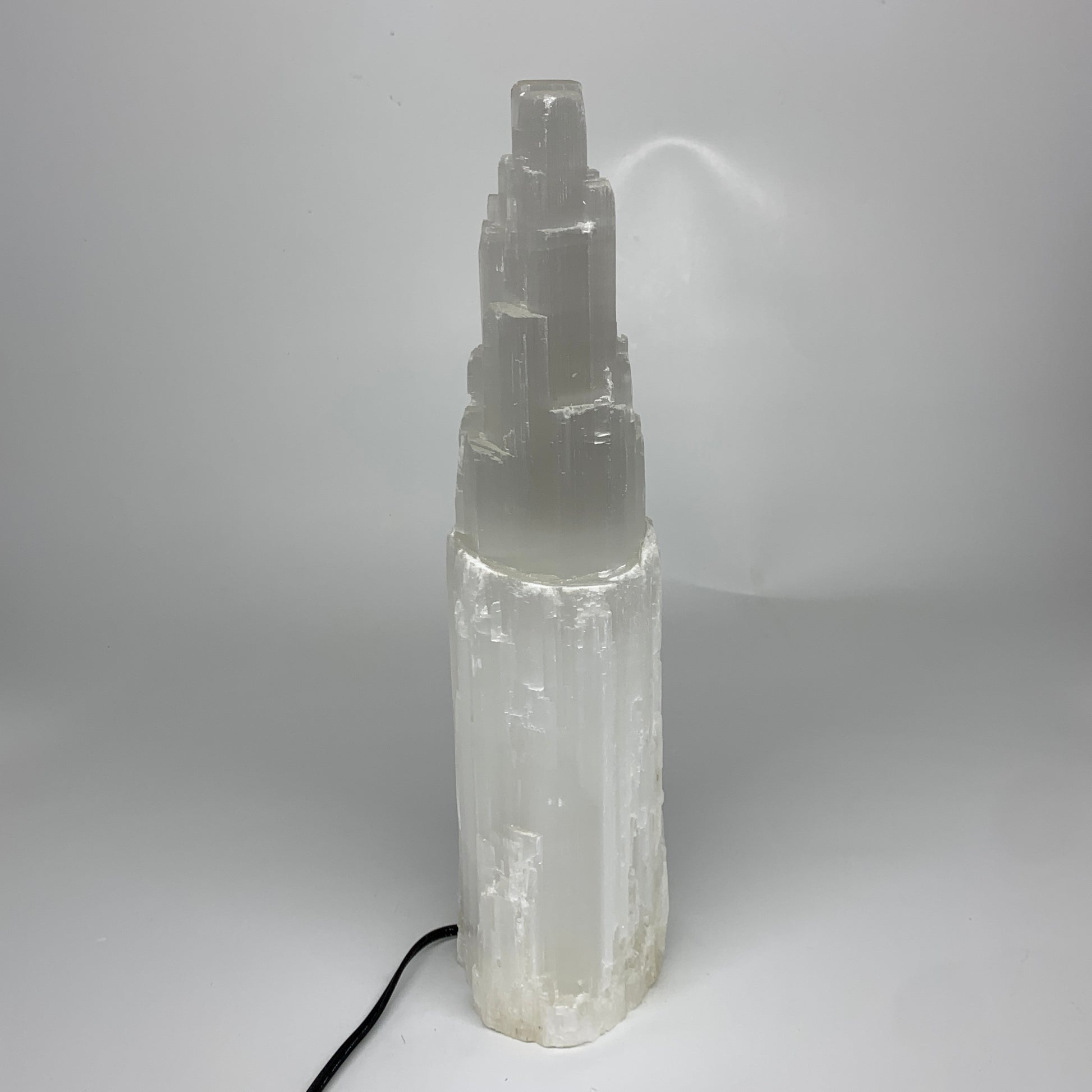 8 lbs, 13.7"x4.8"x3.5" Rough Selenite (Satin Spar) Lamp Tower W/Chord, B35762