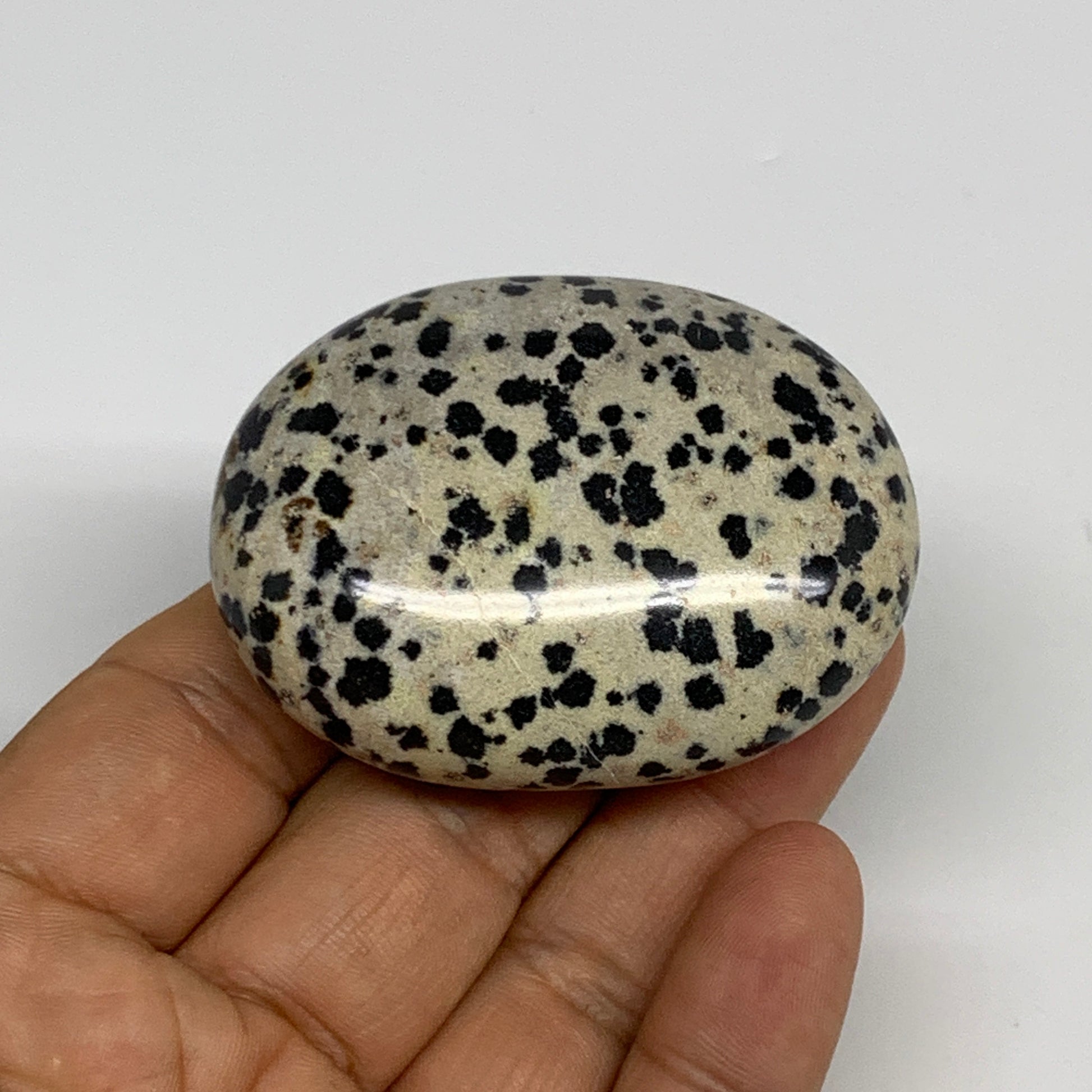 80.1g, 2.2"x1.7"x0.8", Natural Dalmatian Jasper Palm-Stone @India, B29473