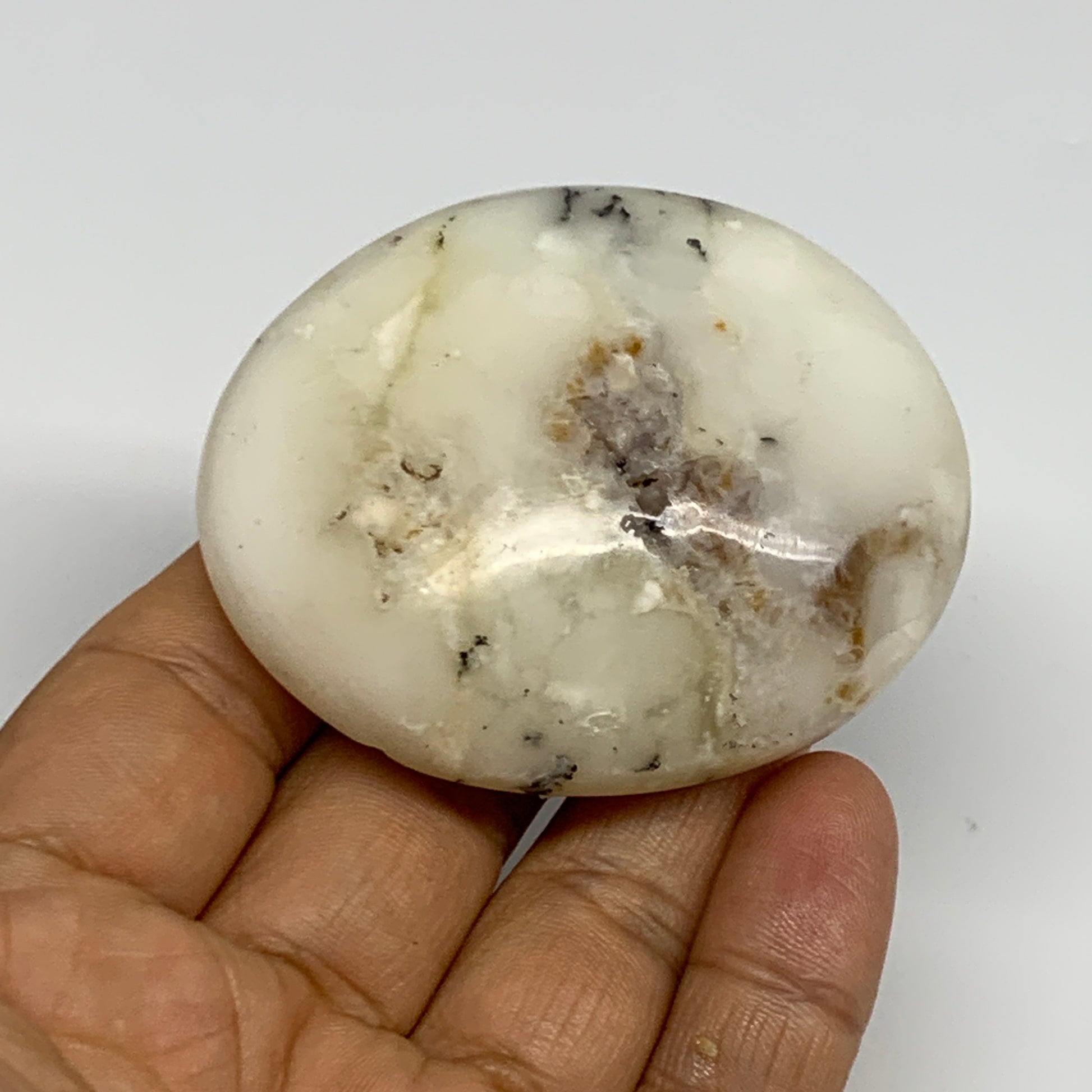 80.6g, 2.4"x2"x0.8", Dendrite Opal Palm-Stone Reiki Energy Crystal, B27828