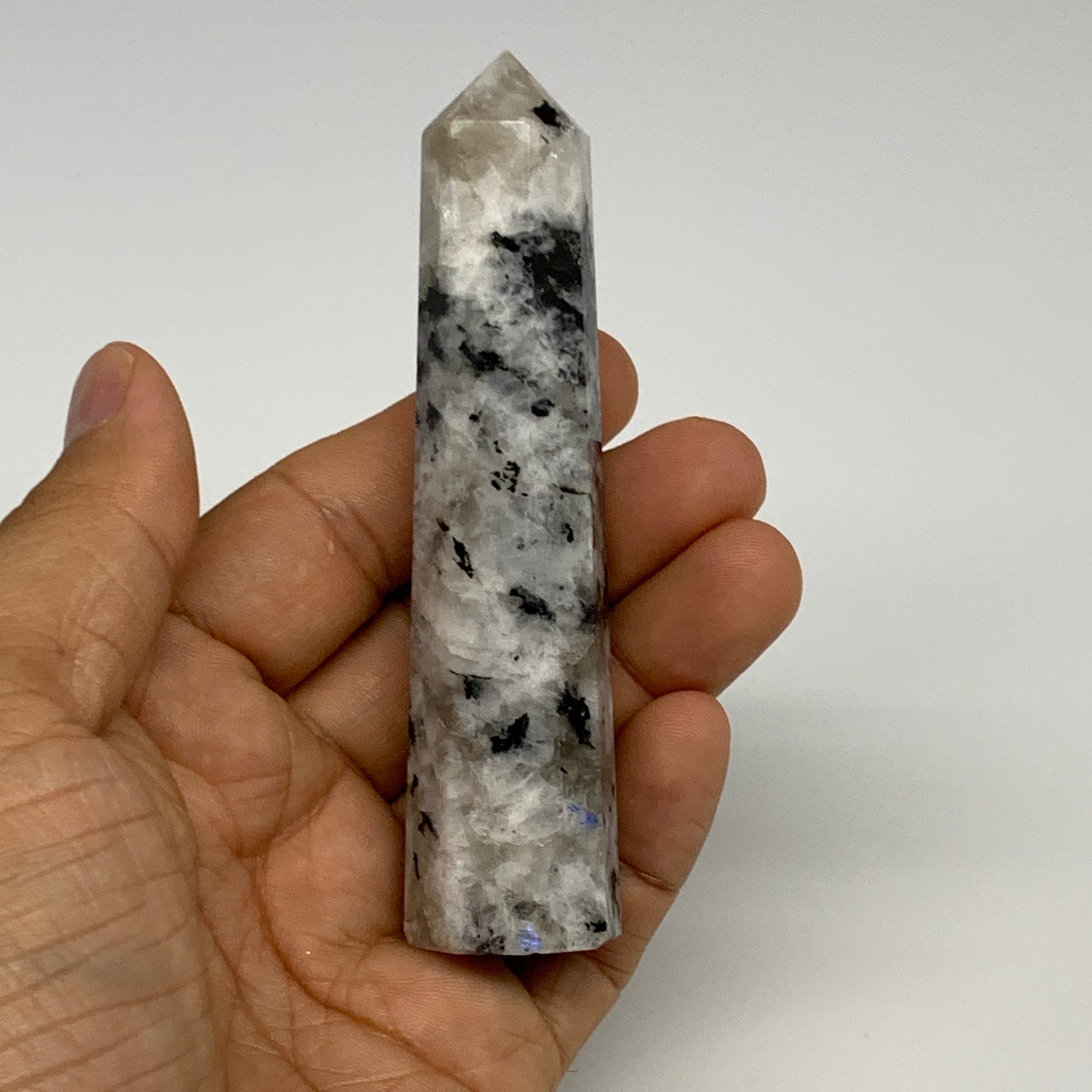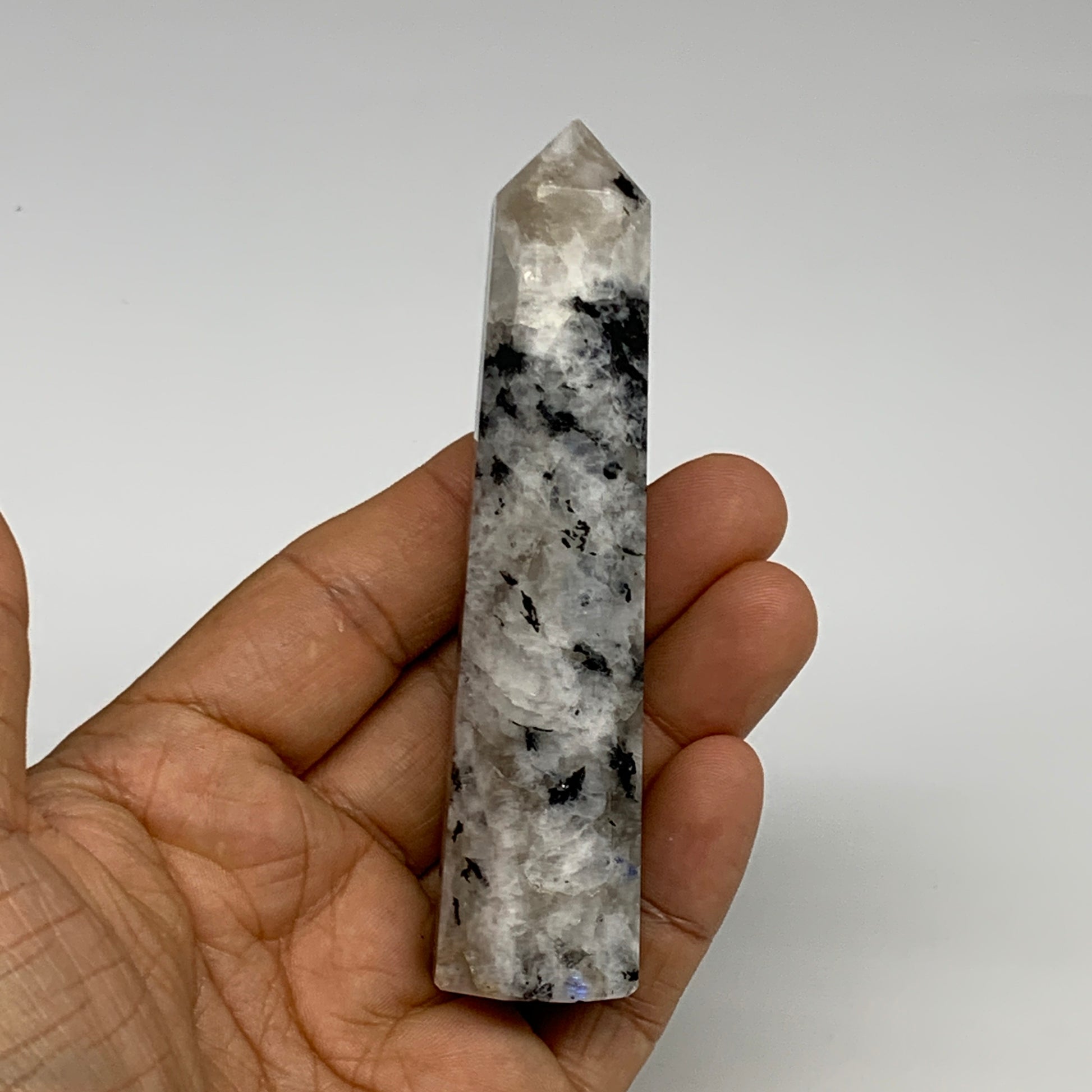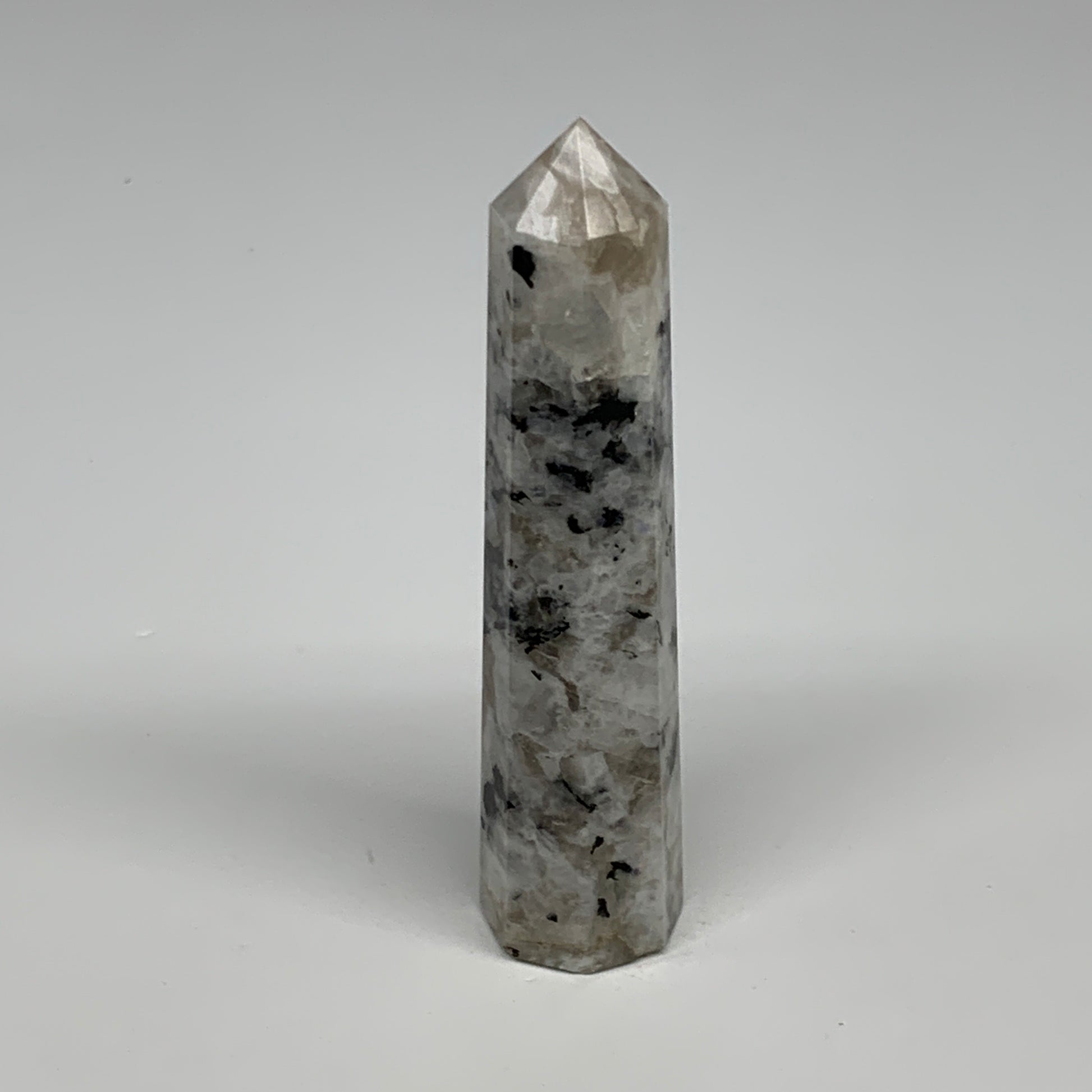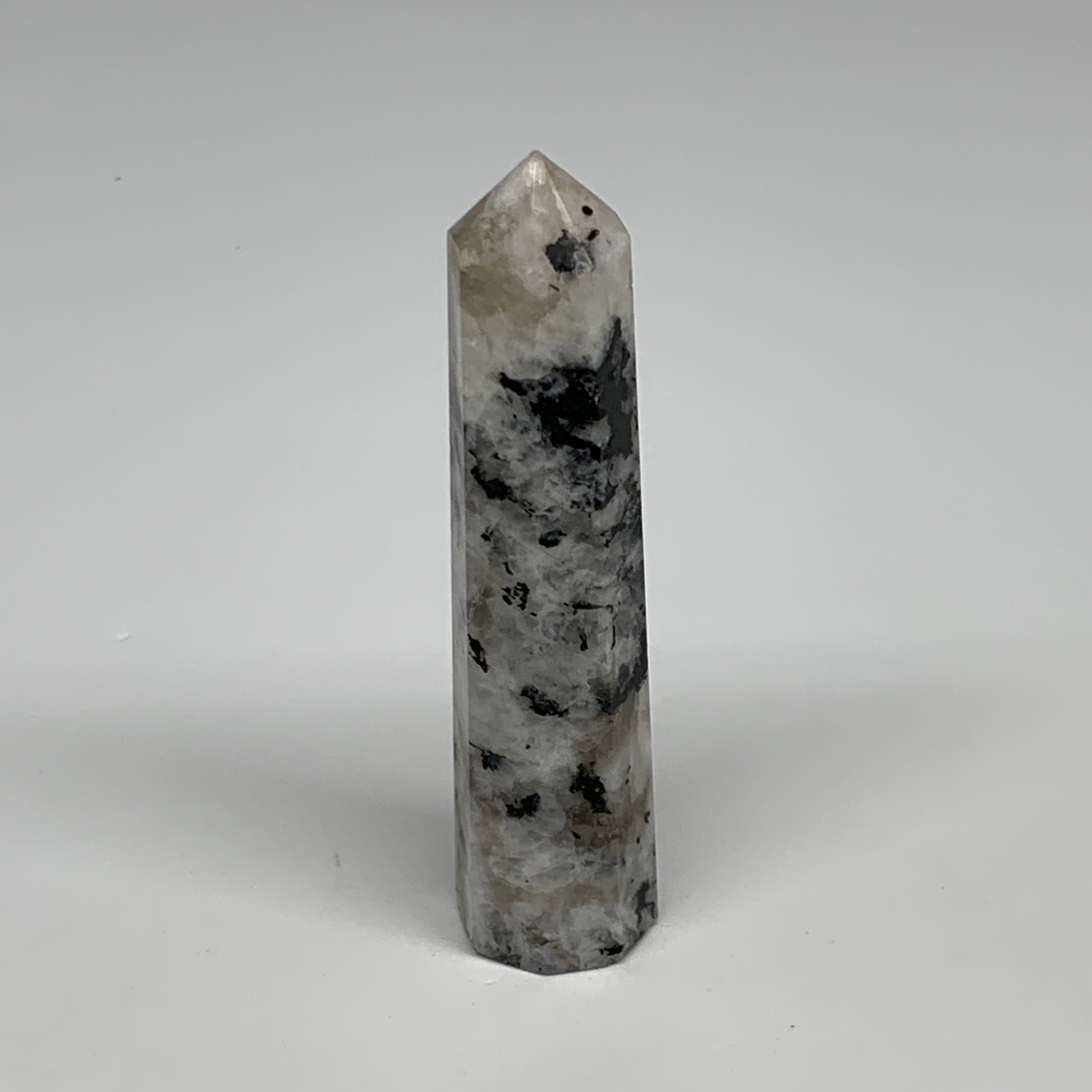 80.6g, 3.9"x0.9", Rainbow Moonstone Tower Obelisk Point Crystal @India, B29211