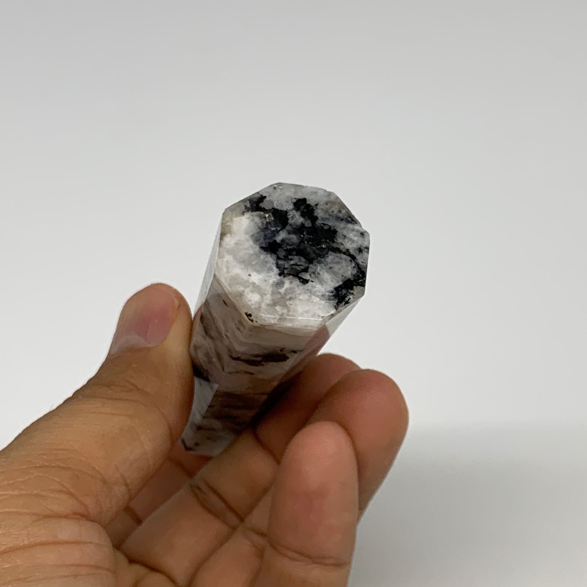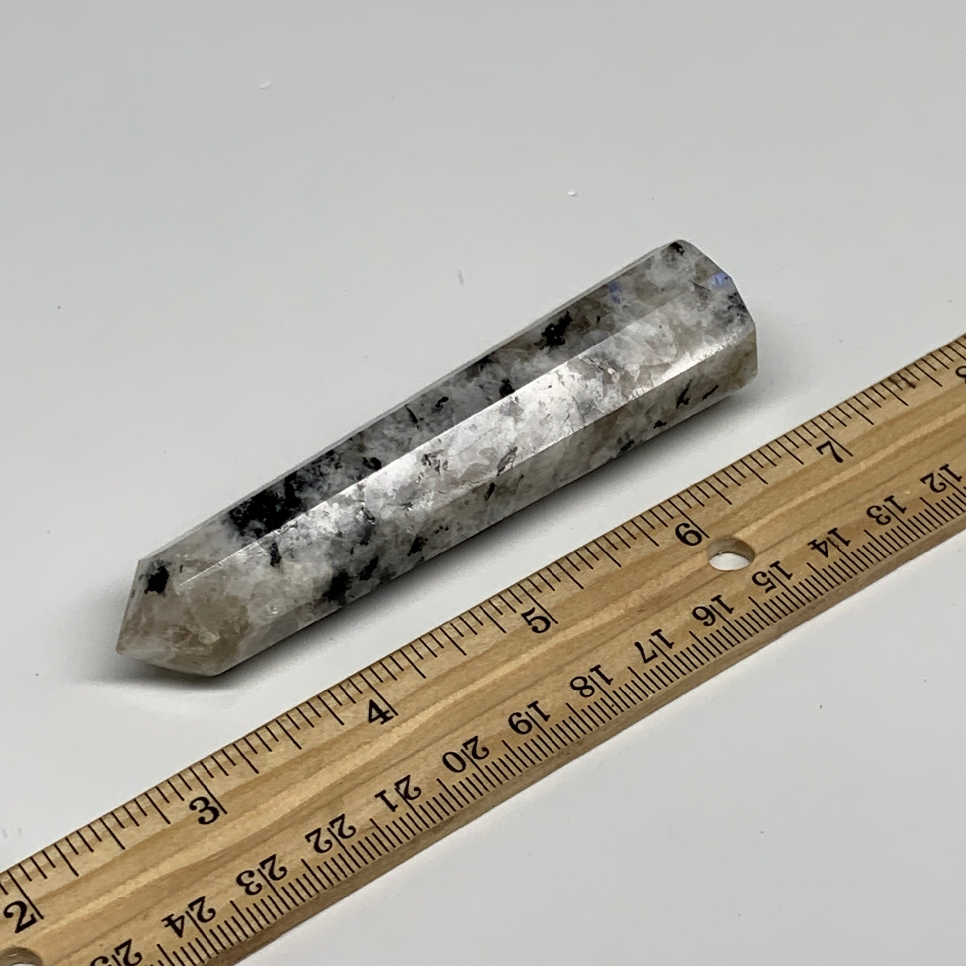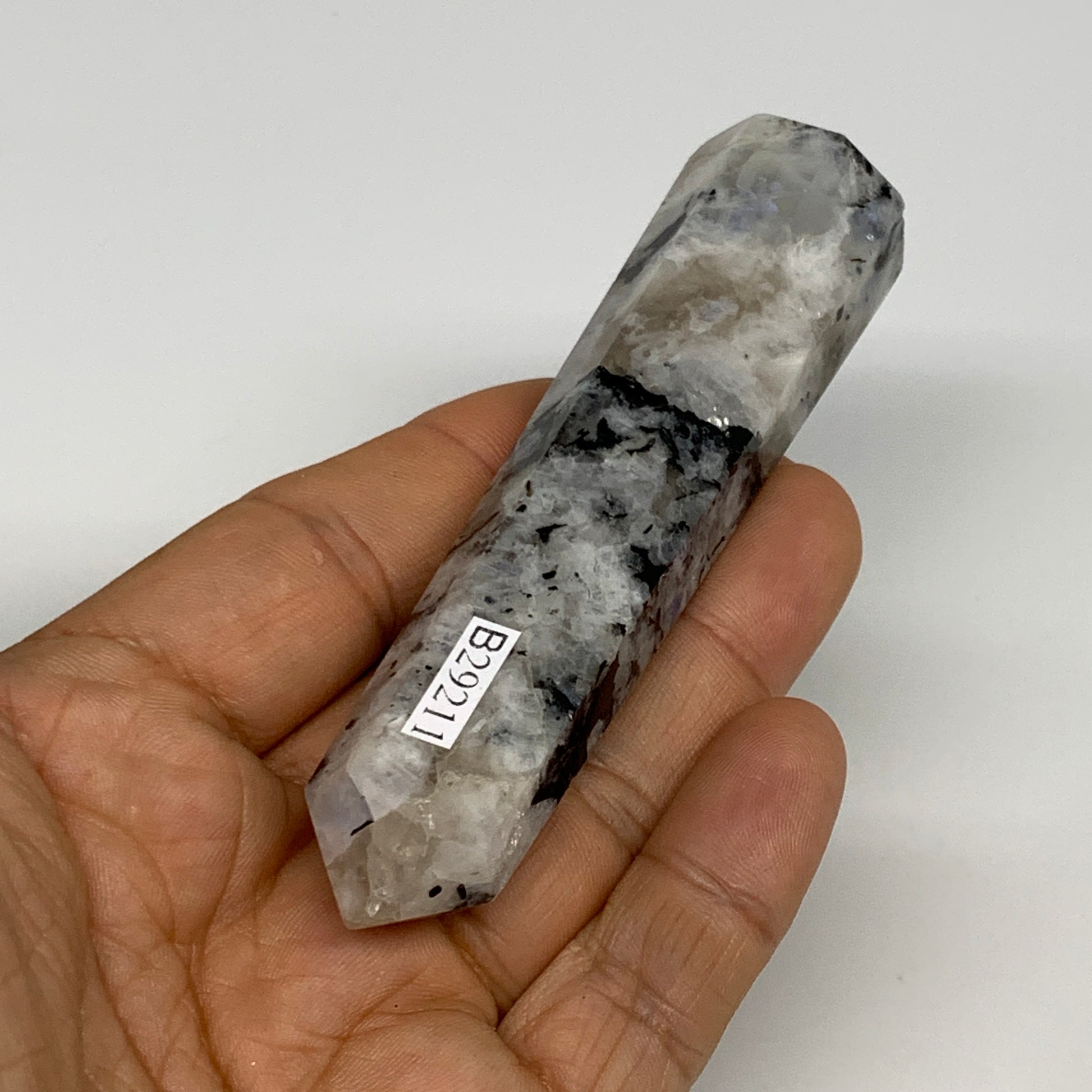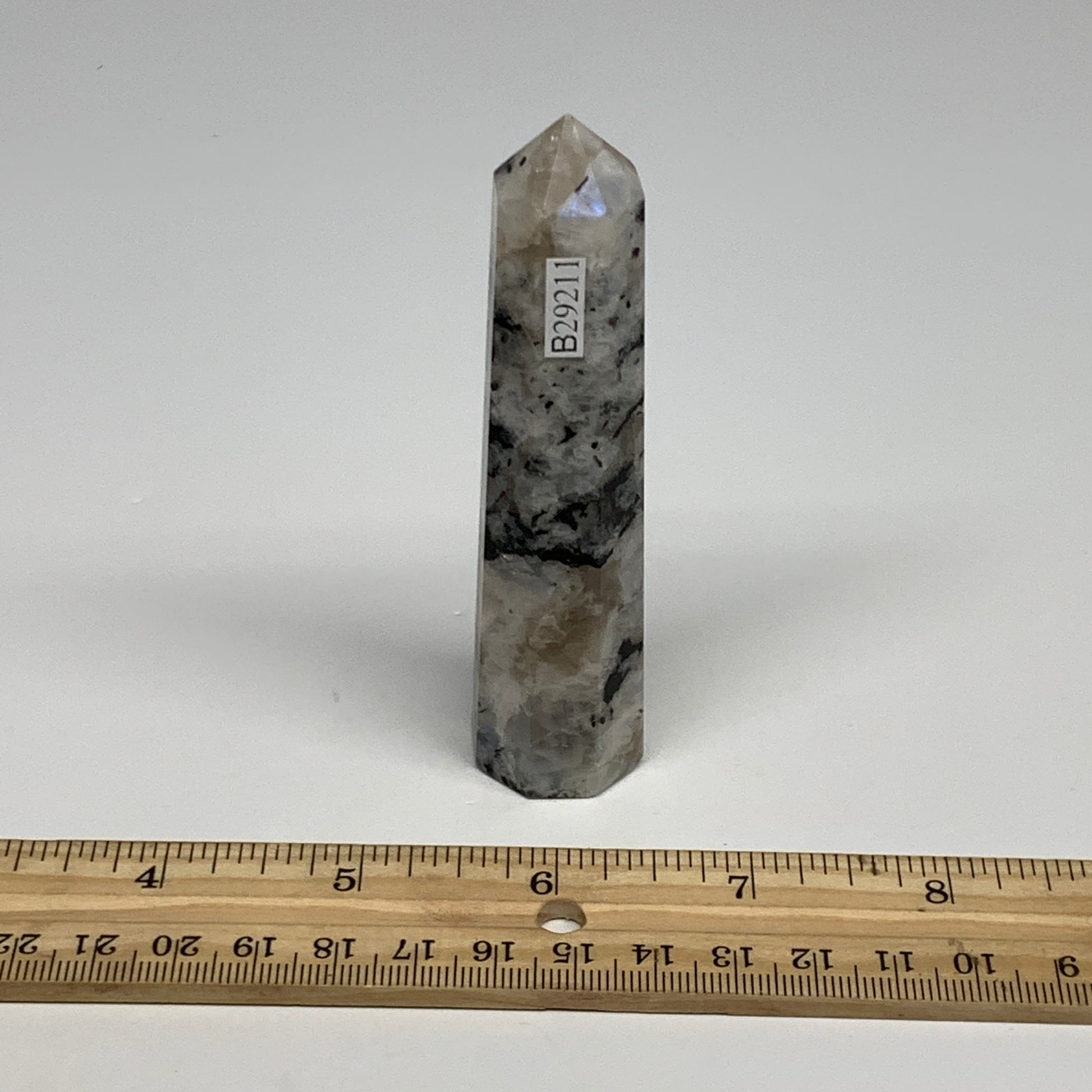 80.6g, 3.9"x0.9", Rainbow Moonstone Tower Obelisk Point Crystal @India, B29211