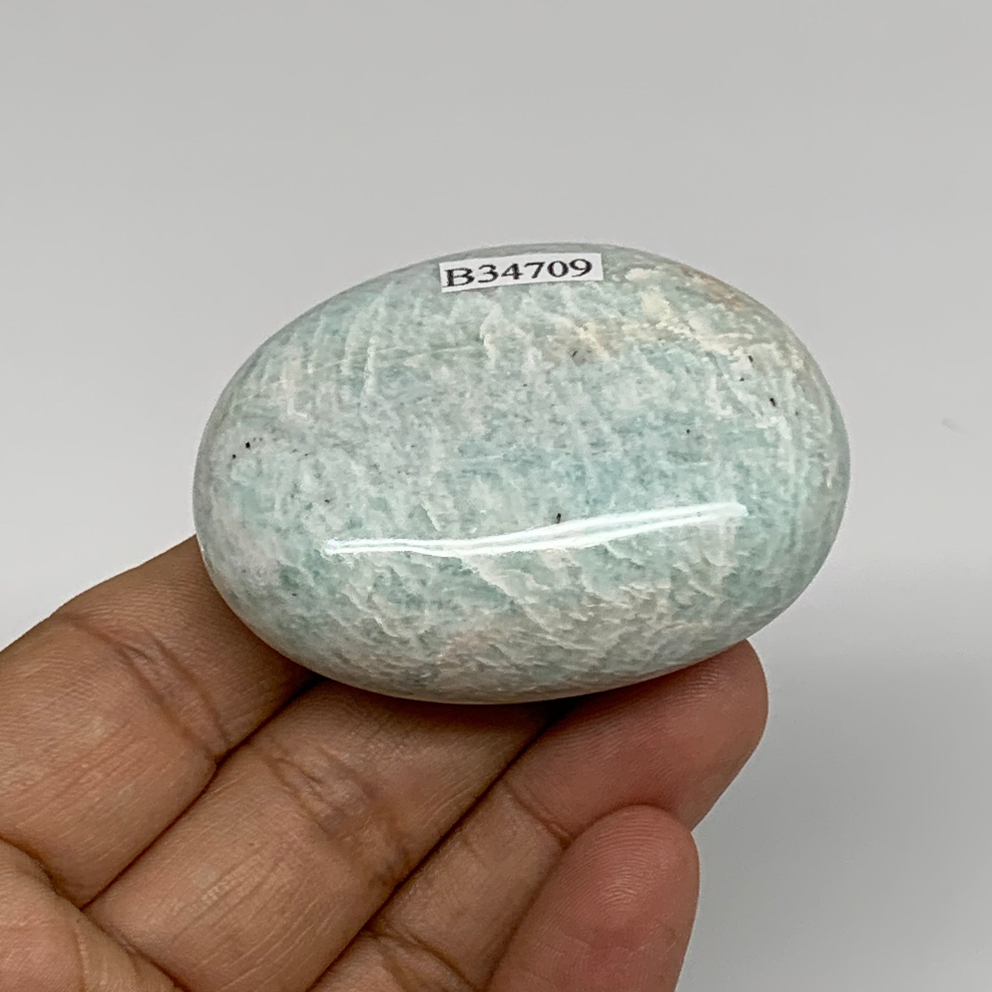 80.7g, 2.2"x1.7"x0.9", Natural Amazonite Palm-Stone Tumbled Polished, B34709