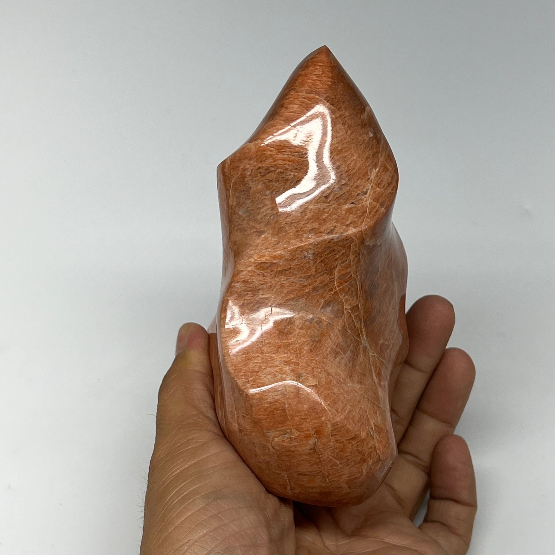 805g, 4.7"x3.9"x2.4", Natural Peach Moonstone Flame Gemstones Reiki Tool, B19575
