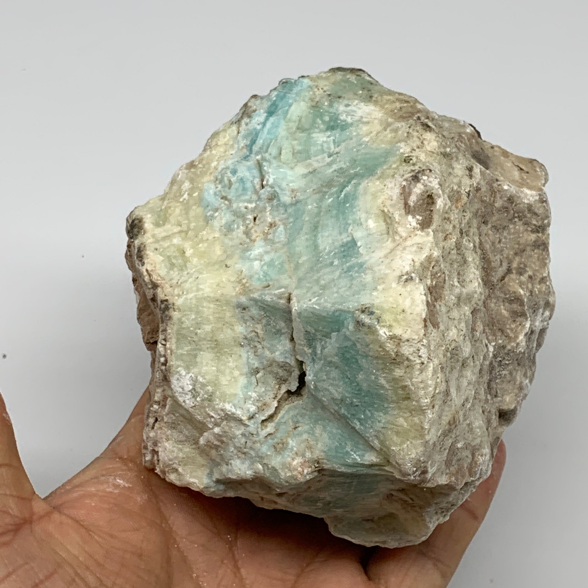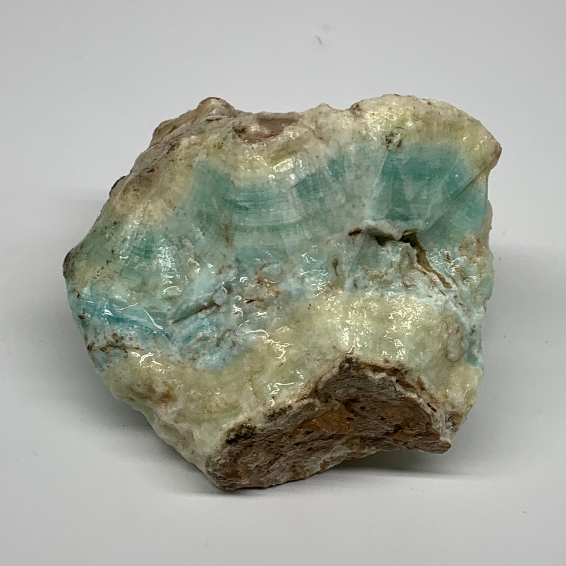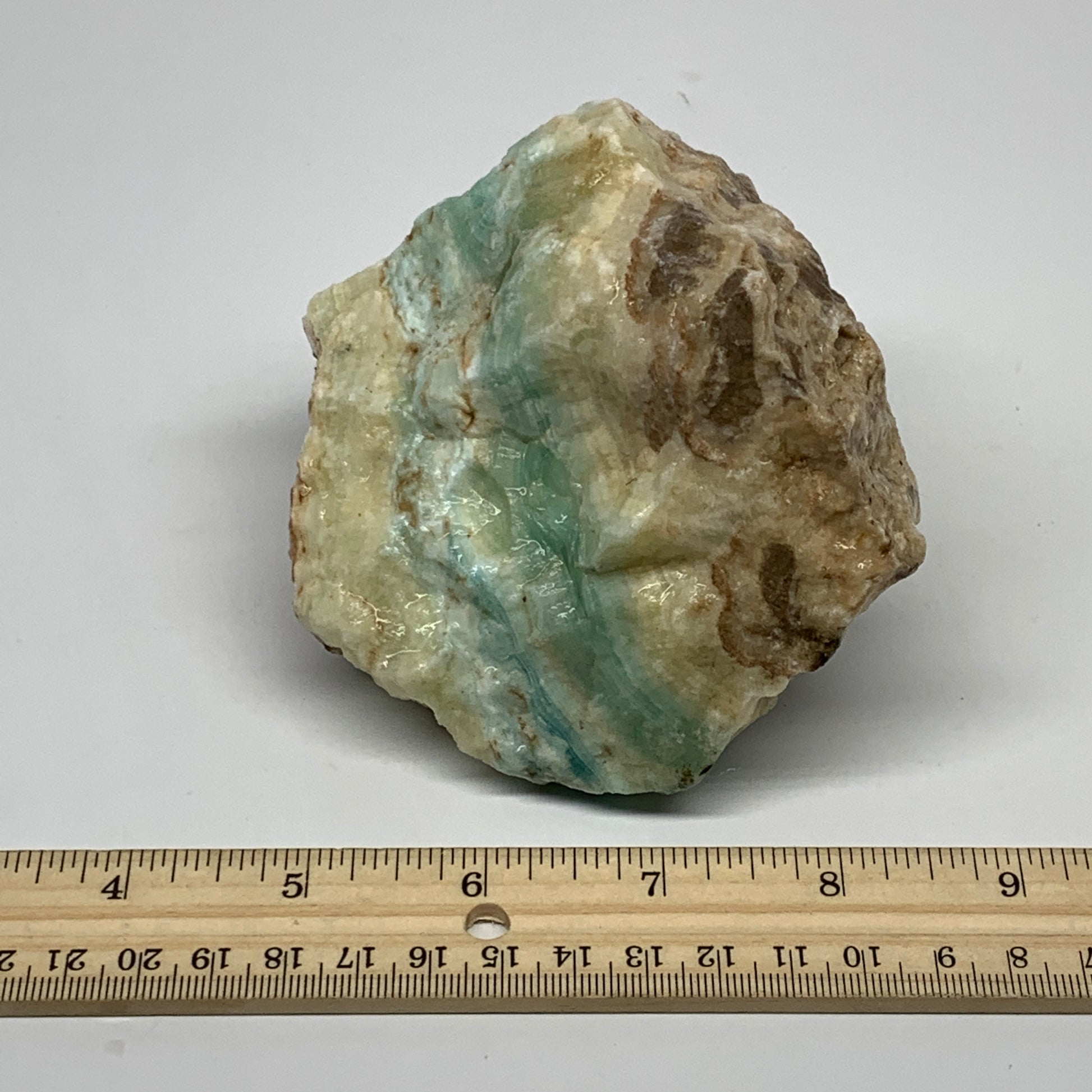 1038g,4.1"x3.3"x3.1", Rough Pistachio Calcite Chunk Mineral @Afghanistan, B24585