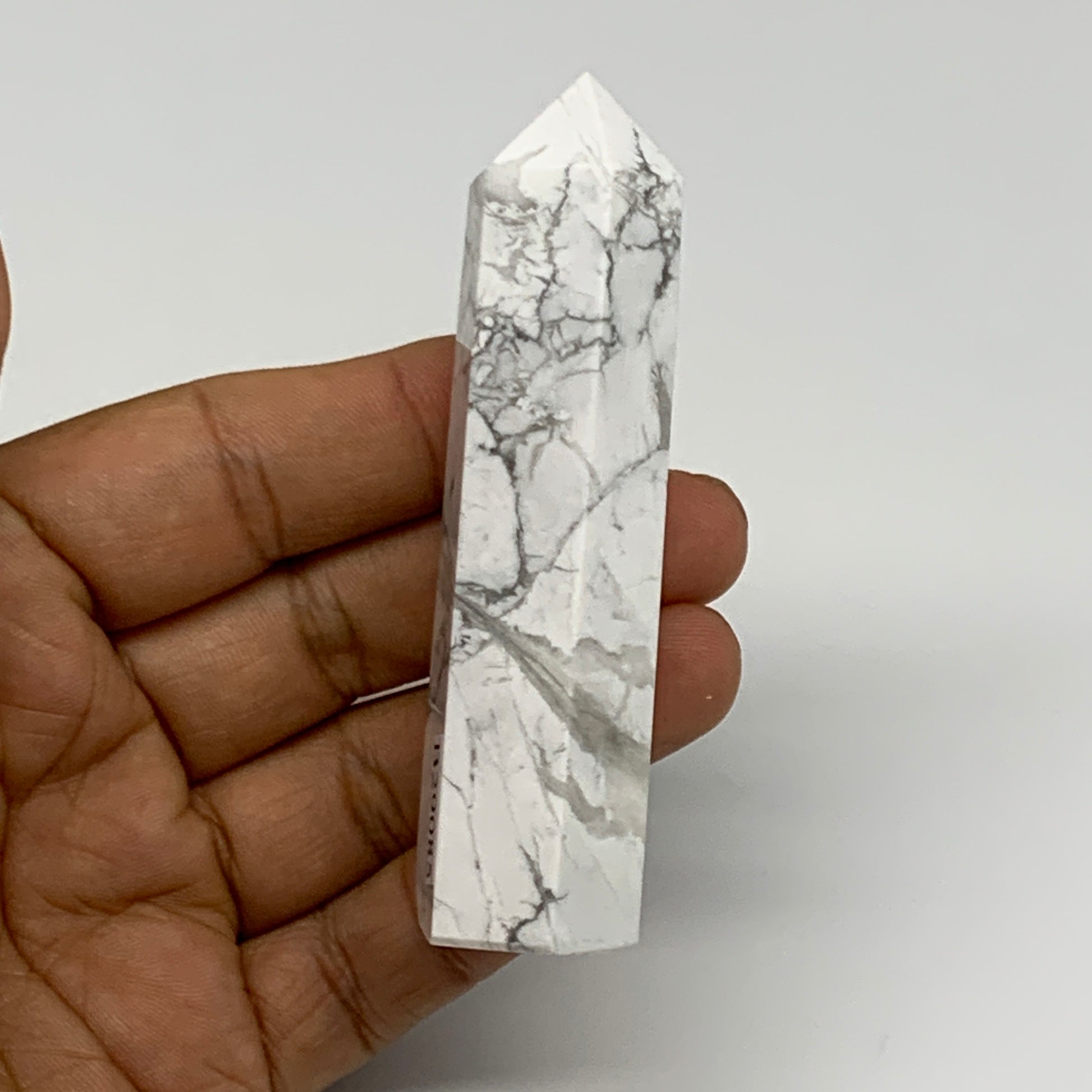 82.1g, 3.3"x0.9"x0.8", Natural Howlite Point Tower Obelisk Crystal, B29085