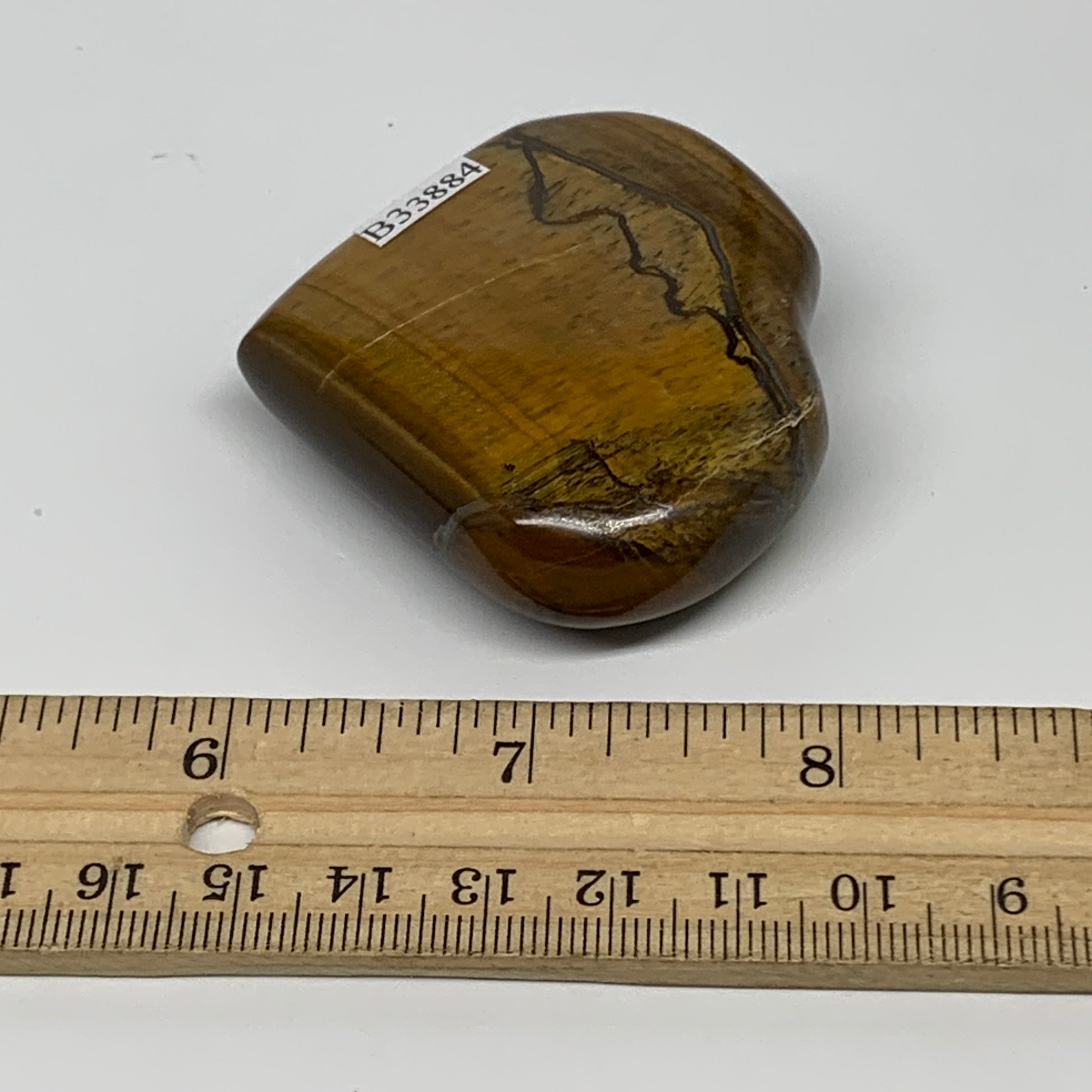 82.4g, 2.1"x2.2"x0.7", Tiger's Eye Heart Polished Healing Crystal @India, B33884