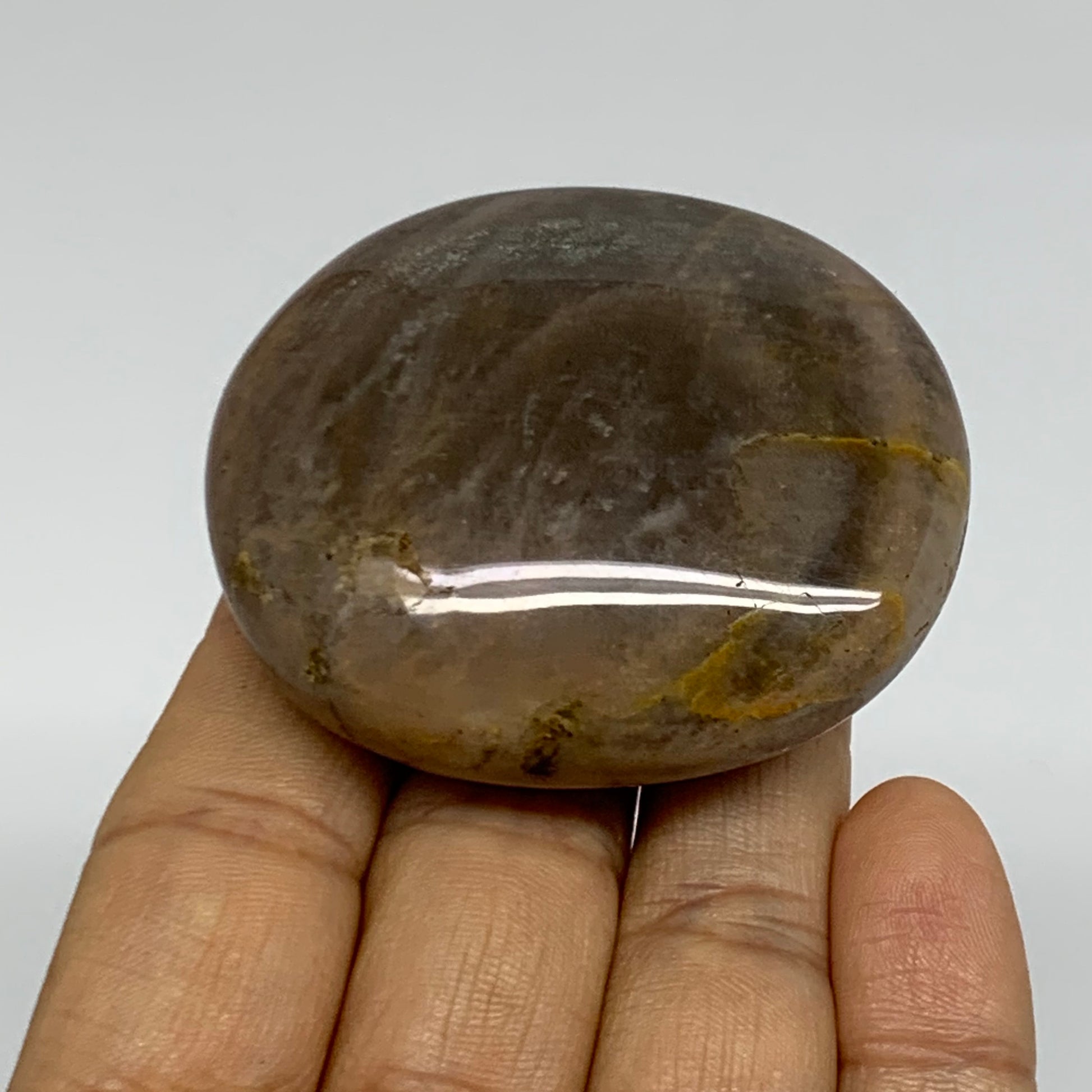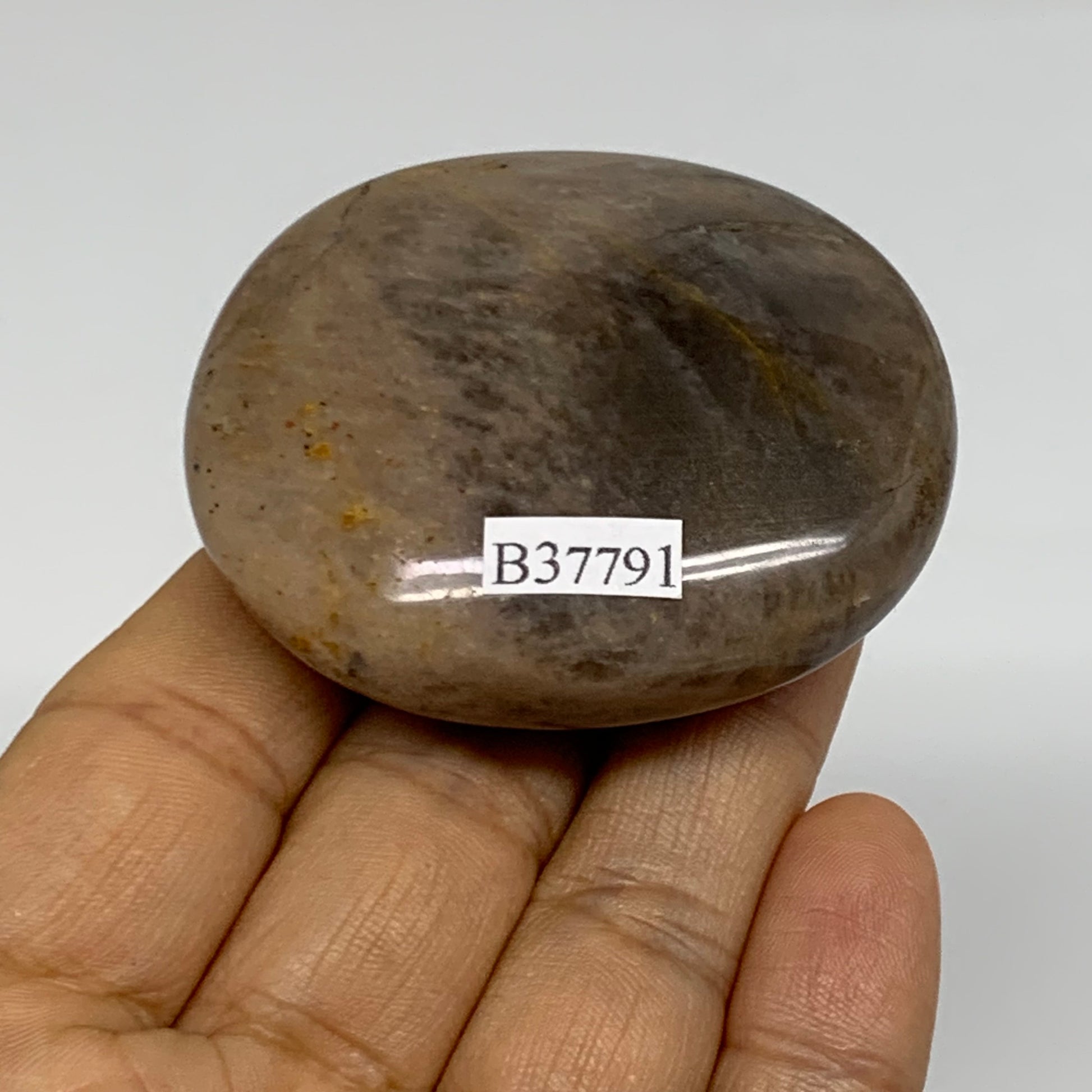 82.6g, 2.2"x1.9"x0.9", Black Moonstone Crystal Palm-Stone Polished, B37791