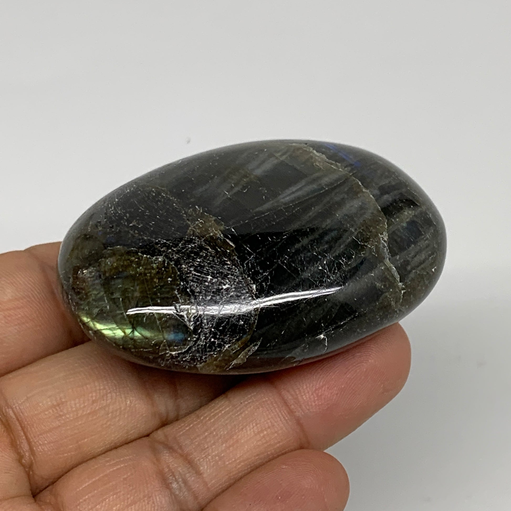 99.9g, 2.4"x1.7"x0.9", Natural Labradorite Palm-stone Tumbled Reiki, B35385