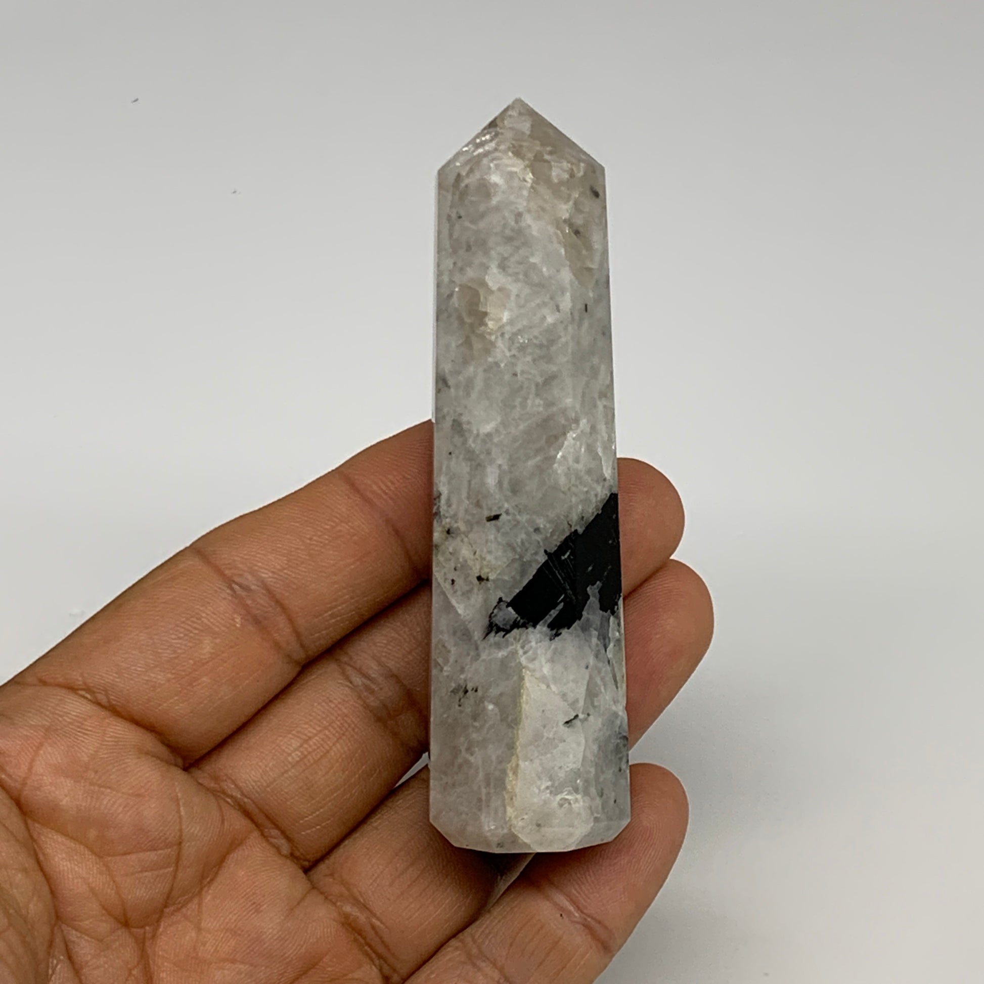 82.9g, 3.4"x1", Rainbow Moonstone Tower Obelisk Point Crystal @India, B29216
