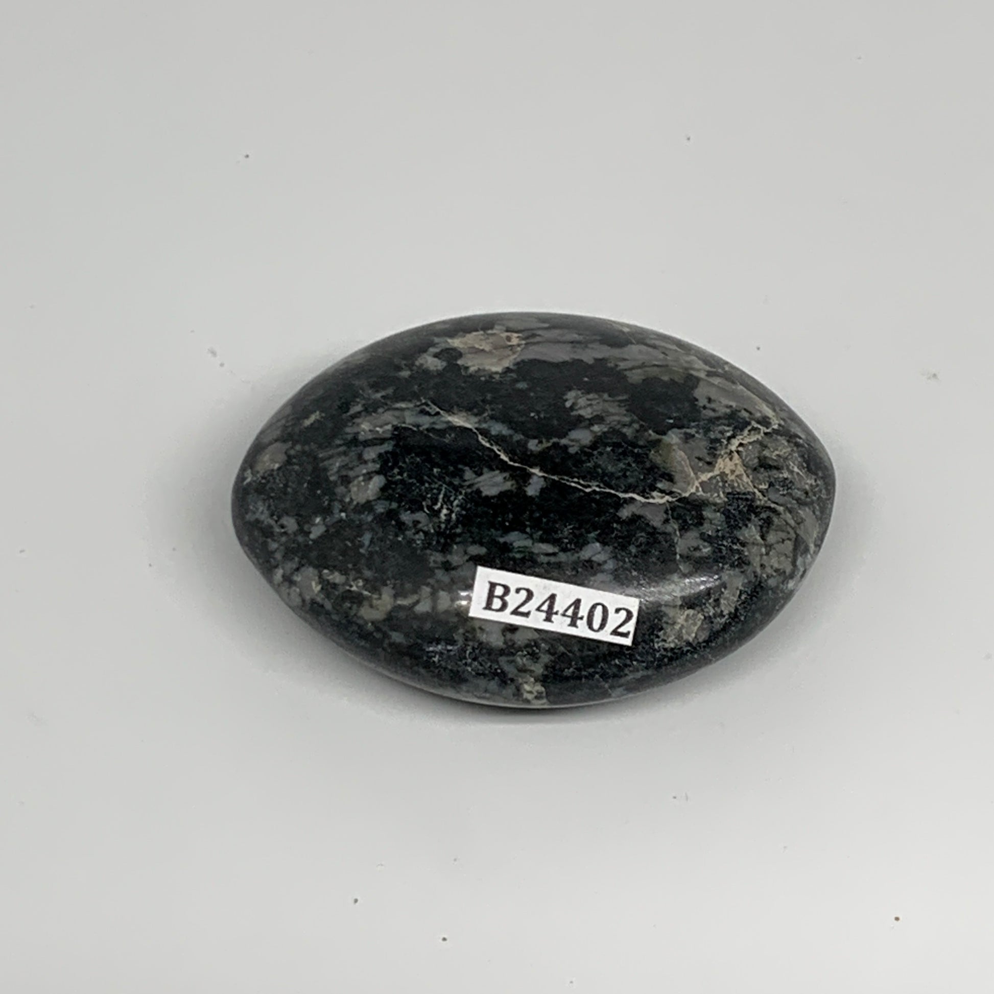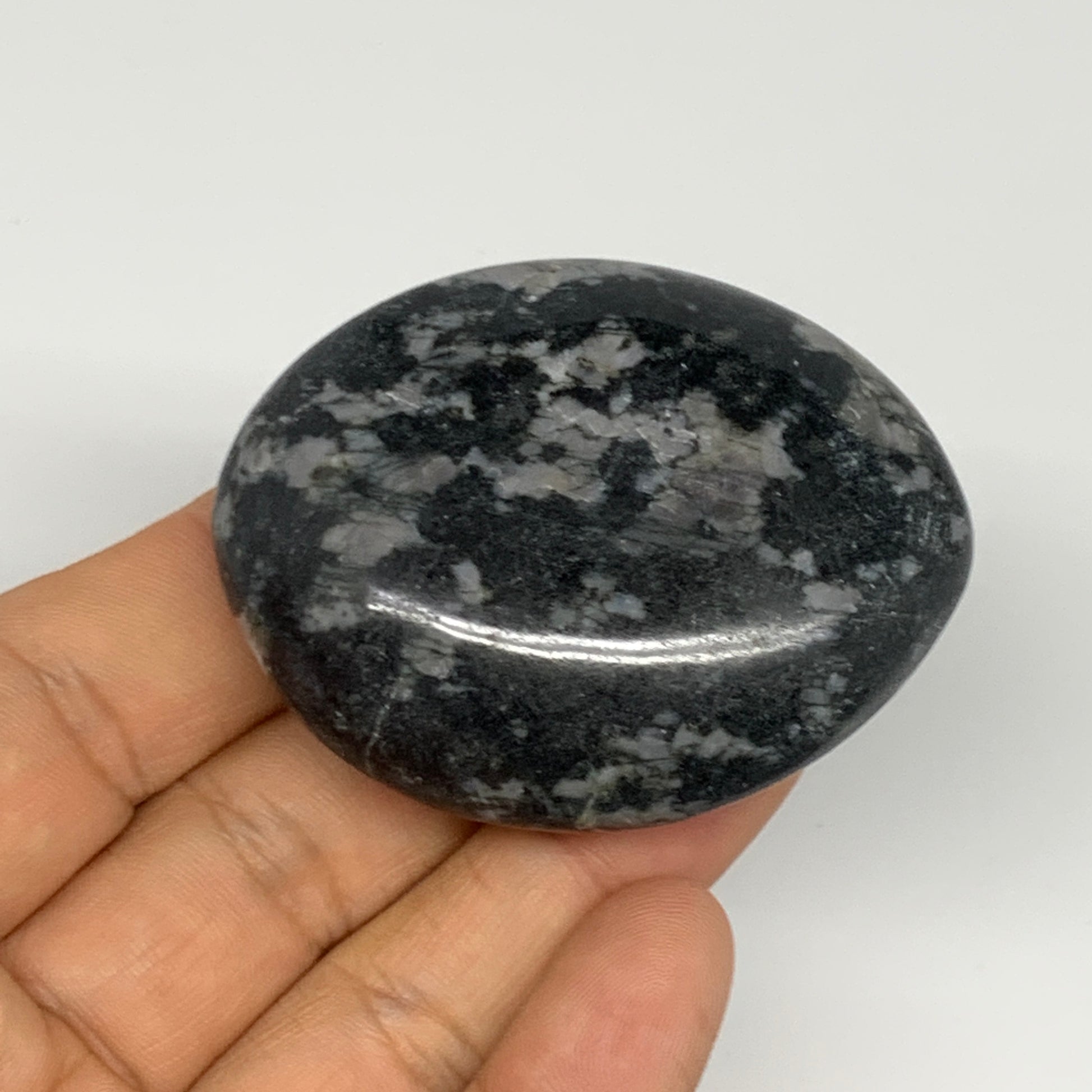83.9g, 2.3"x1.8"x0.8", Indigo Gabro (Merlinite) Palm-Stone @Madagascar, B24402