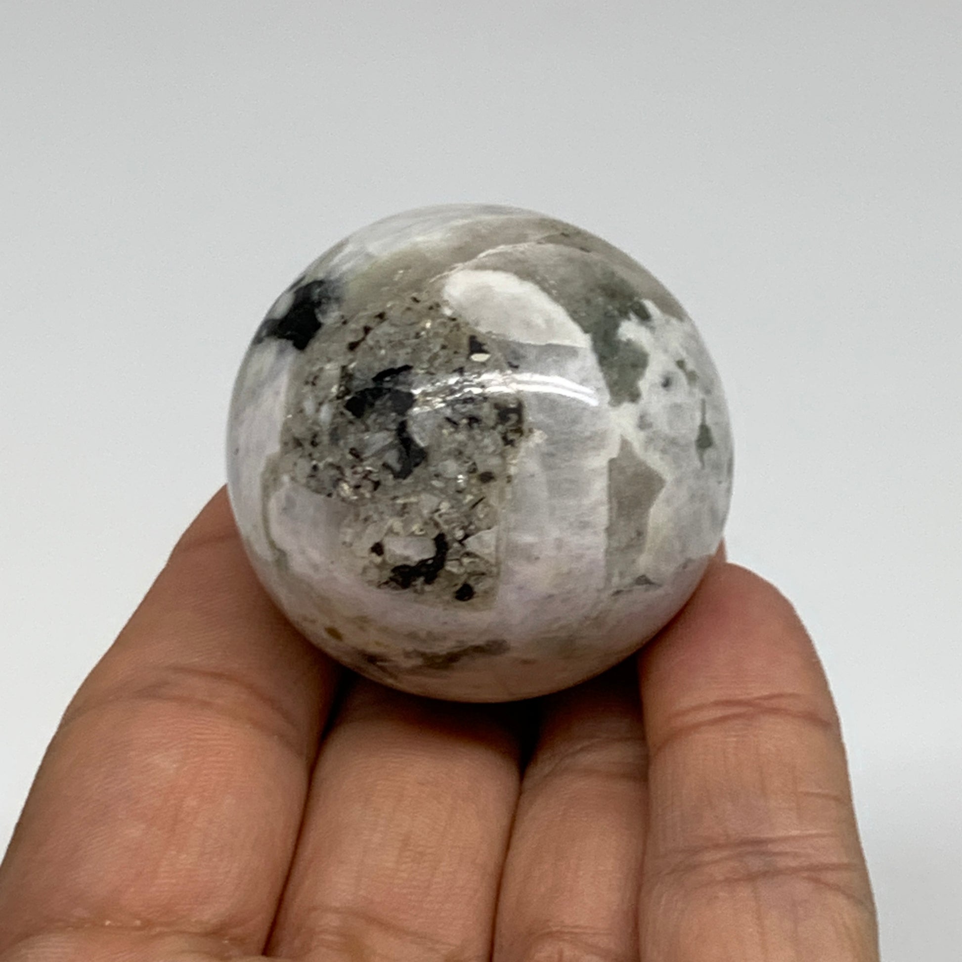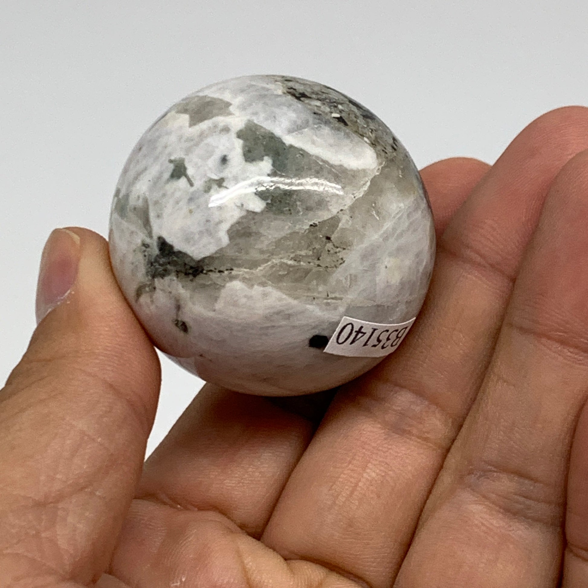 83g, 1.5"(39mm), Natural Rainbow Moonstone Sphere Ball Gemstone, B35140