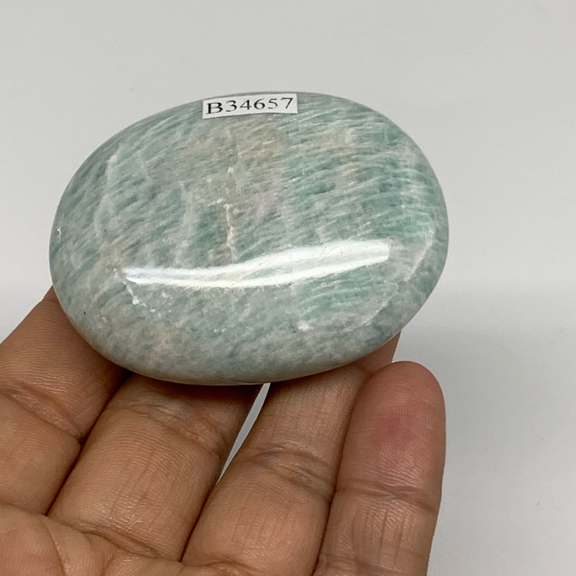 84.5g, 2.3"x"1.7"x0.9", Natural Amazonite Palm-Stone Tumbled Polished, B34657