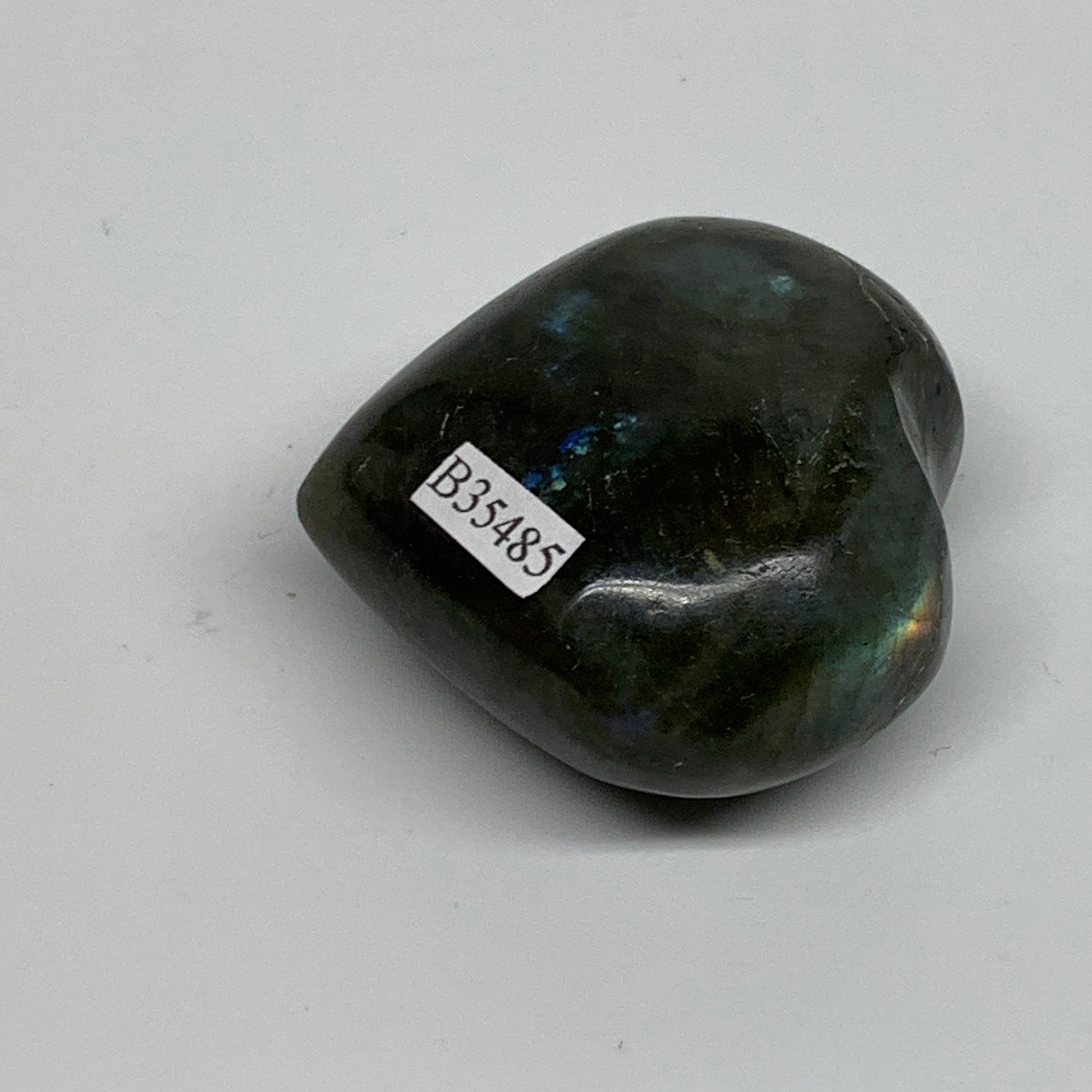 84g, 1.9"x2"x1", Natural Labradorite Heart Polished Crystal, B35485