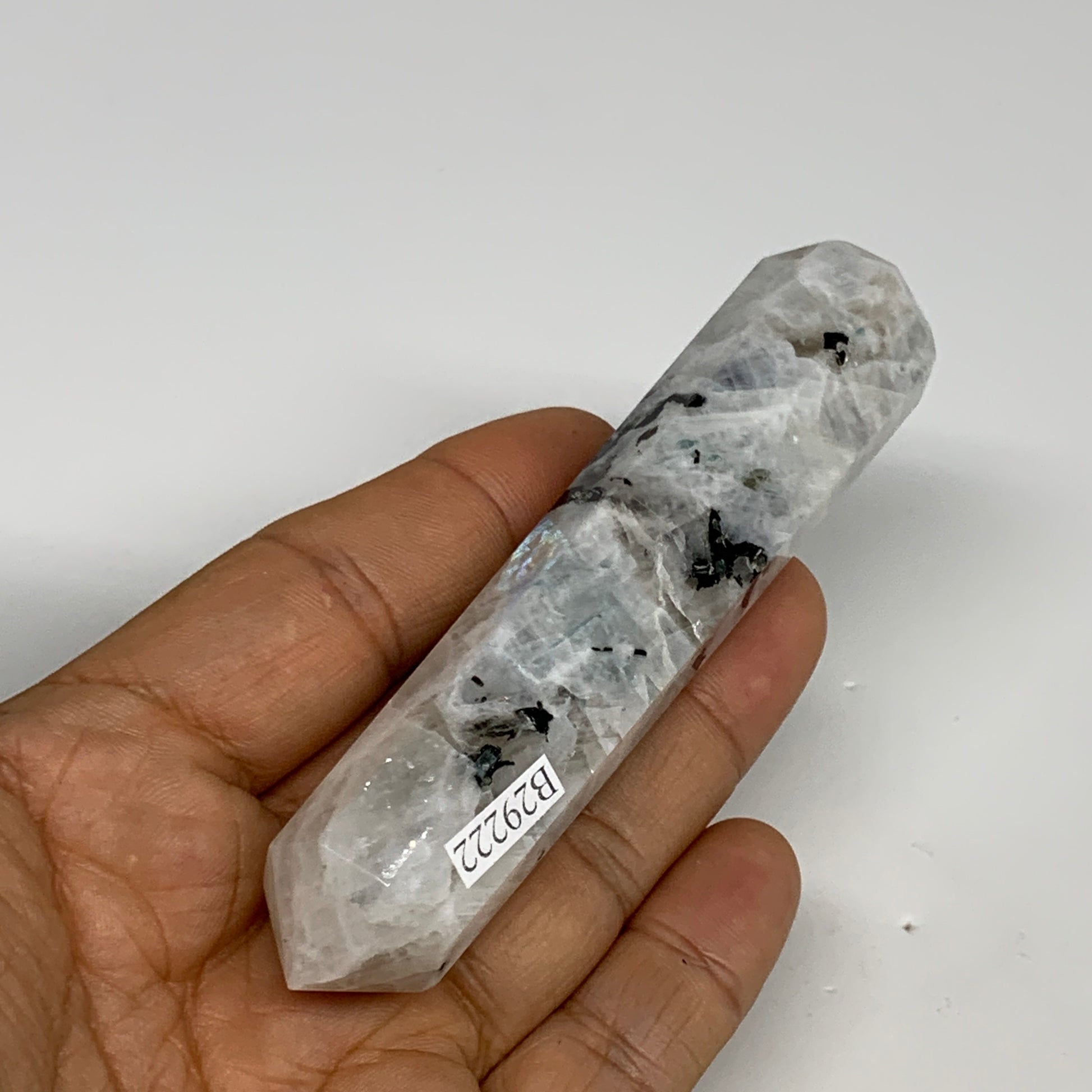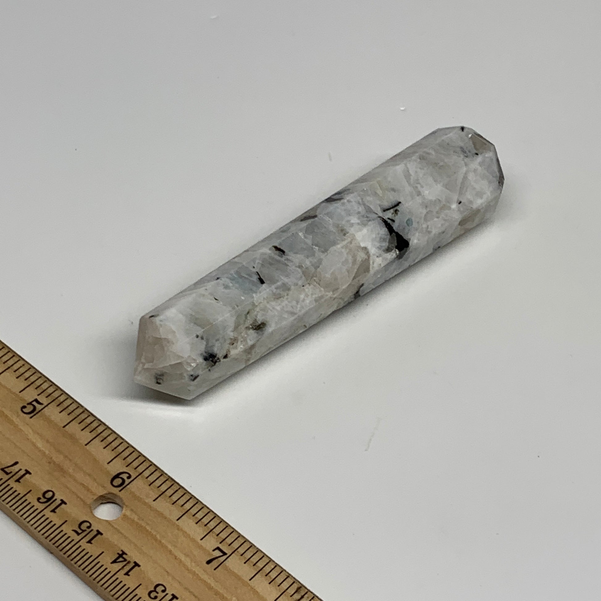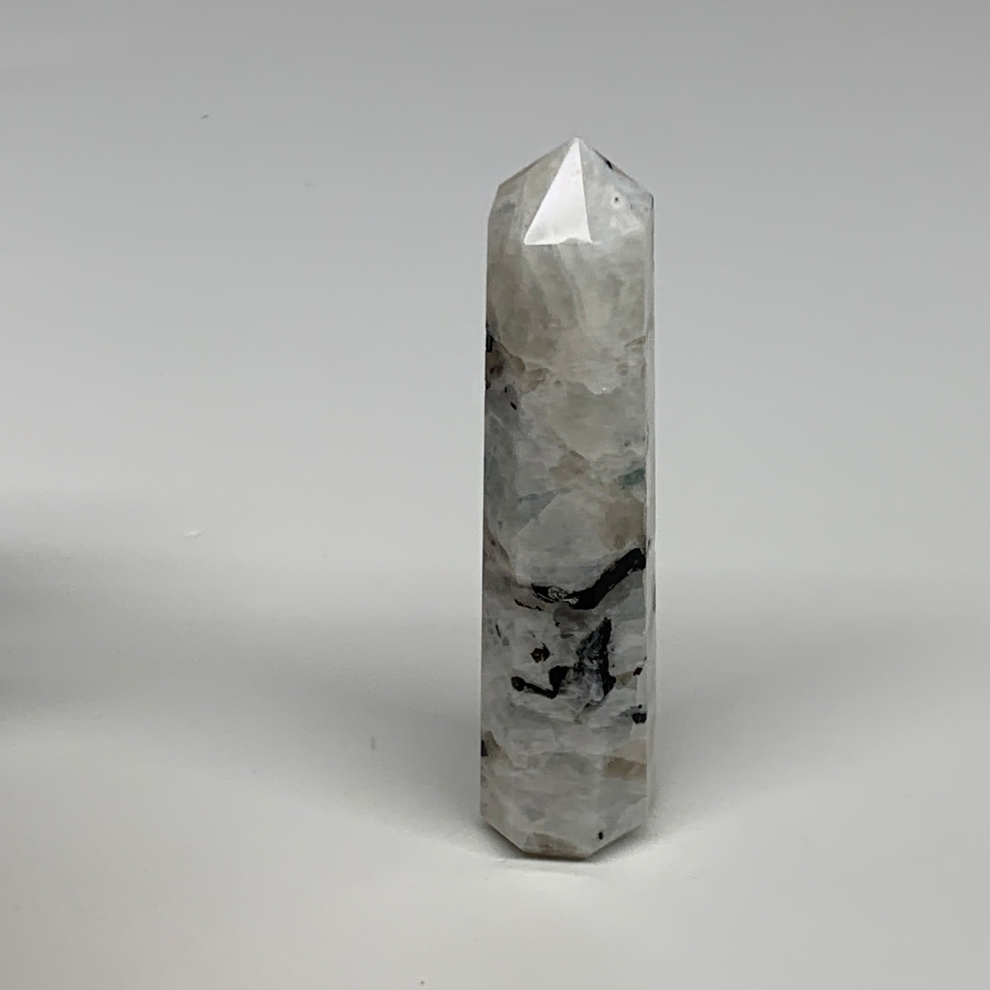 85.3g, 4"x0.8", Rainbow Moonstone Tower Obelisk Point Crystal @India, B29222