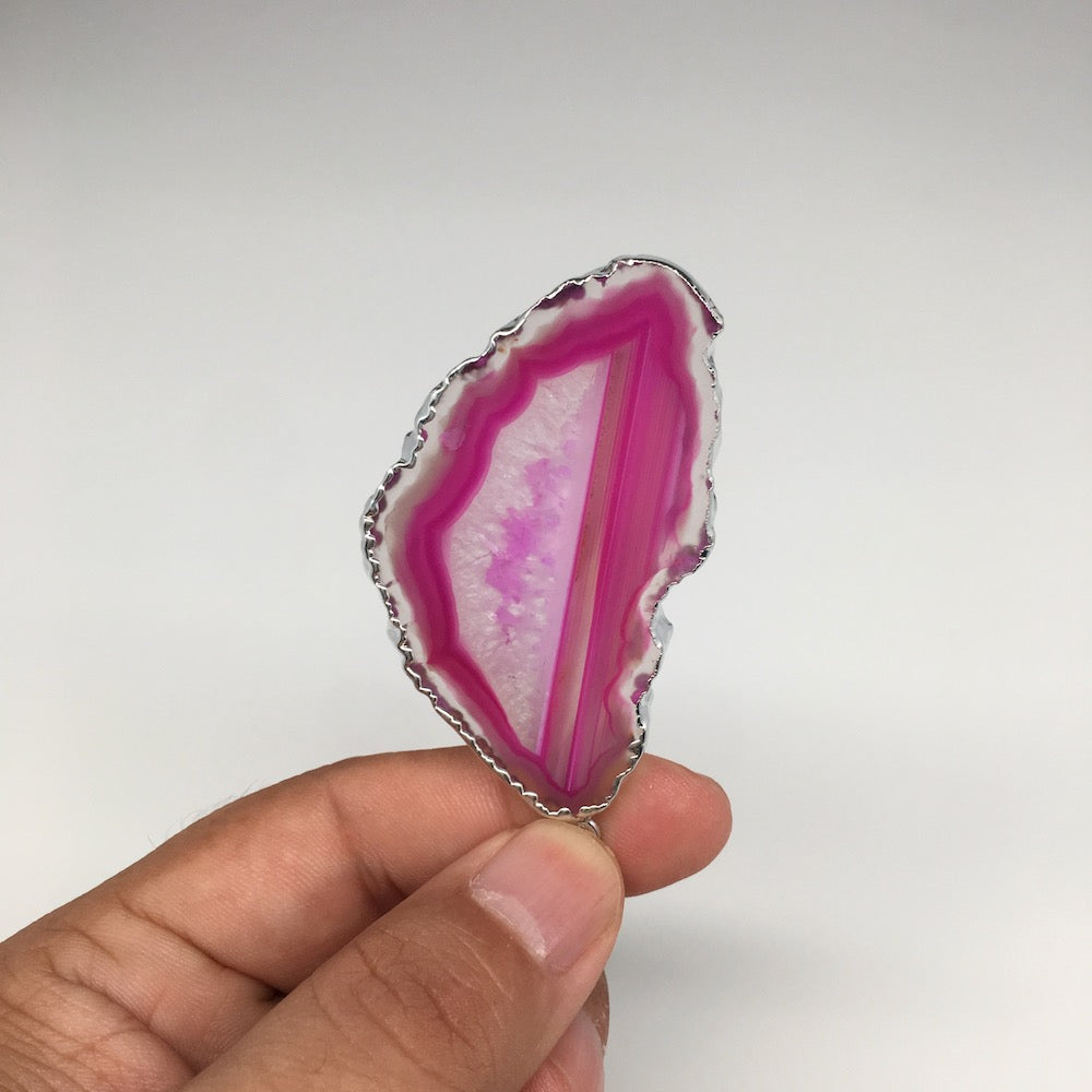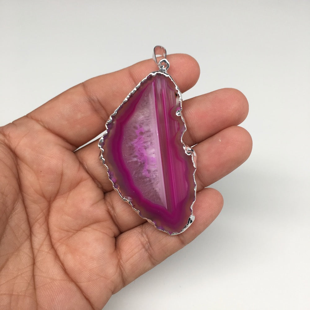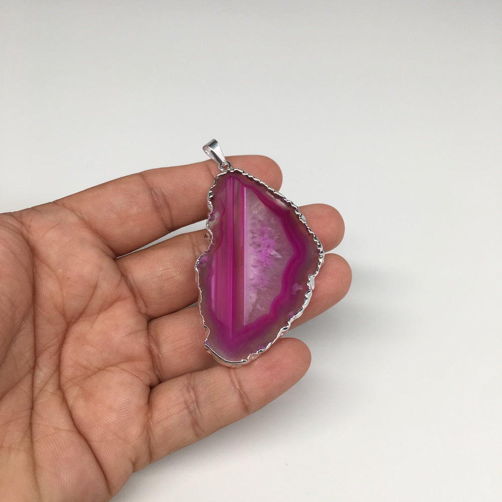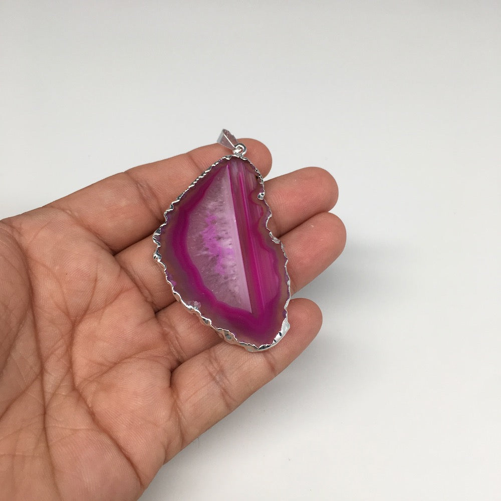 85.5cts, 2.7"x1.4" Blue Agate Druzy Geode Pendant Silver Plated @Brazil, Bp1305