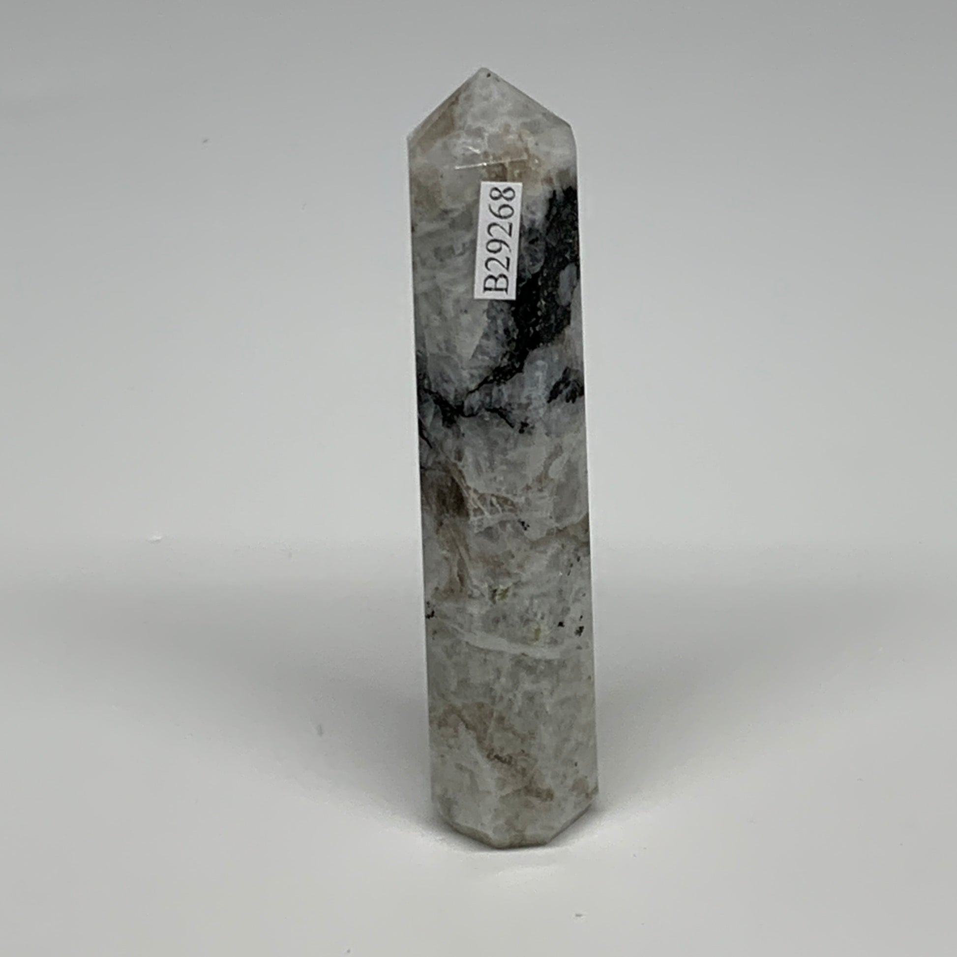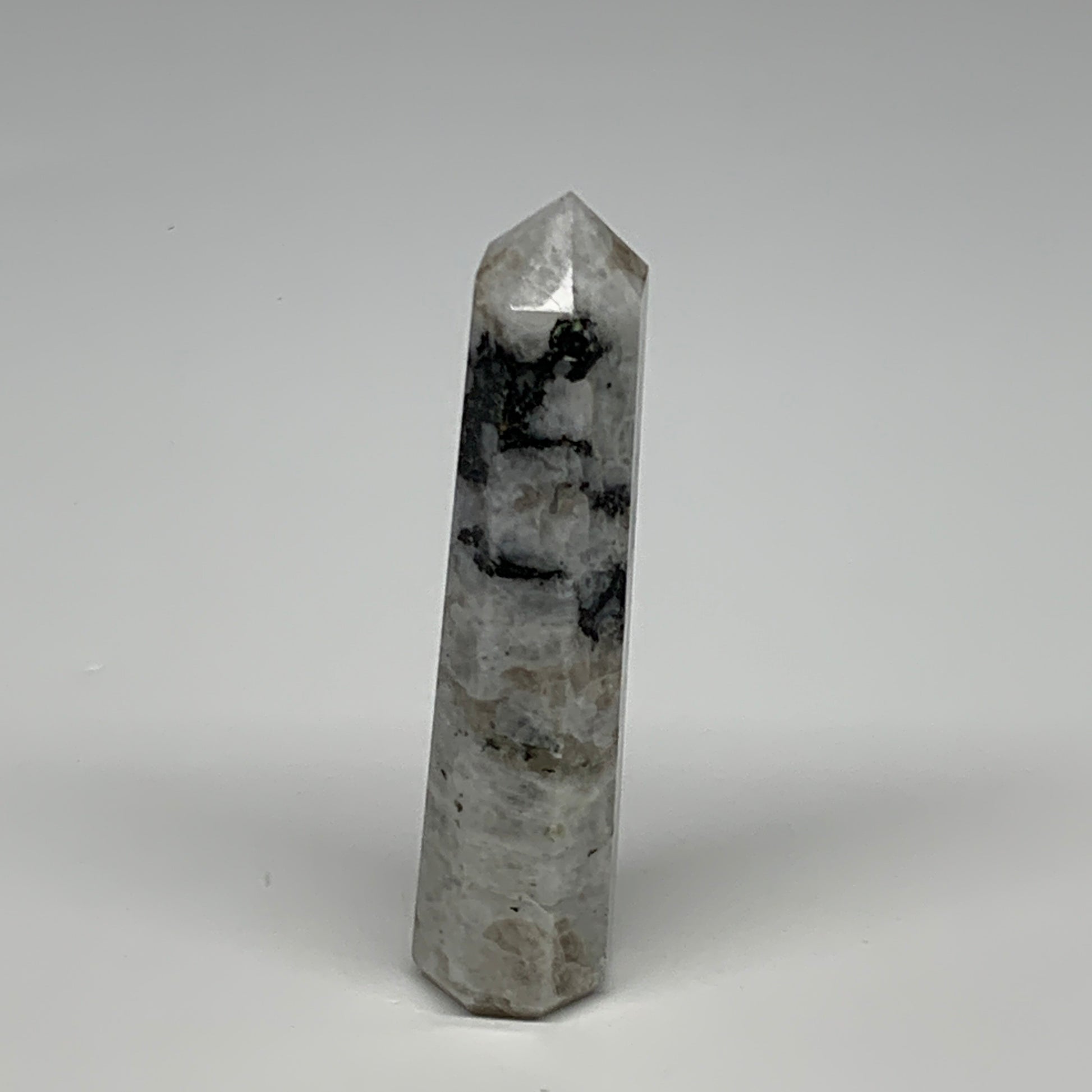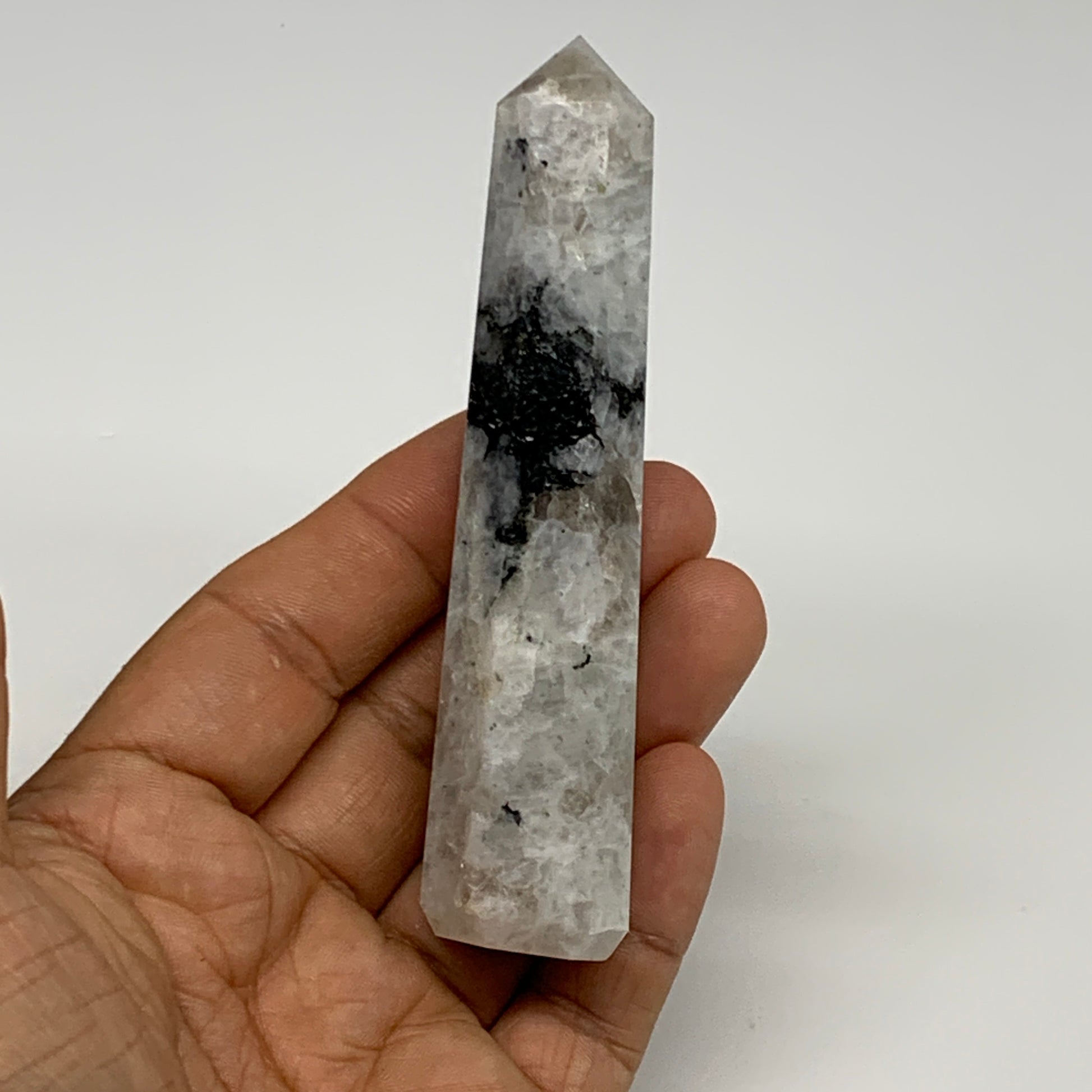 85.7g, 4"x0.8", Rainbow Moonstone Tower Obelisk Point Crystal @India, B29268