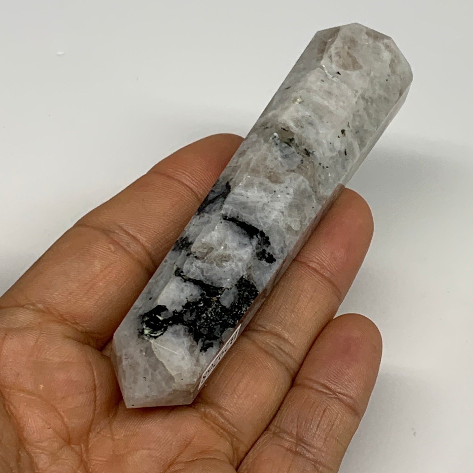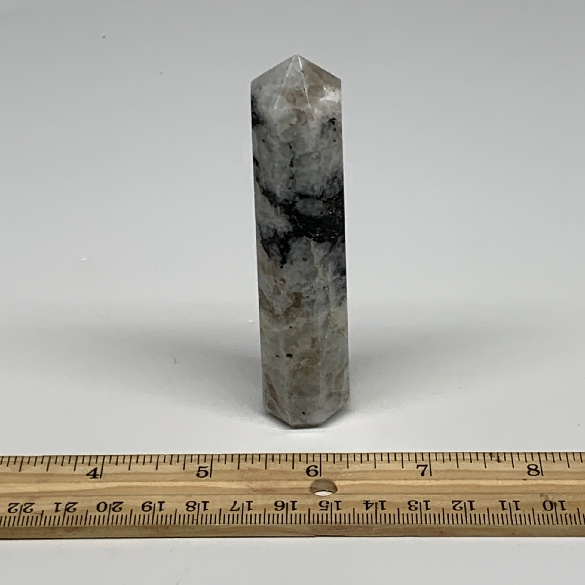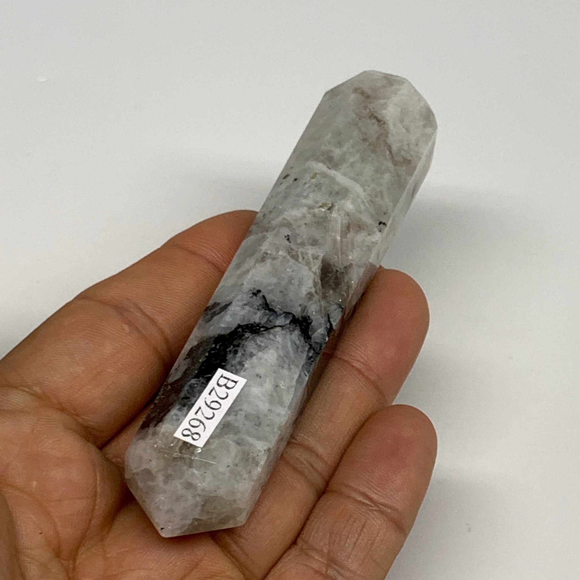85.7g, 4"x0.8", Rainbow Moonstone Tower Obelisk Point Crystal @India, B29268