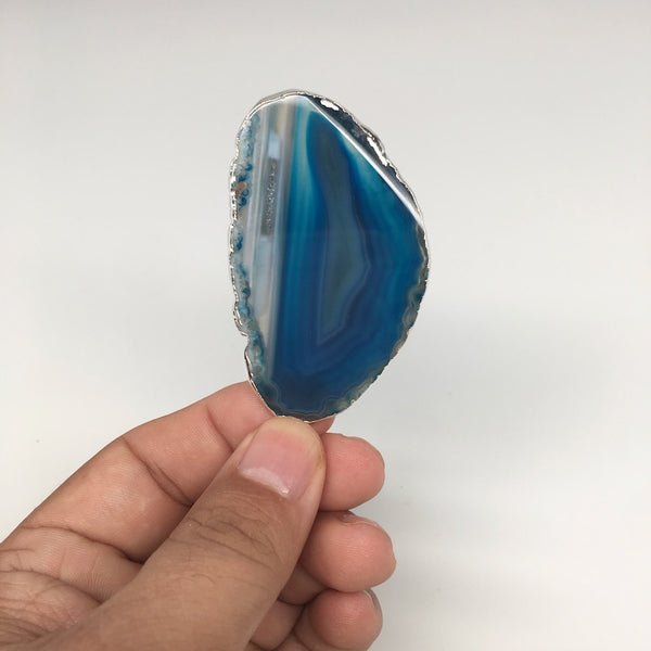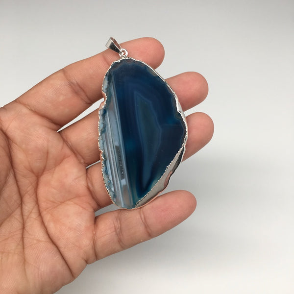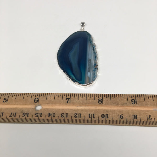 85cts, 2.9"x1.5" Blue Agate Druzy Geode Pendant Silver Plated @Brazil, Bp1284