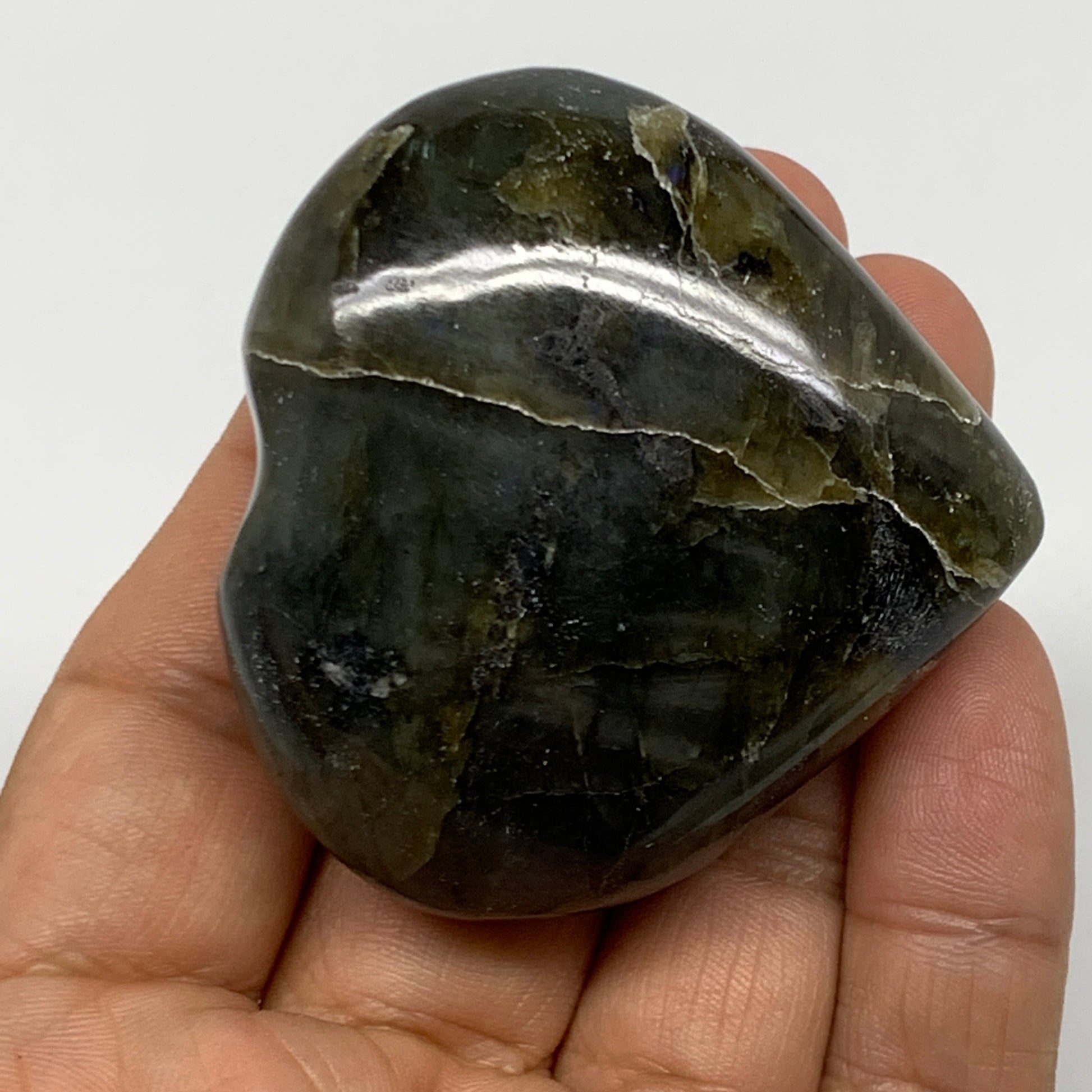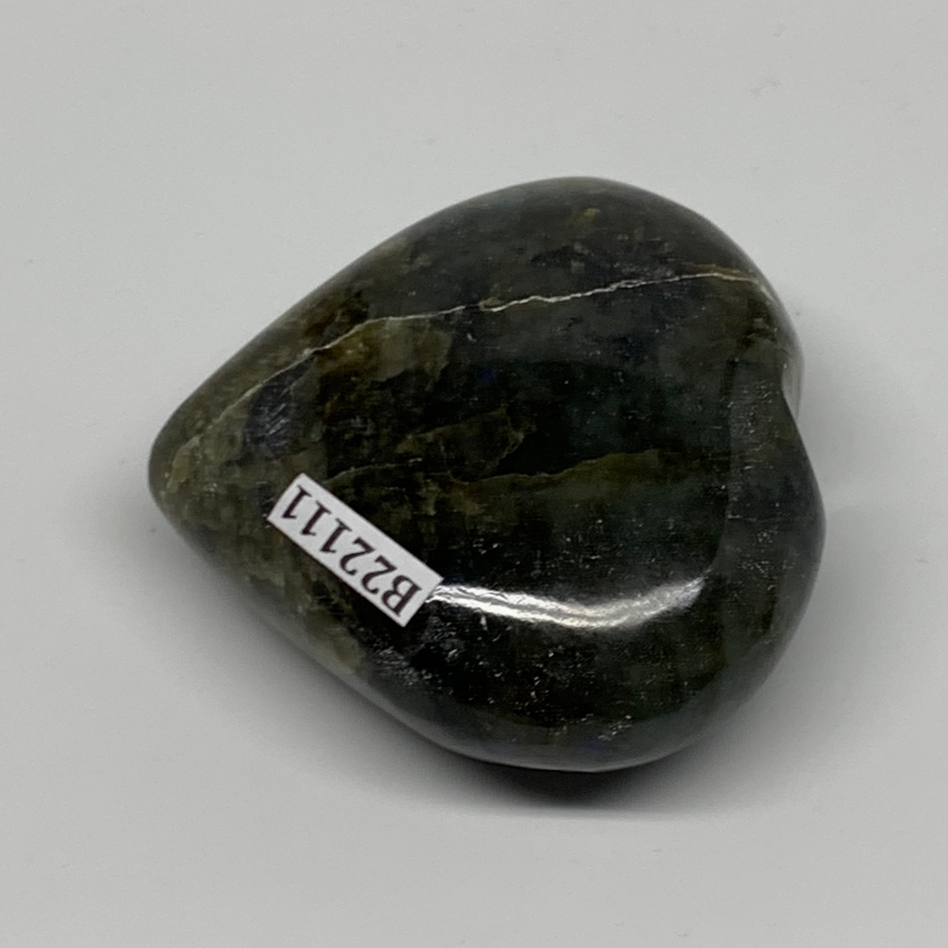 86.2g,2"x2.1"x0.9" Natural Labradorite Heart Small Polished Healing Crystal, B22111
