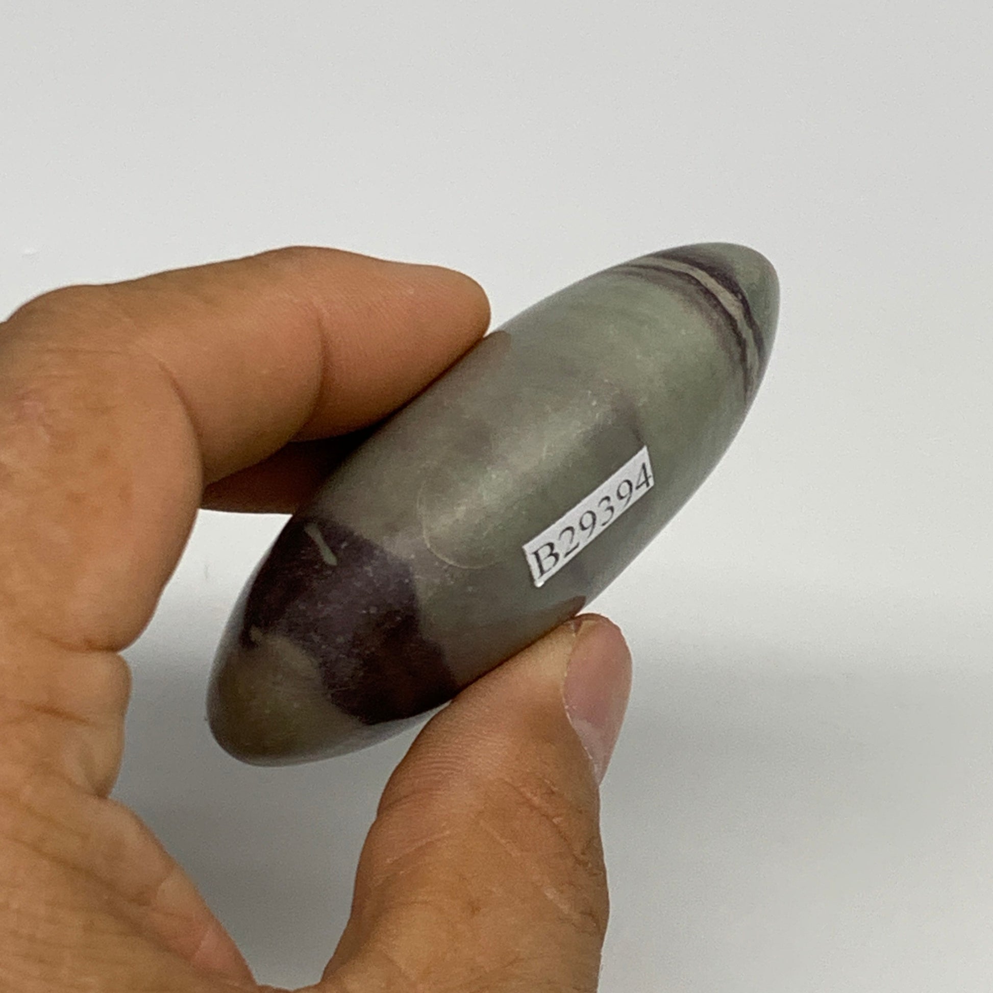 86.3g, 2.5"x1.6"x0.9", Narmada Shiva Lingam Palm-Stone Polished, B29394