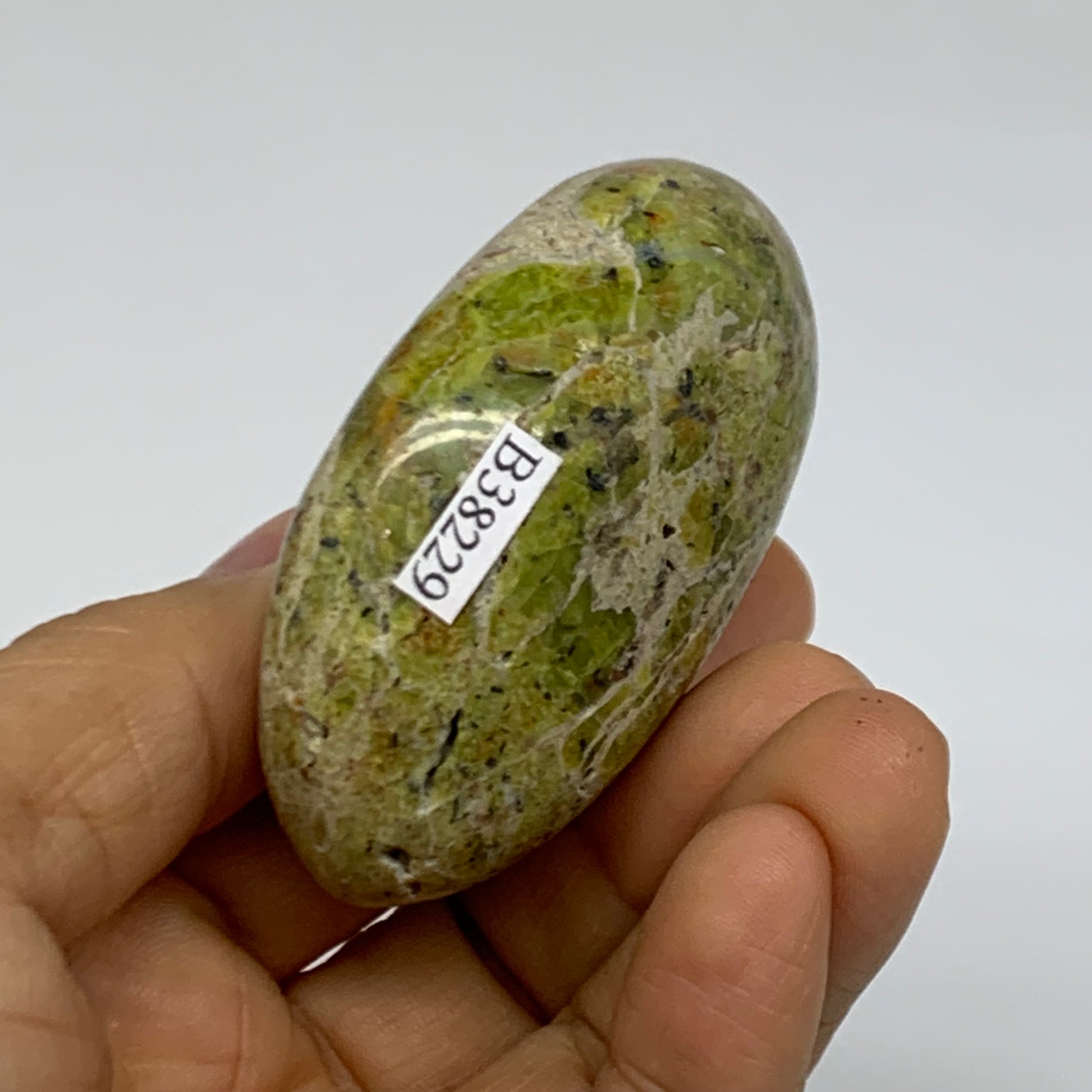 86.8g, 2.5"x1.8"x1.1", Green Opal Crystal PalmStone Polished Reiki, B38229
