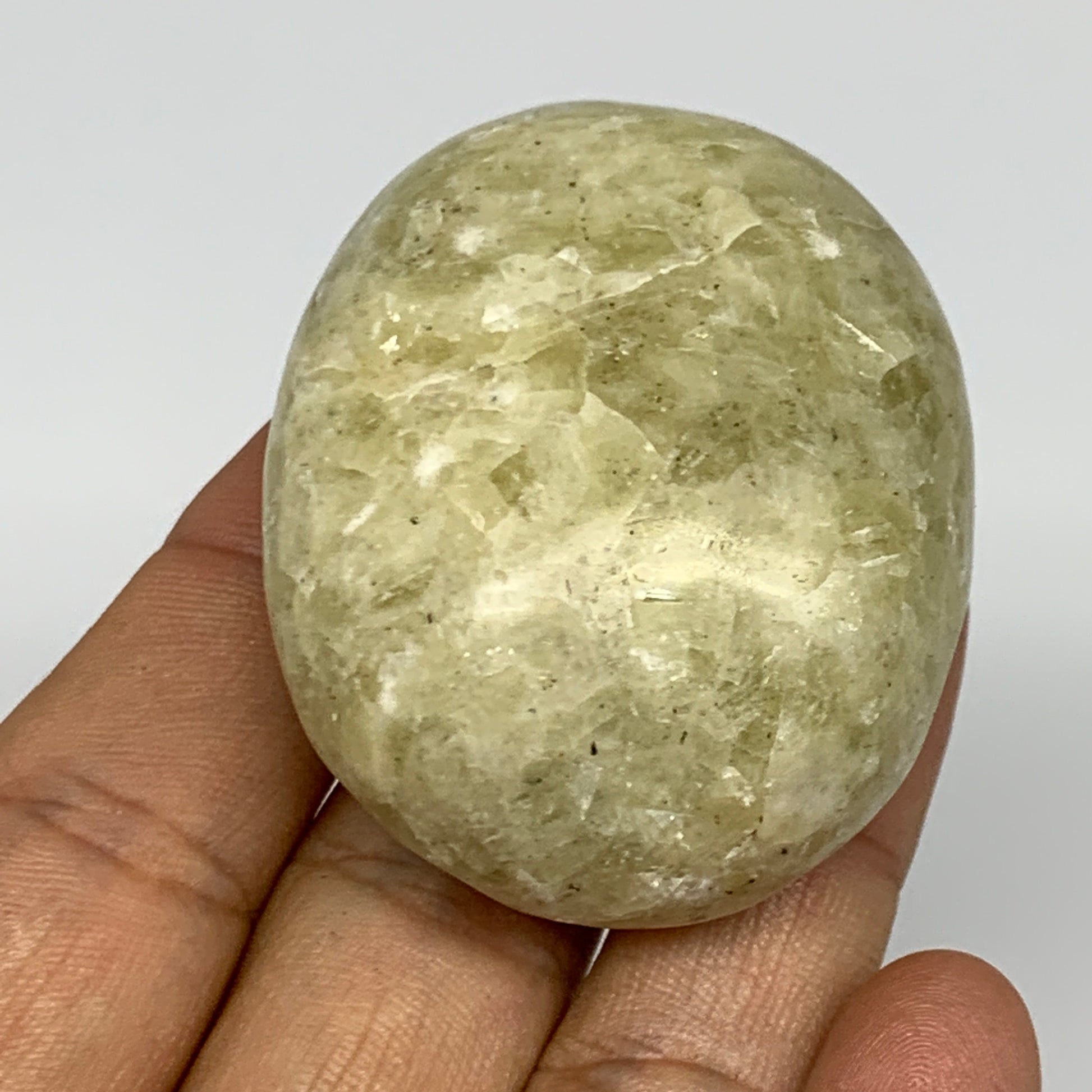 86g,2"x1.6"x1", Natural Yellow Calcite Palm-Stone Crystal Polished Reiki, B16843