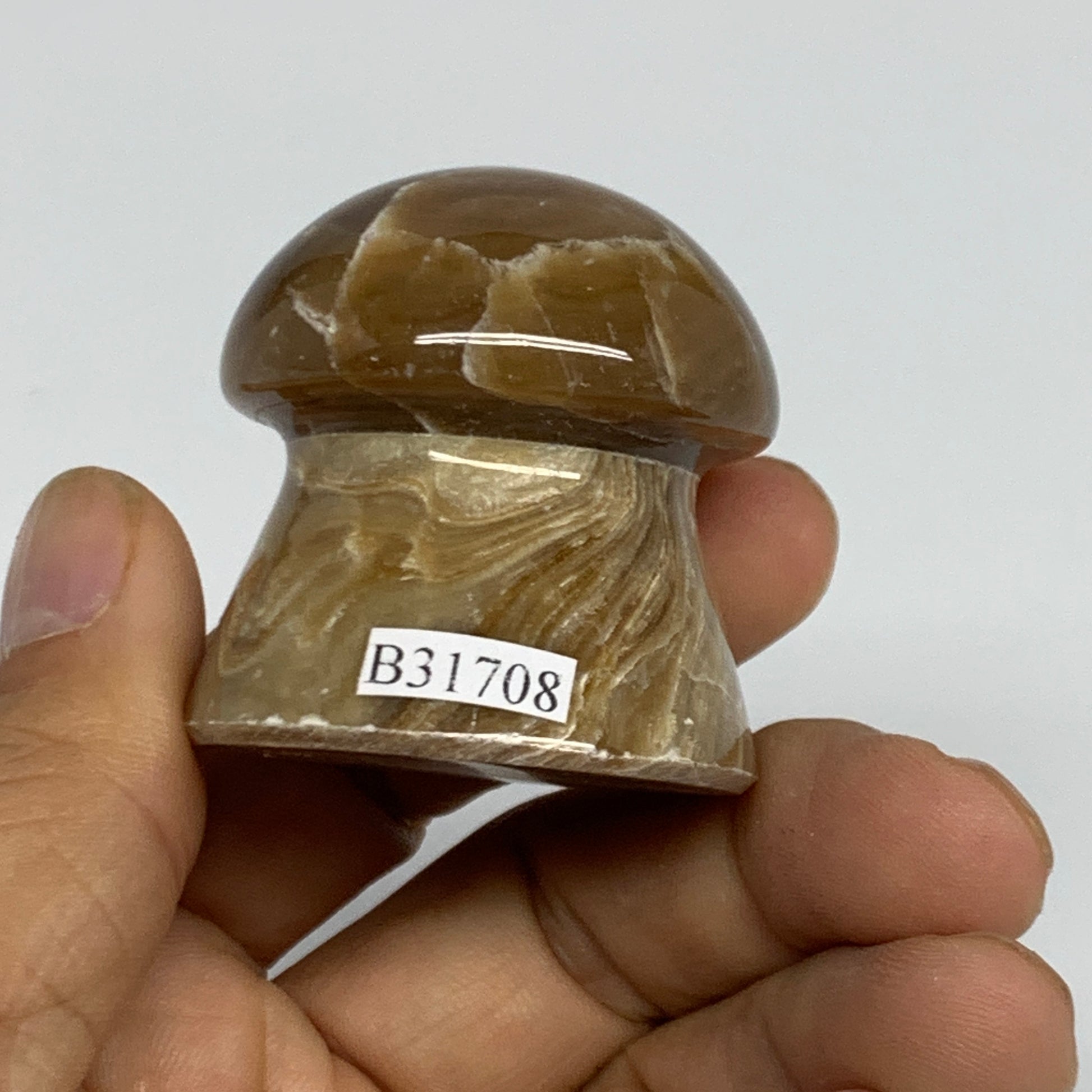 87.5g, 1.6"x1.6", Chocolate Calcite Mushroom 2 Pieces bonded @Pakistan, B31708