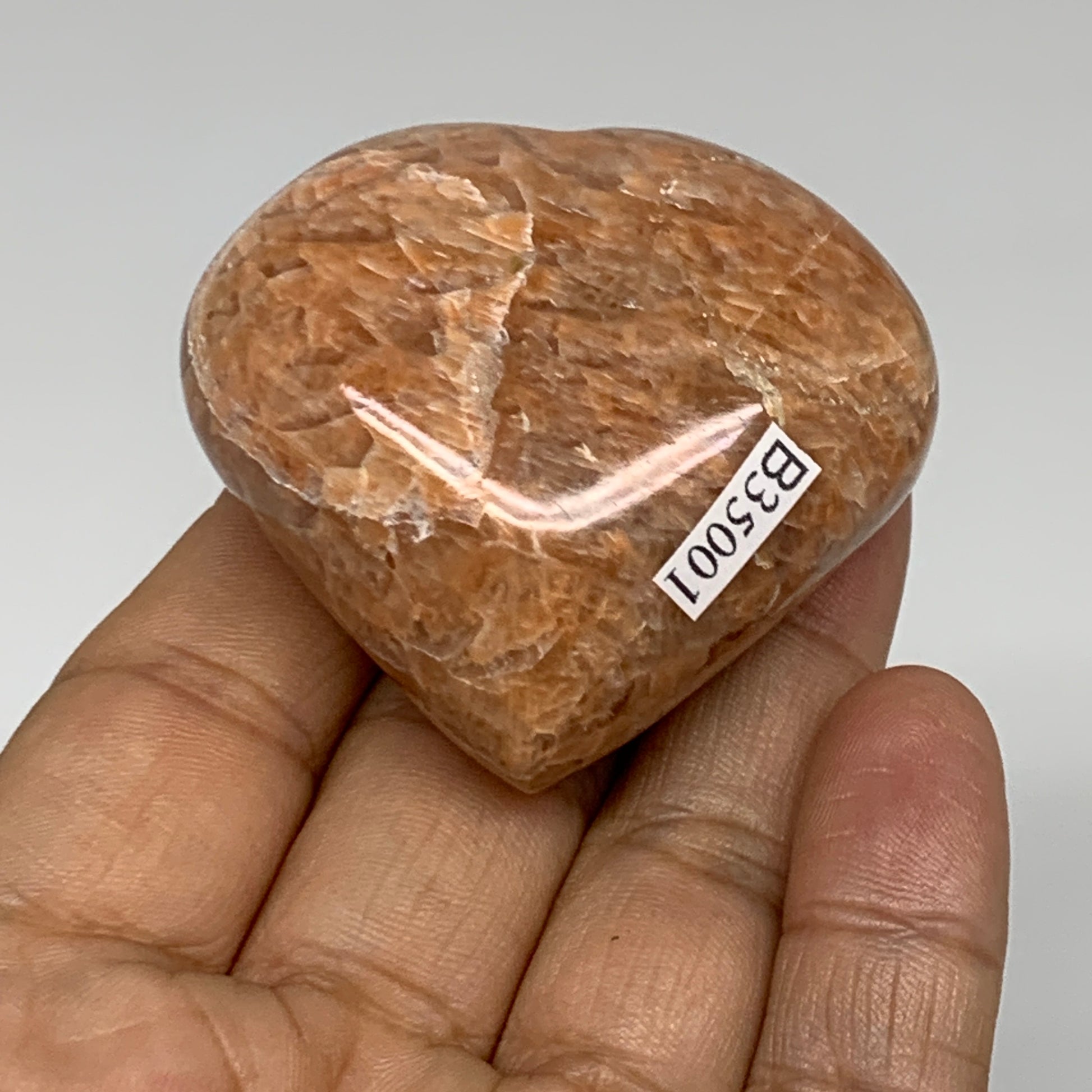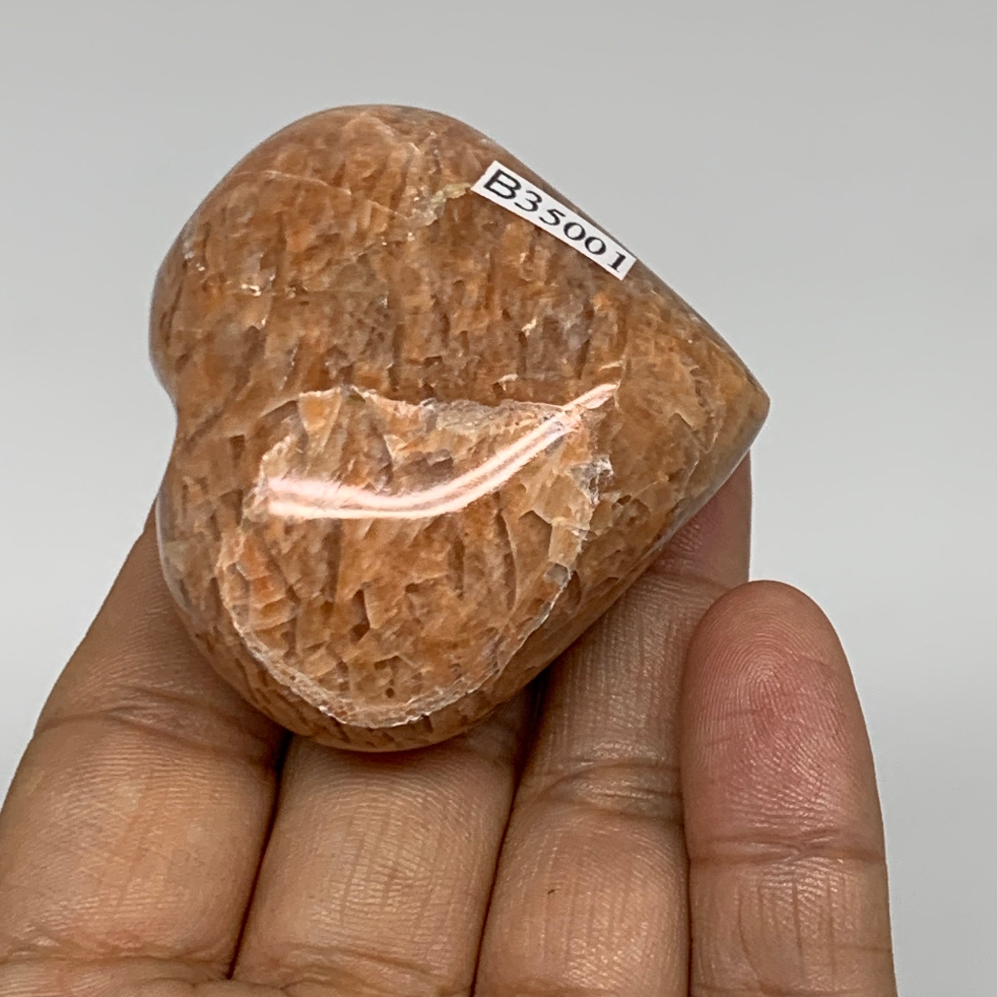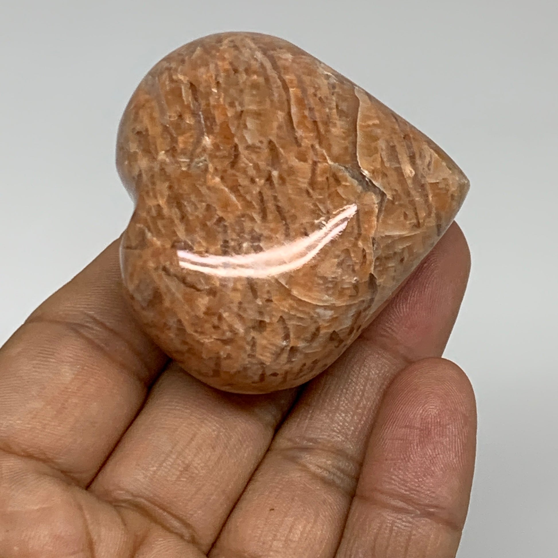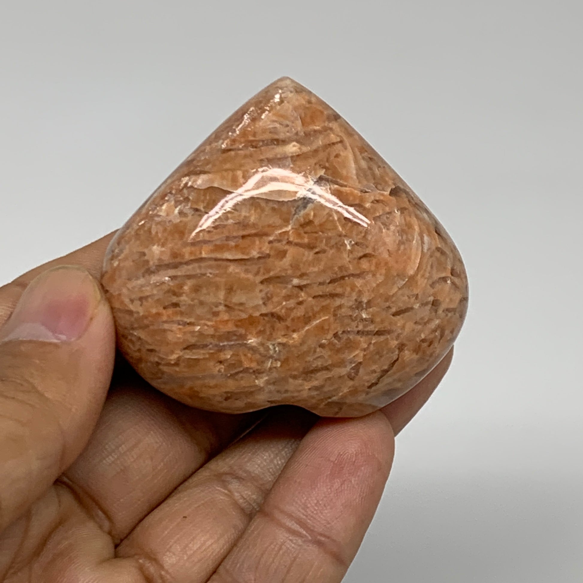 87.5g, 1.9"x2"x1.1", Peach Moonstone Heart Crystal Polished, B35001