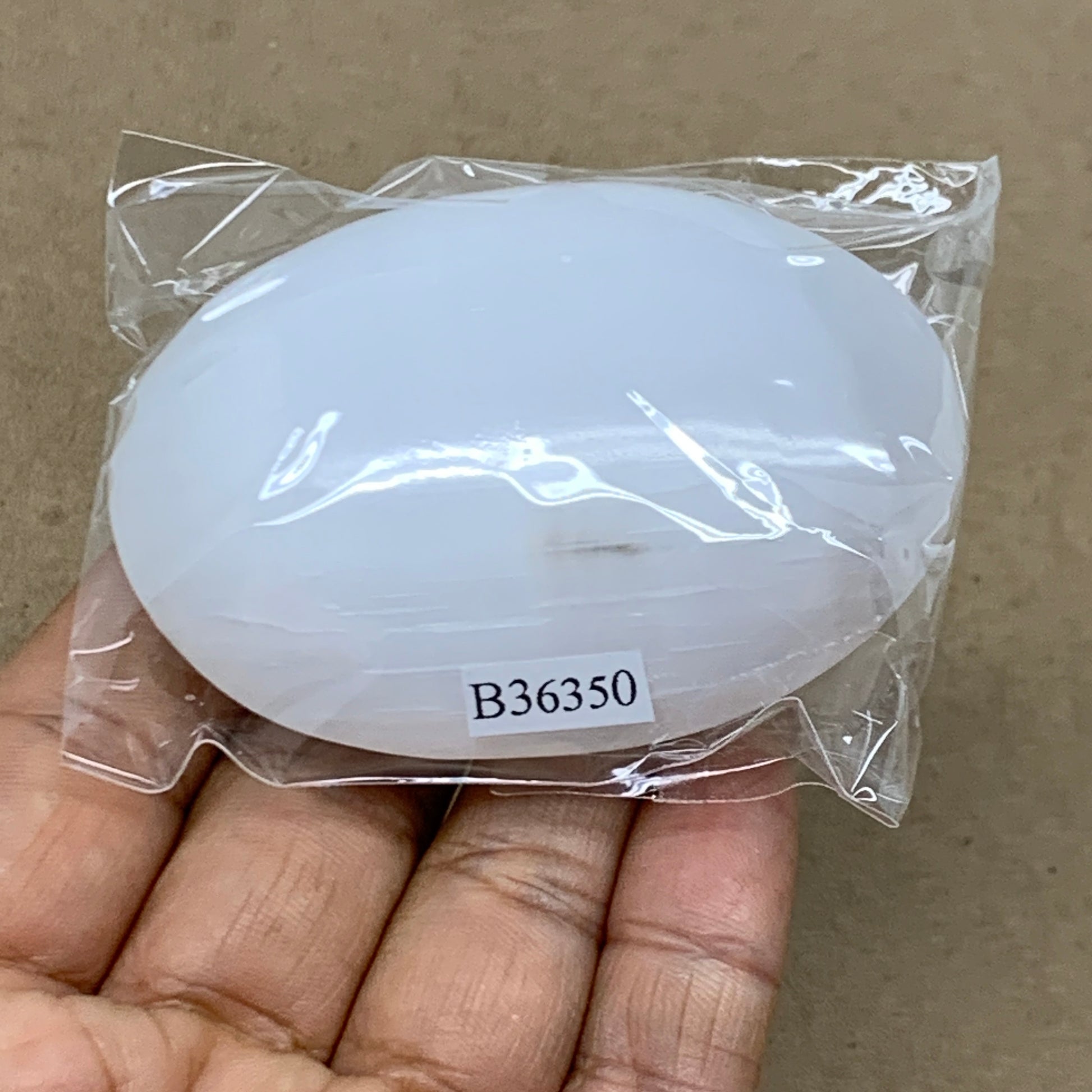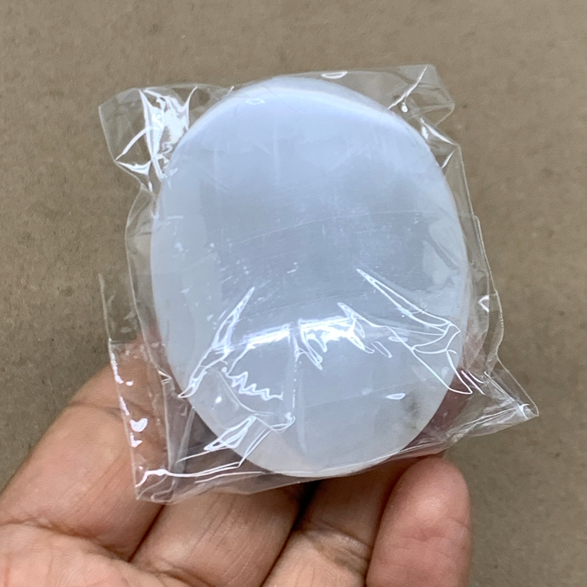 87g, 2.7"x1.9"x0.9", White Selenite Palmstone Crystal Pillow Reiki, B36350